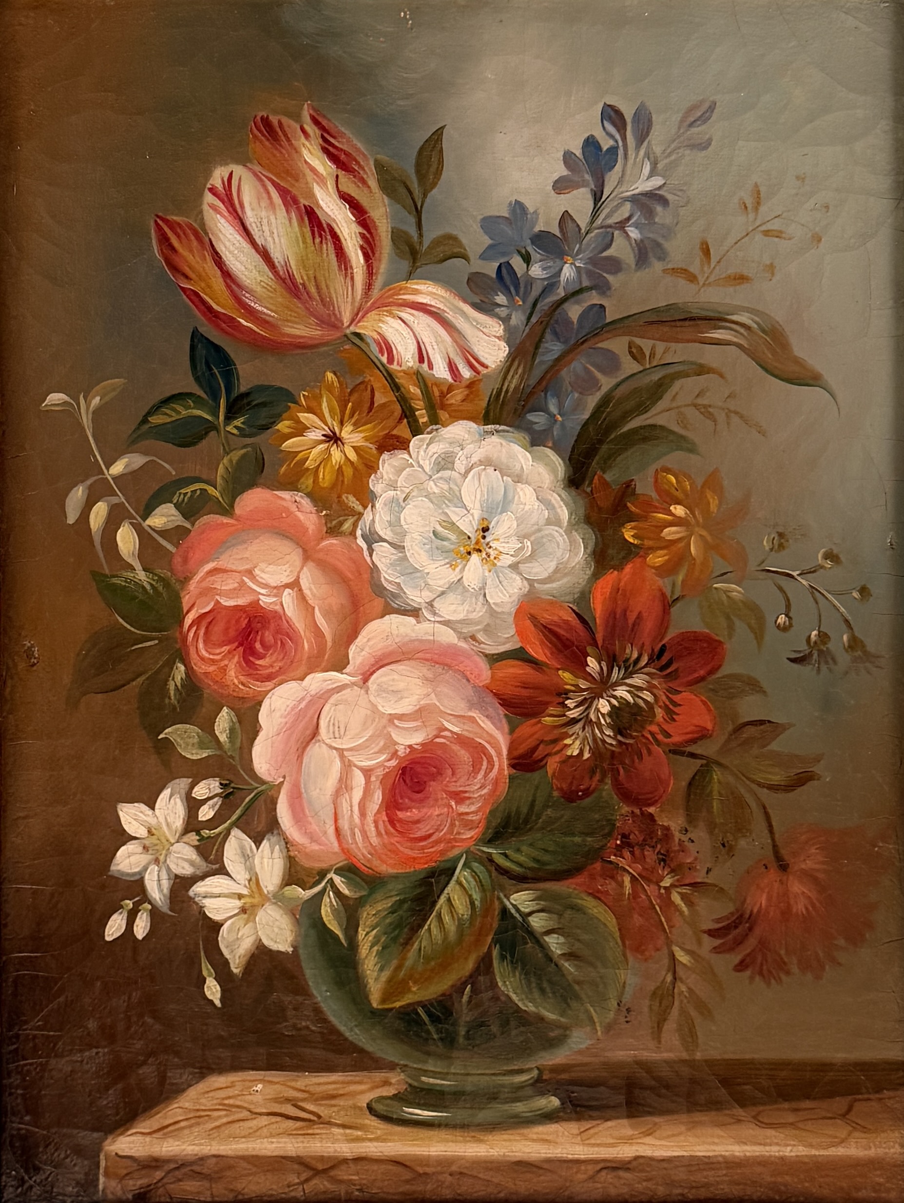 Bouquet Of Flowers, Oil On Canvas, 18th Century