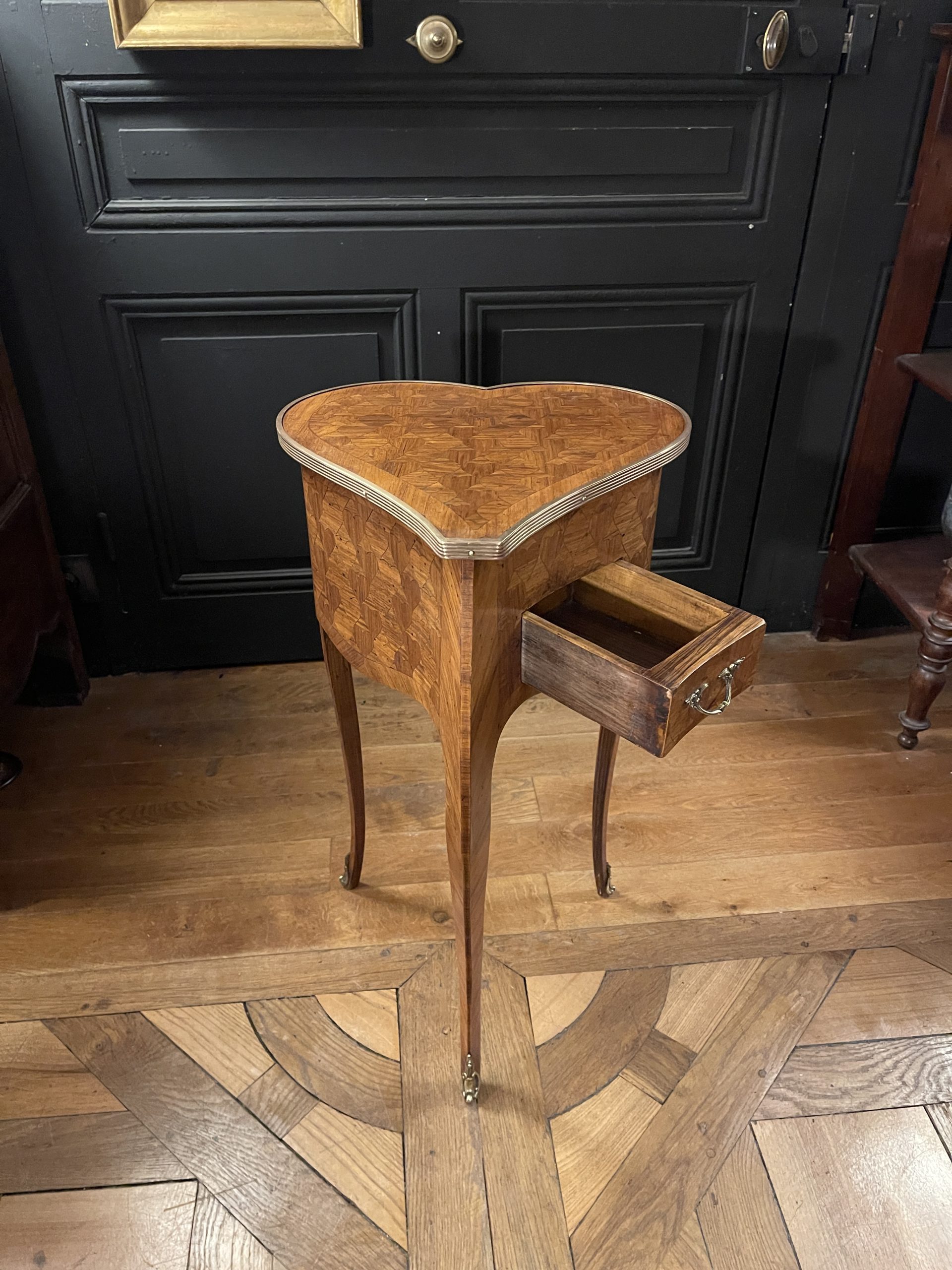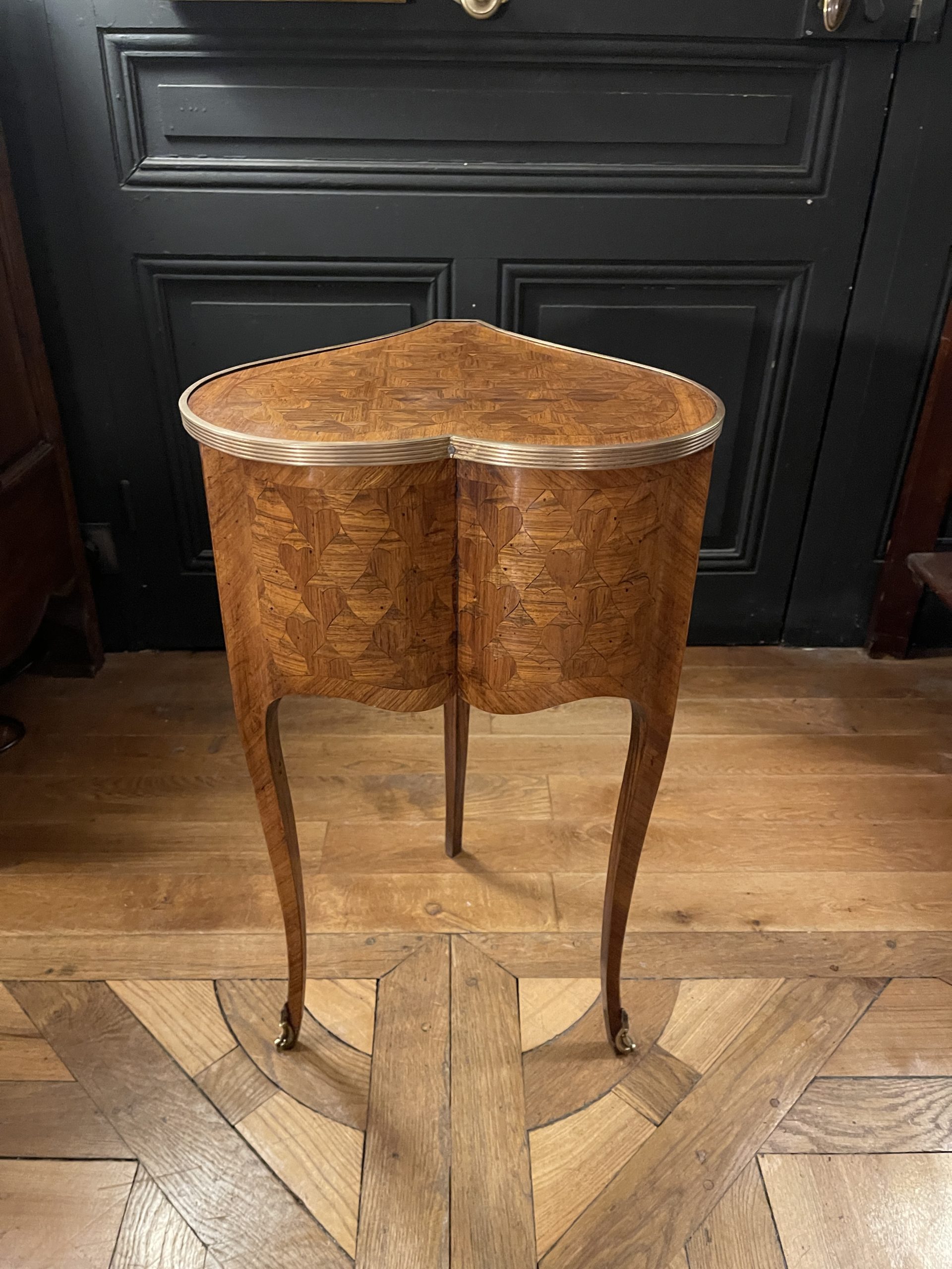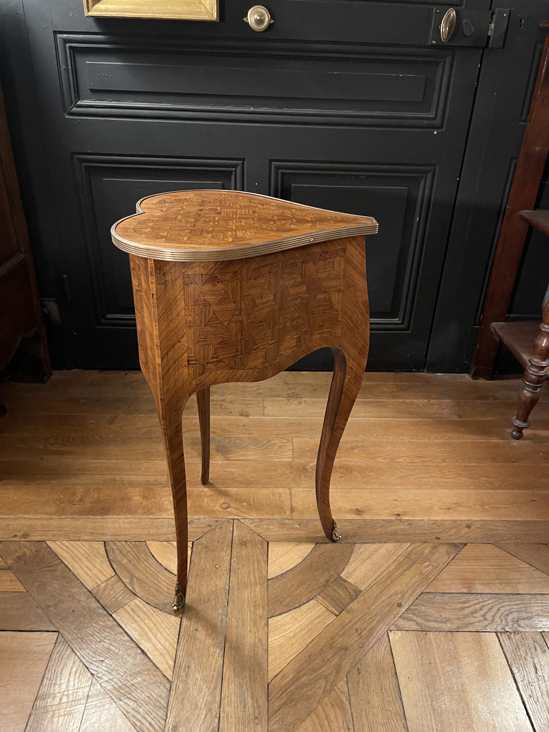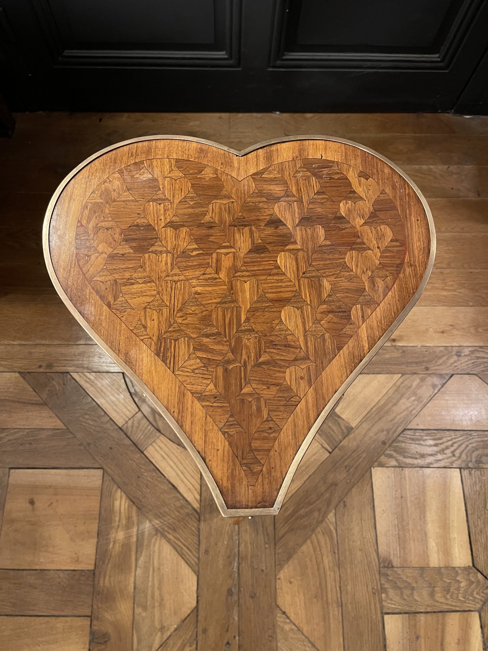 Heart-shaped Louis XV style marquetry table, 20th century.