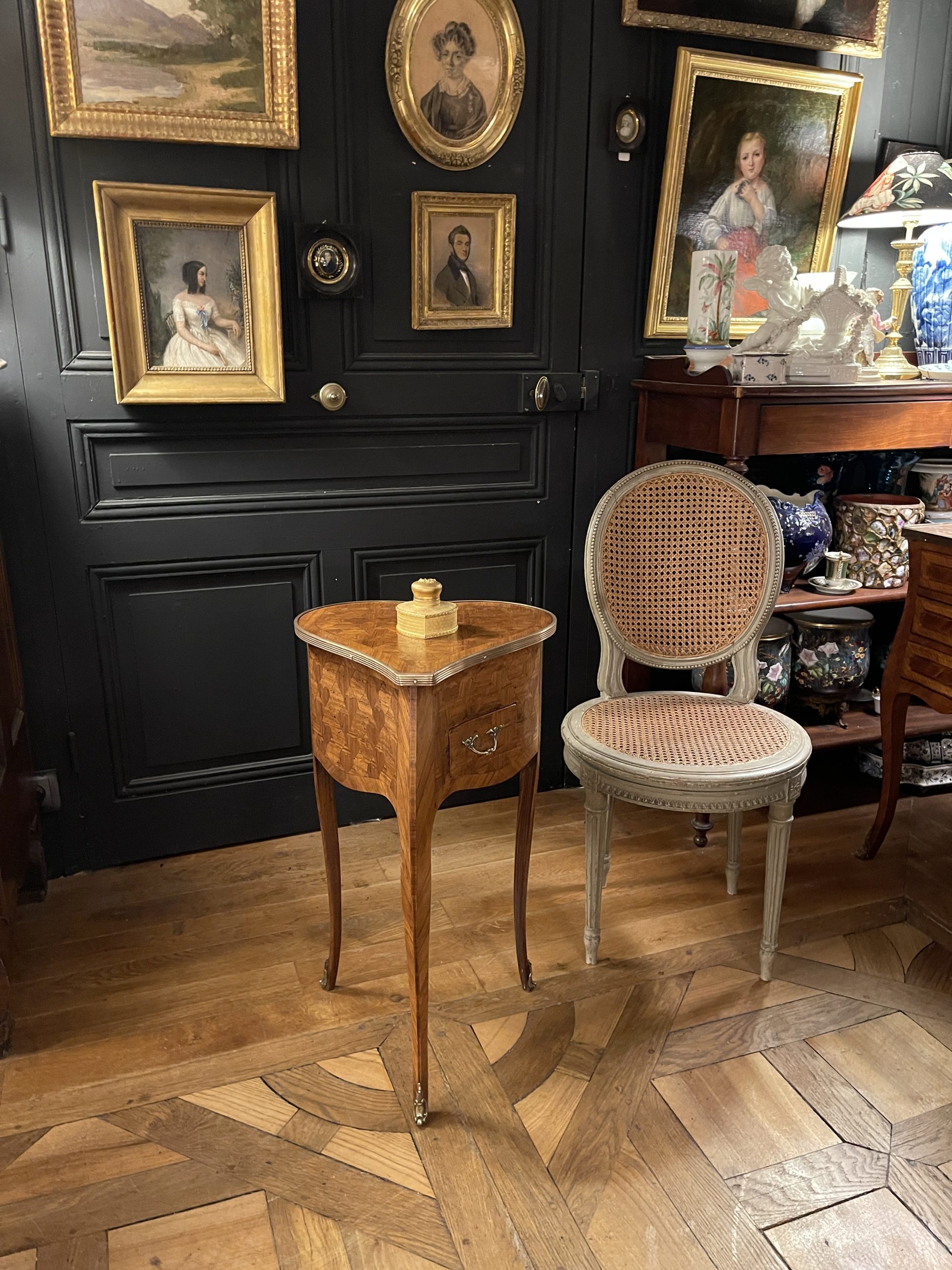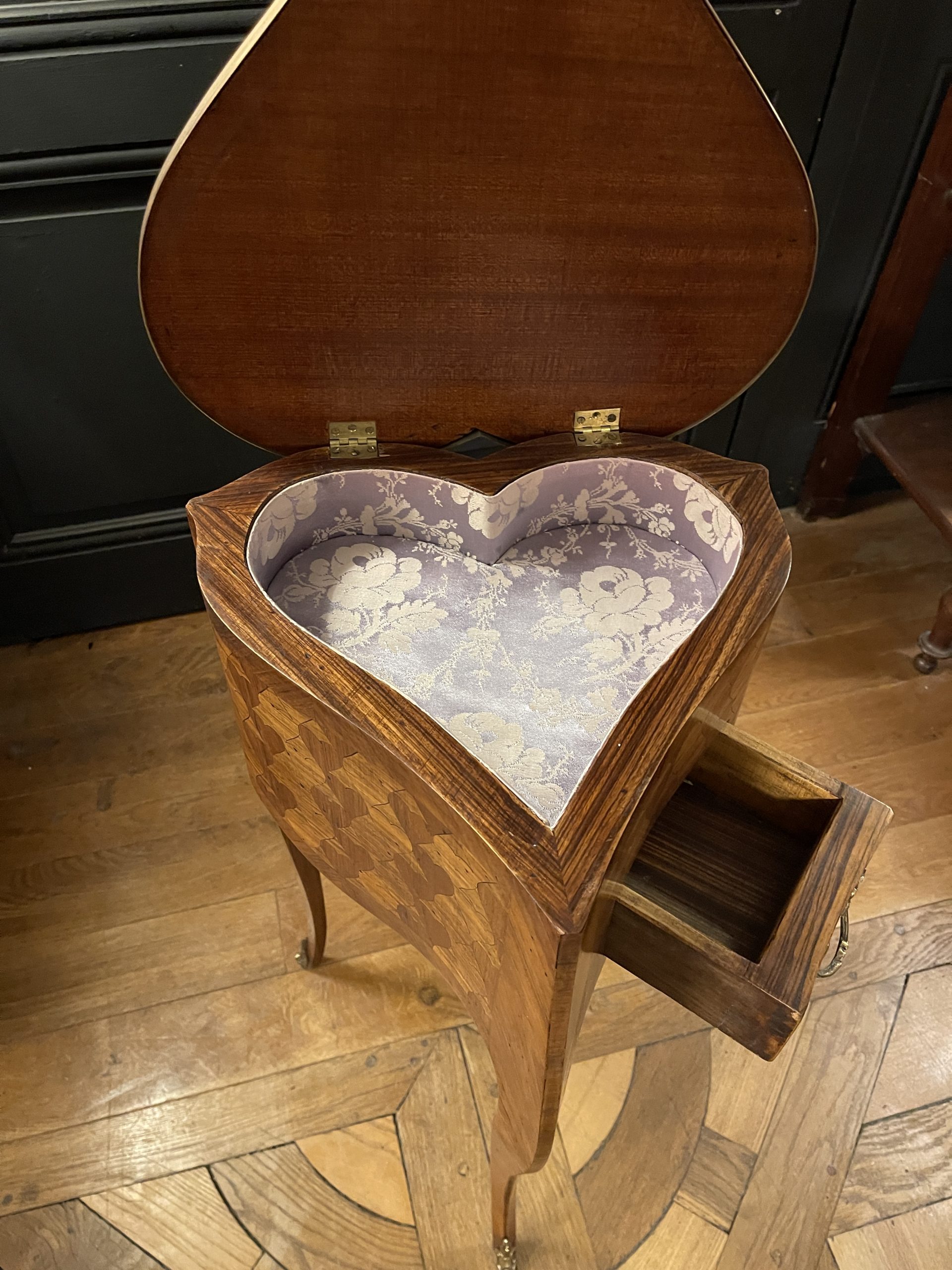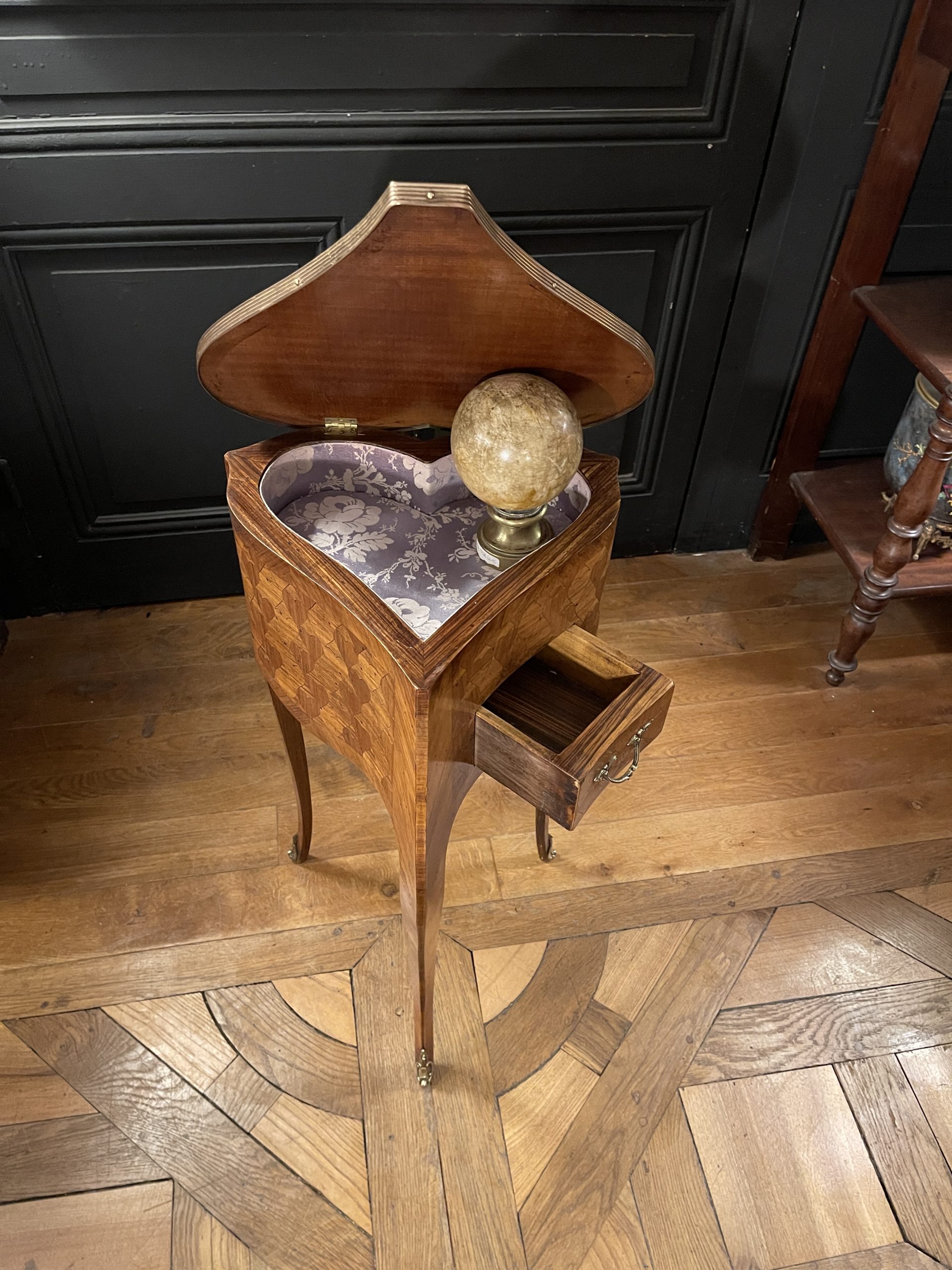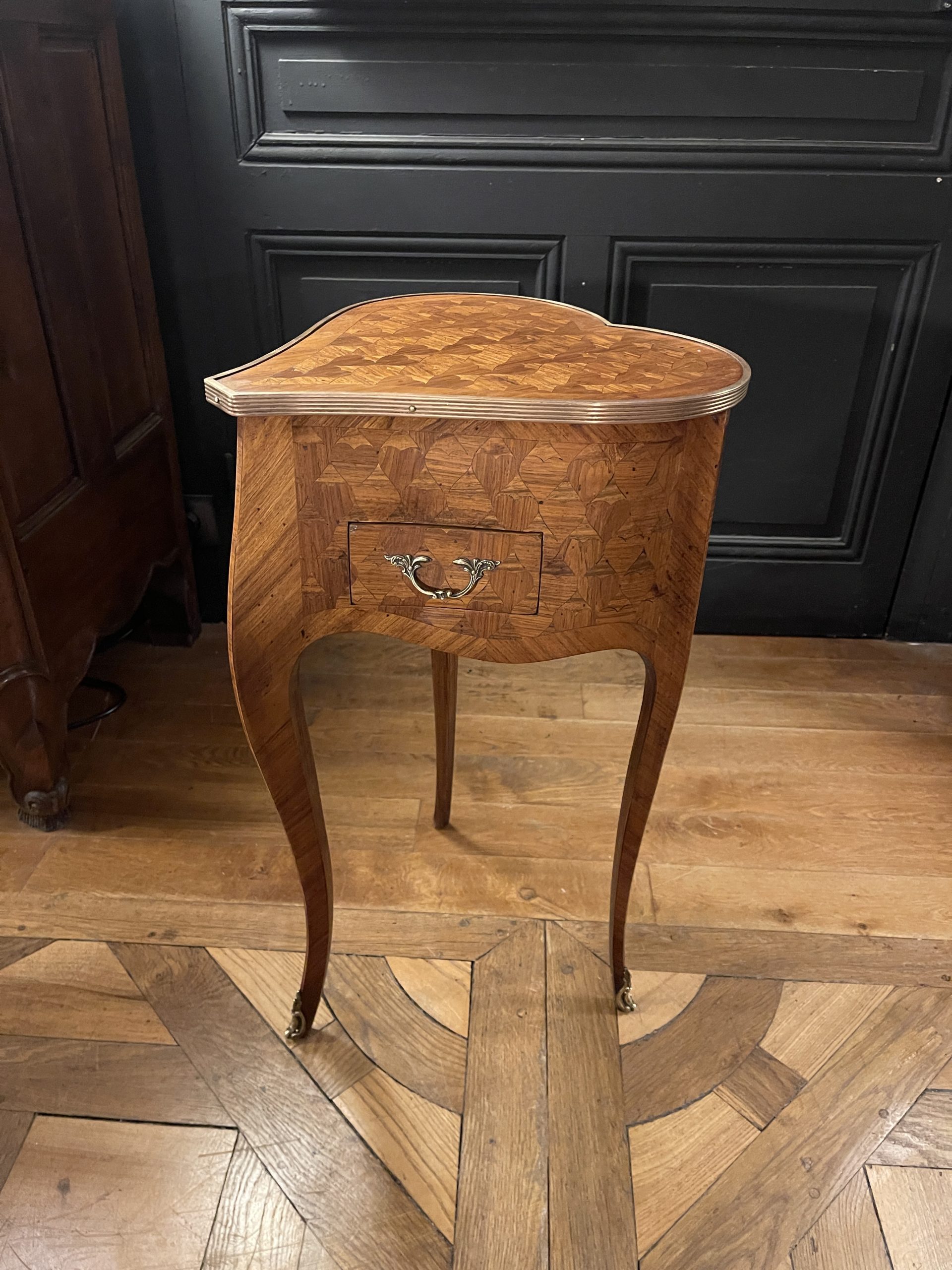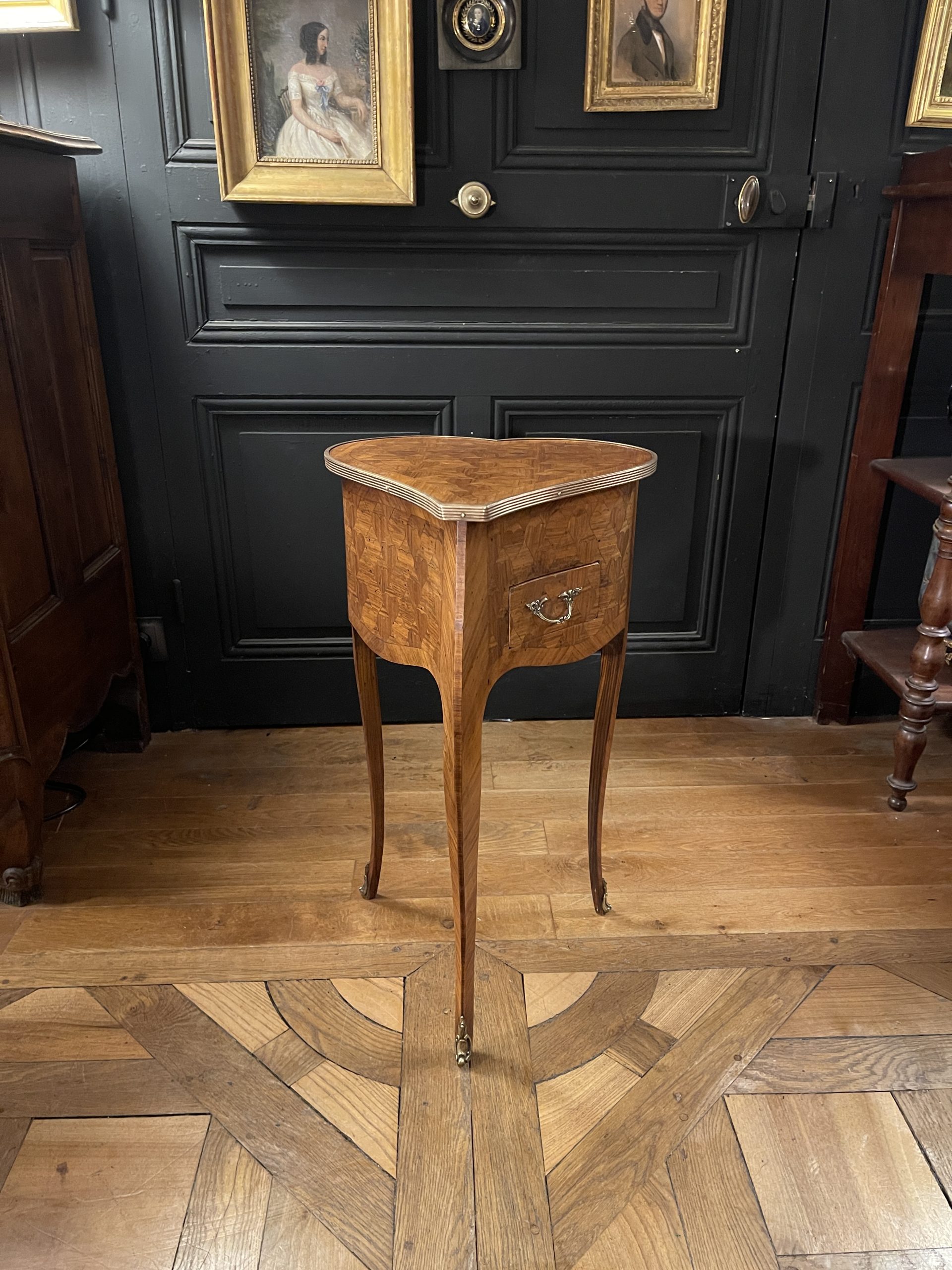 Heart-shaped Louis XV style marquetry table, 20th century.