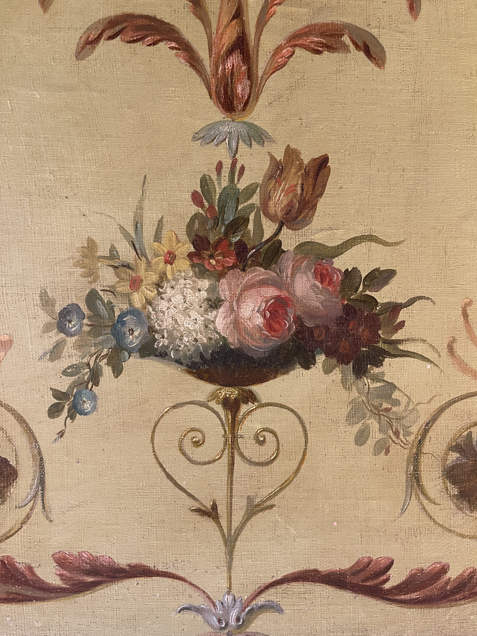 Louis XVI Style Decorative Panel, Oil On Canvas, 19th Century