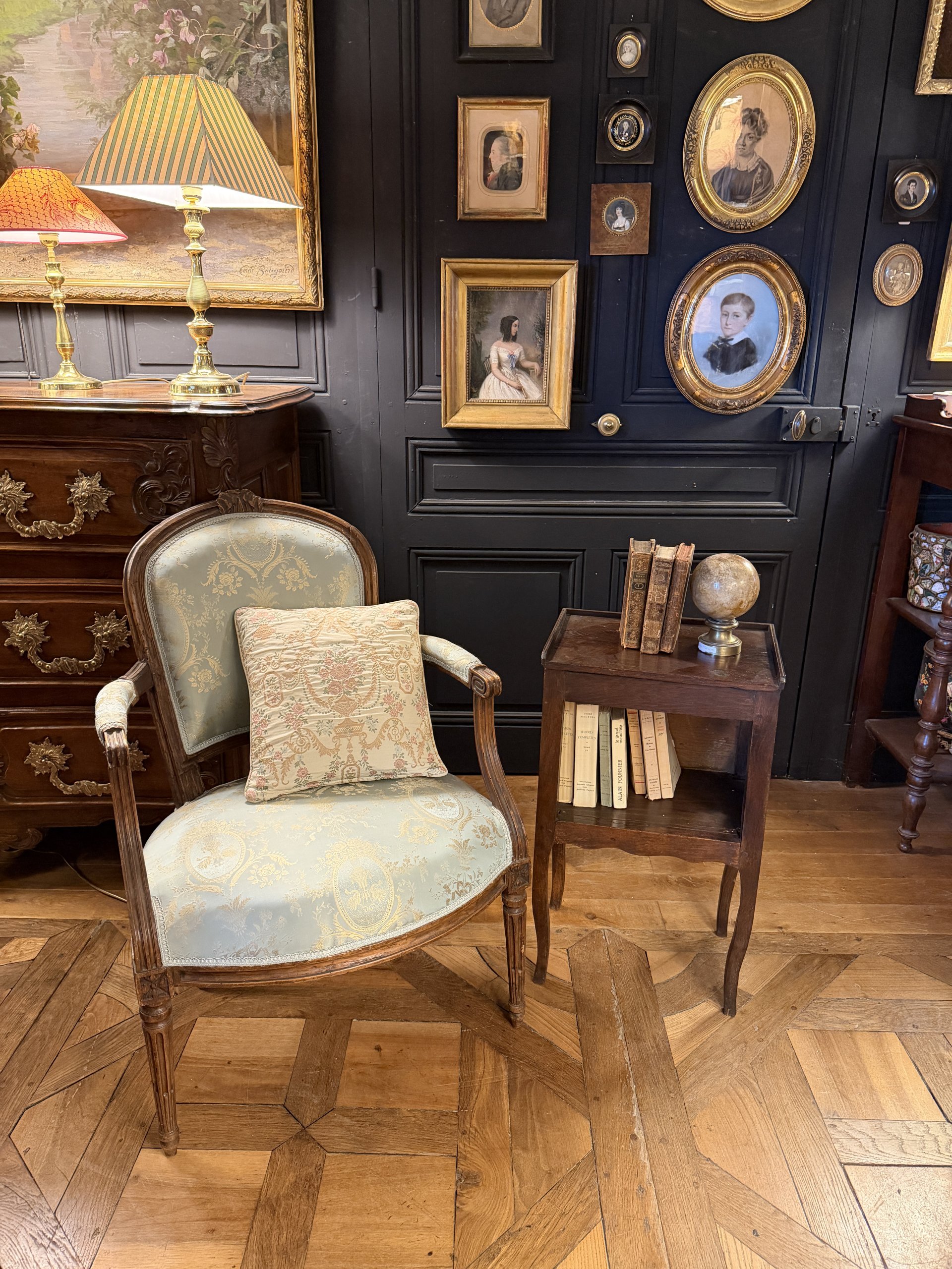 It rests on four cabriole legs.