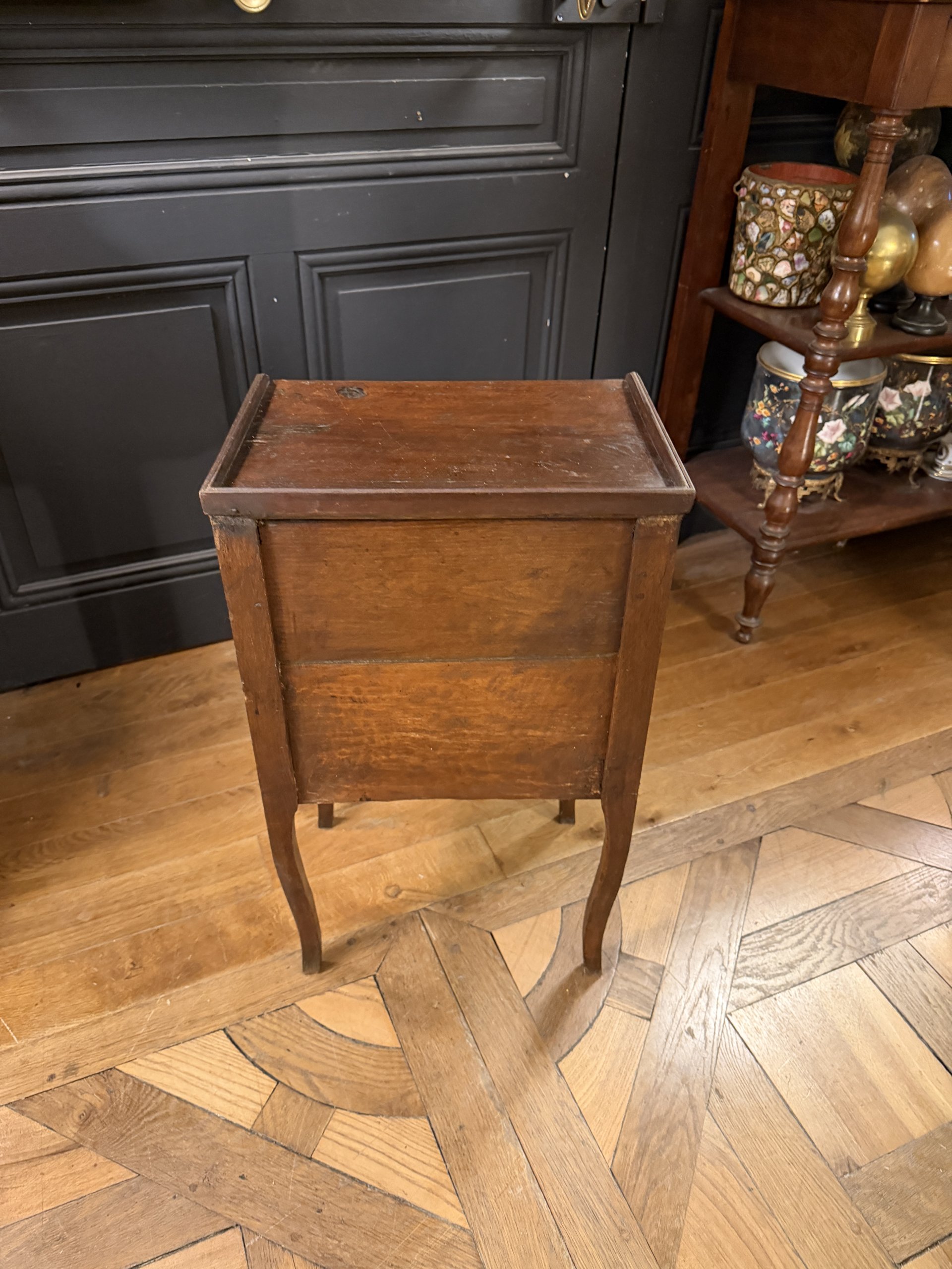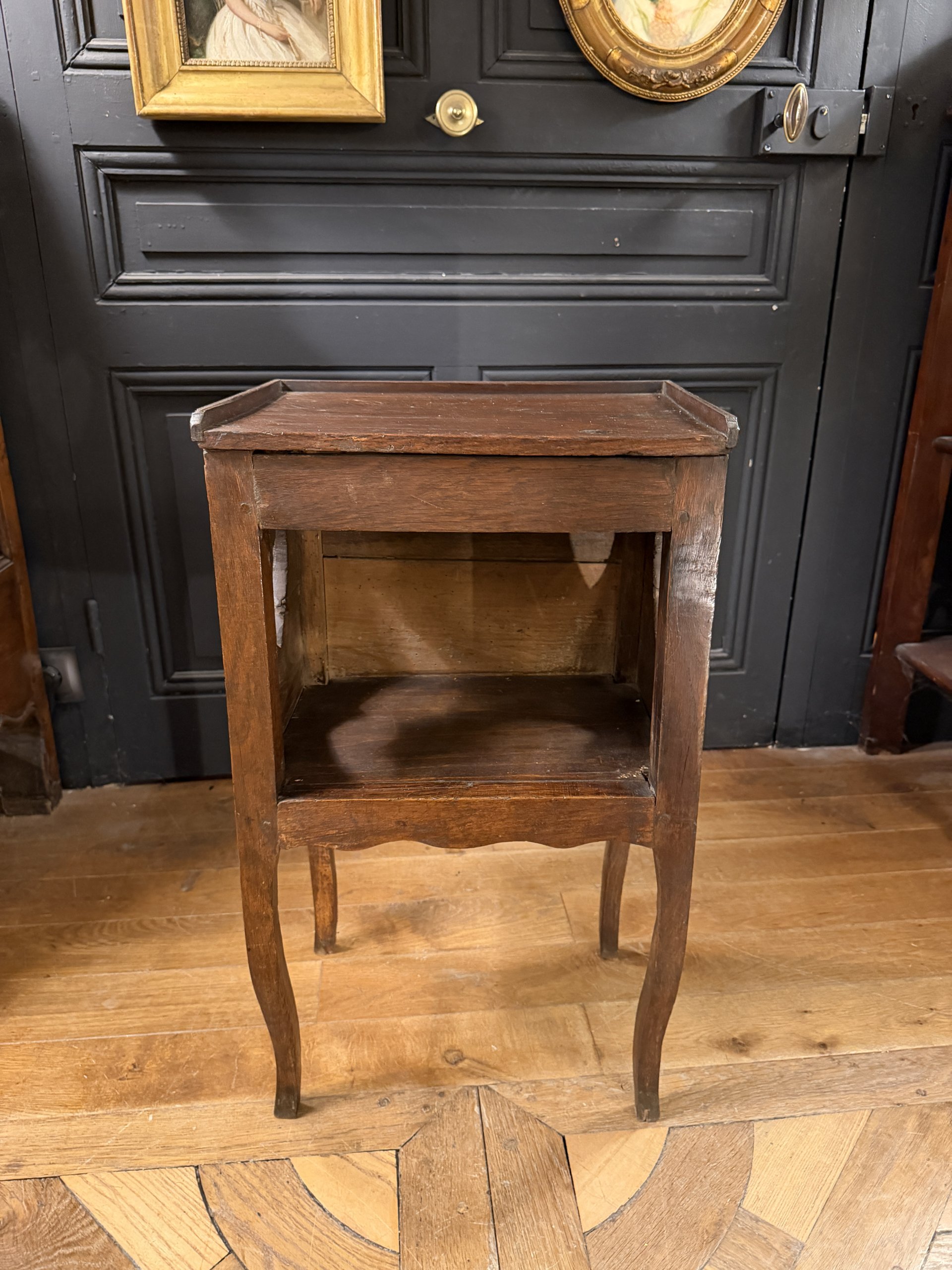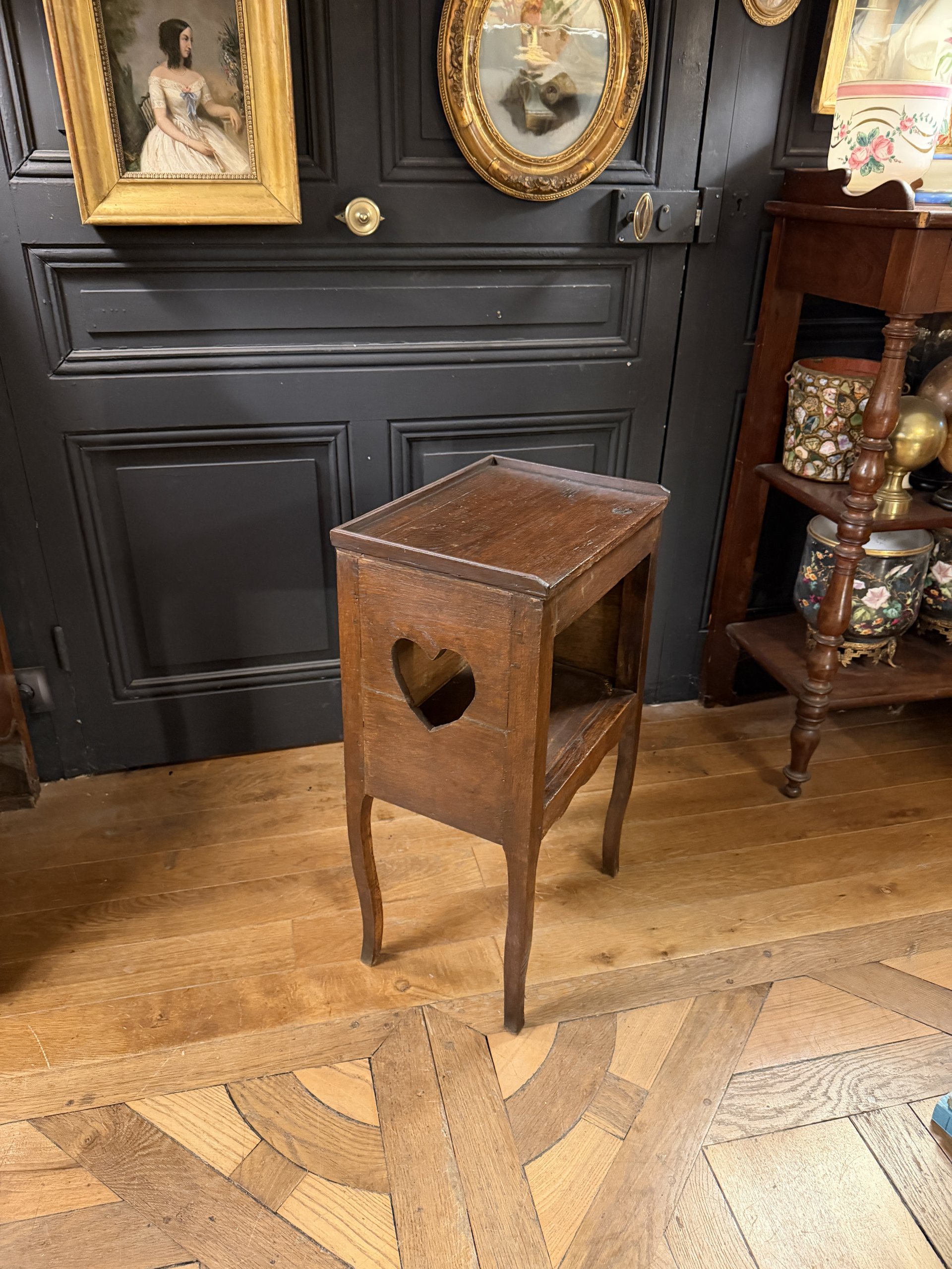 Small bedside table with openwork heart decoration on its sides, made of oak in the Louis XV style, late 18th century.