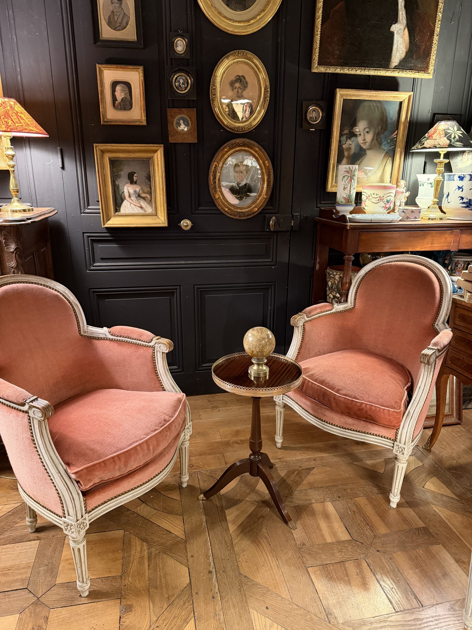 The legs terminate in brass feet.
