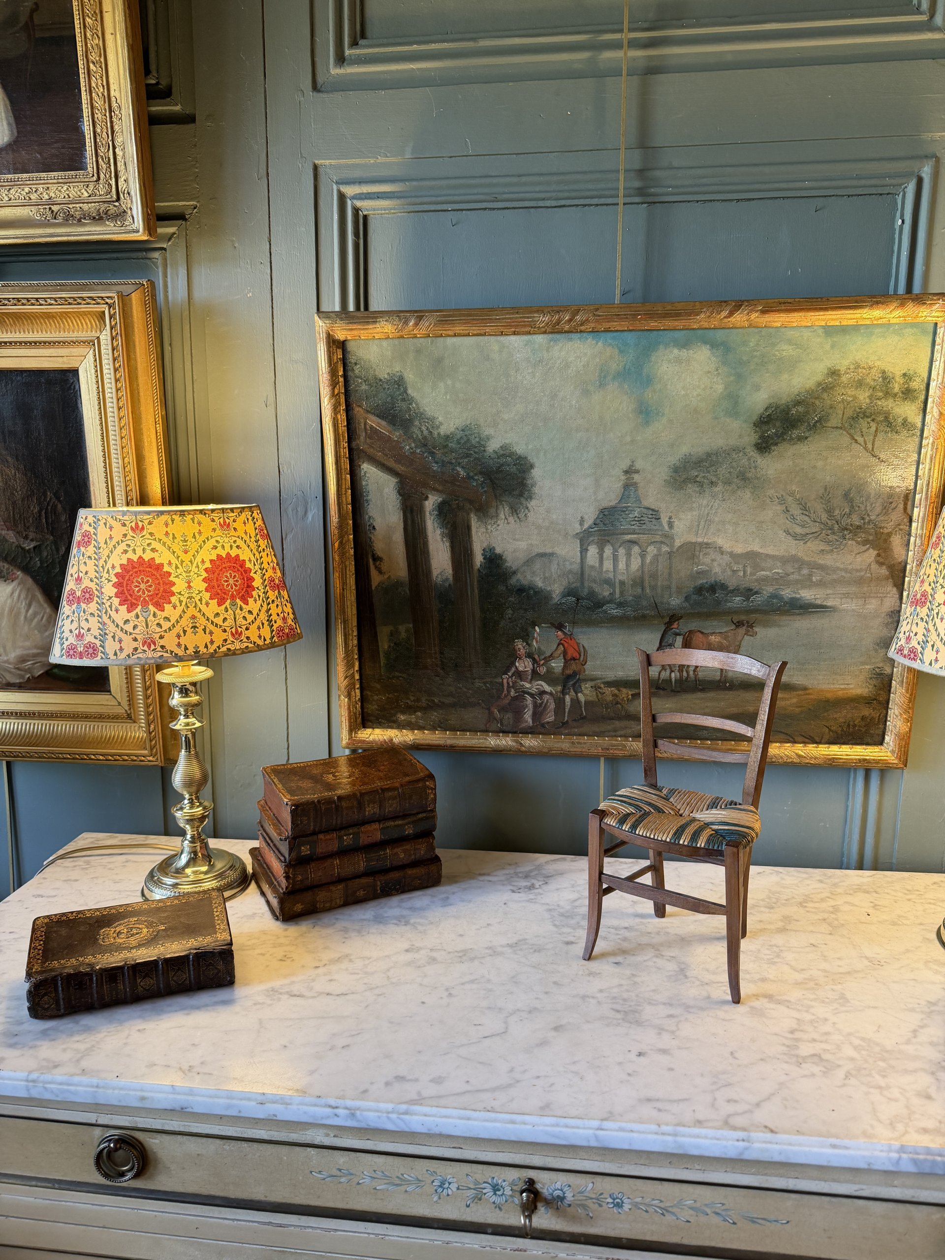 Chaise paillée en bois fruitier miniature datant de la première partie du XXème.