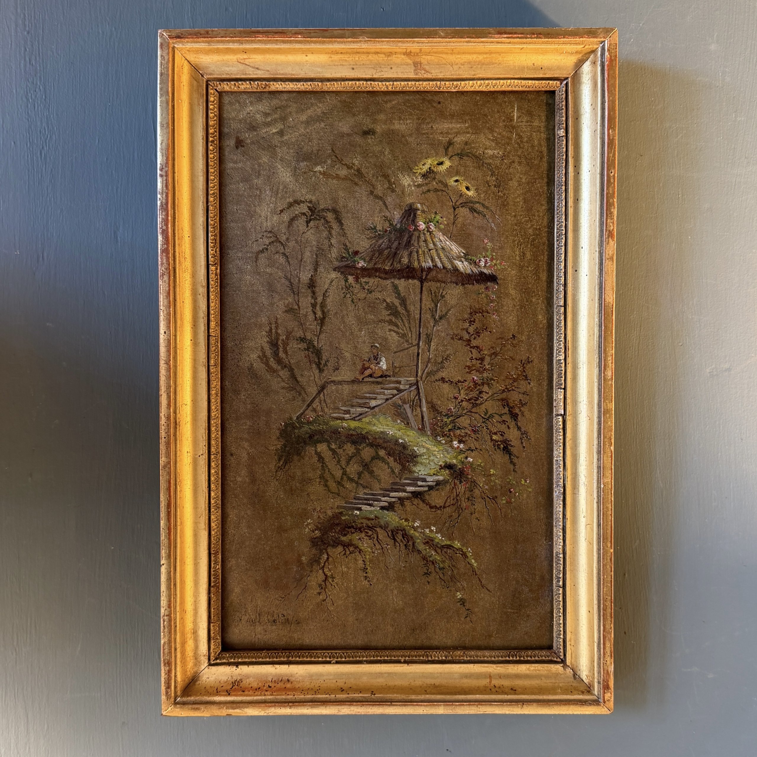 Chinoiserie : le pêcheur, Huile sur panneau XIXème