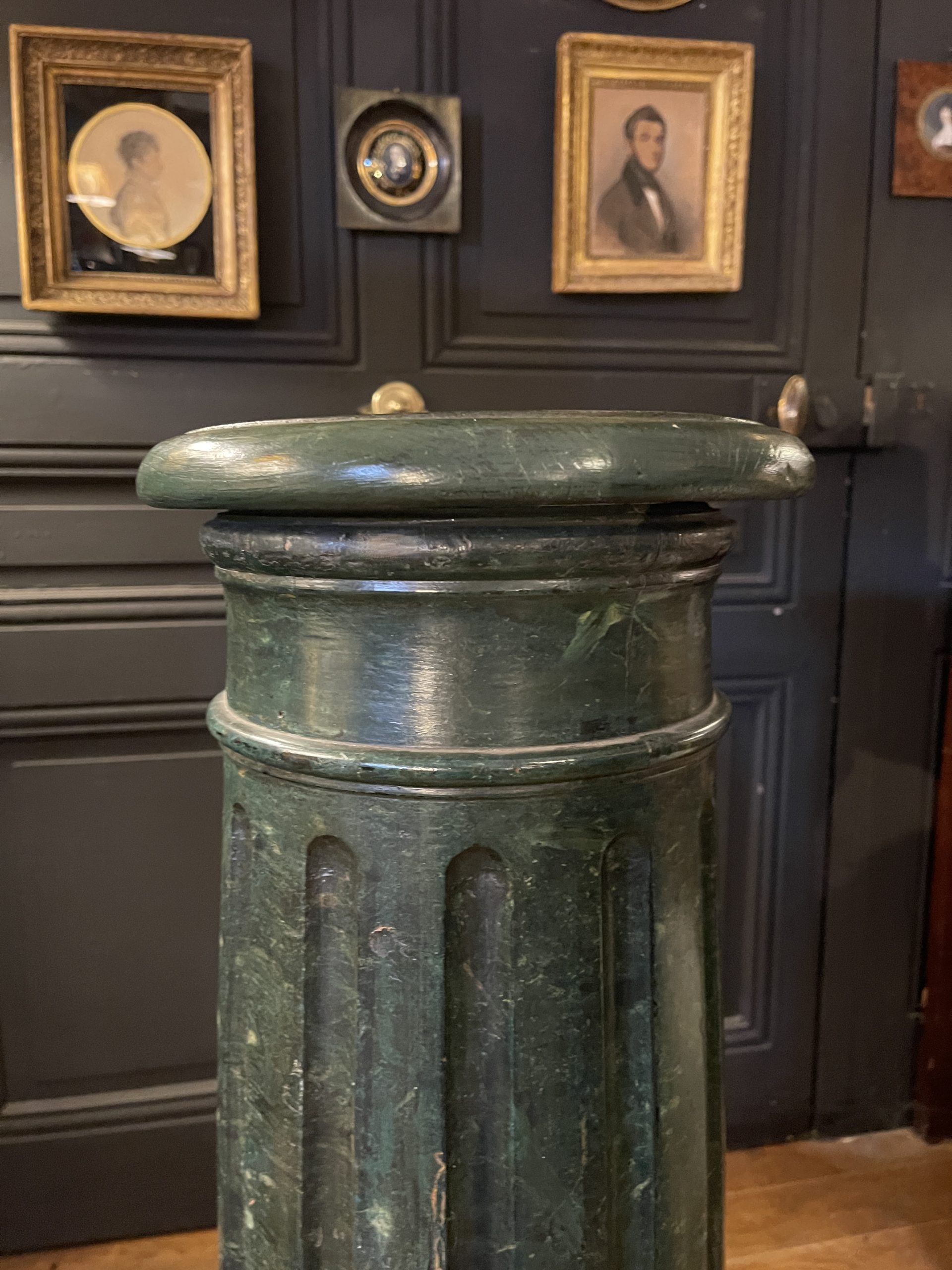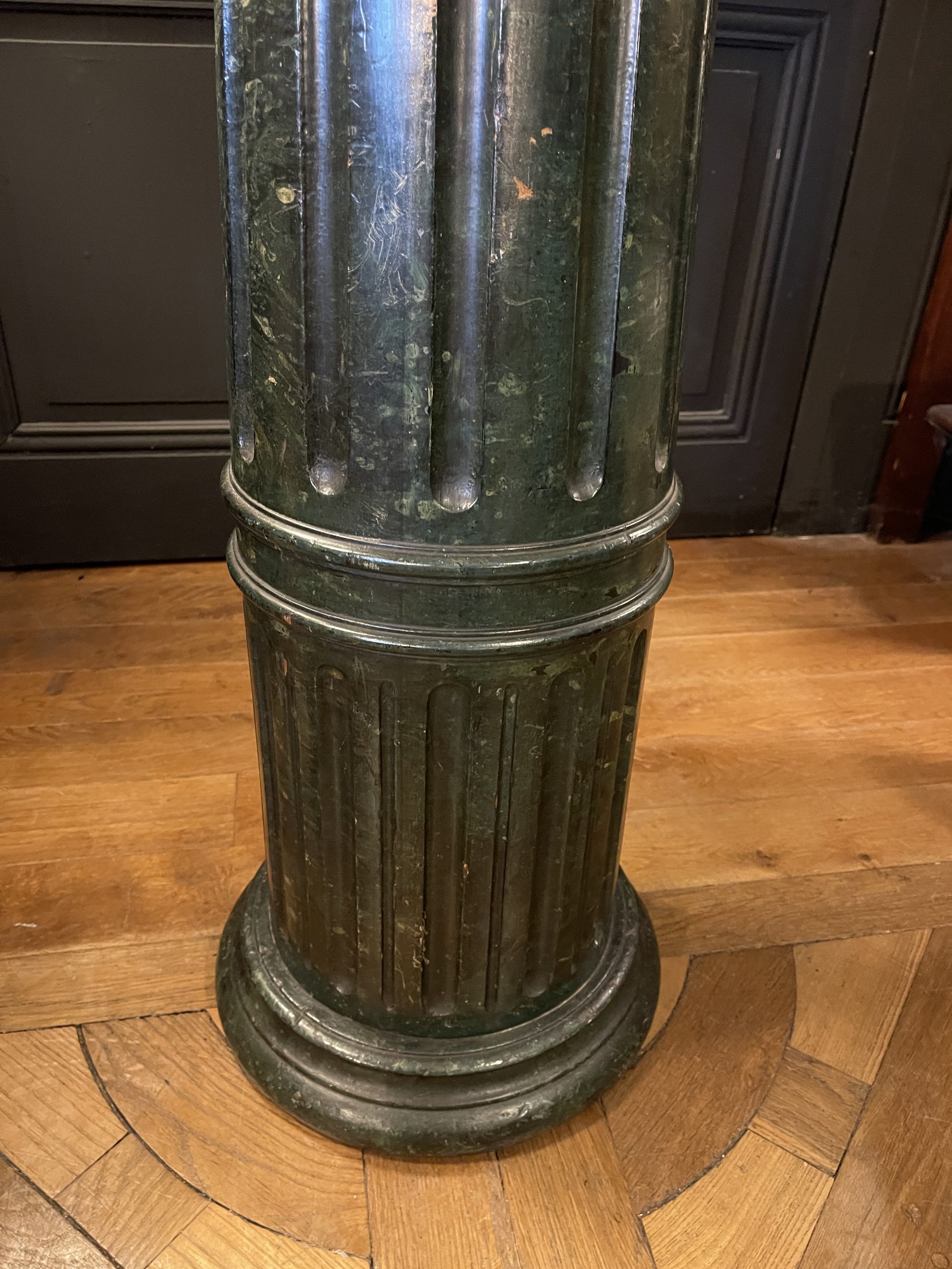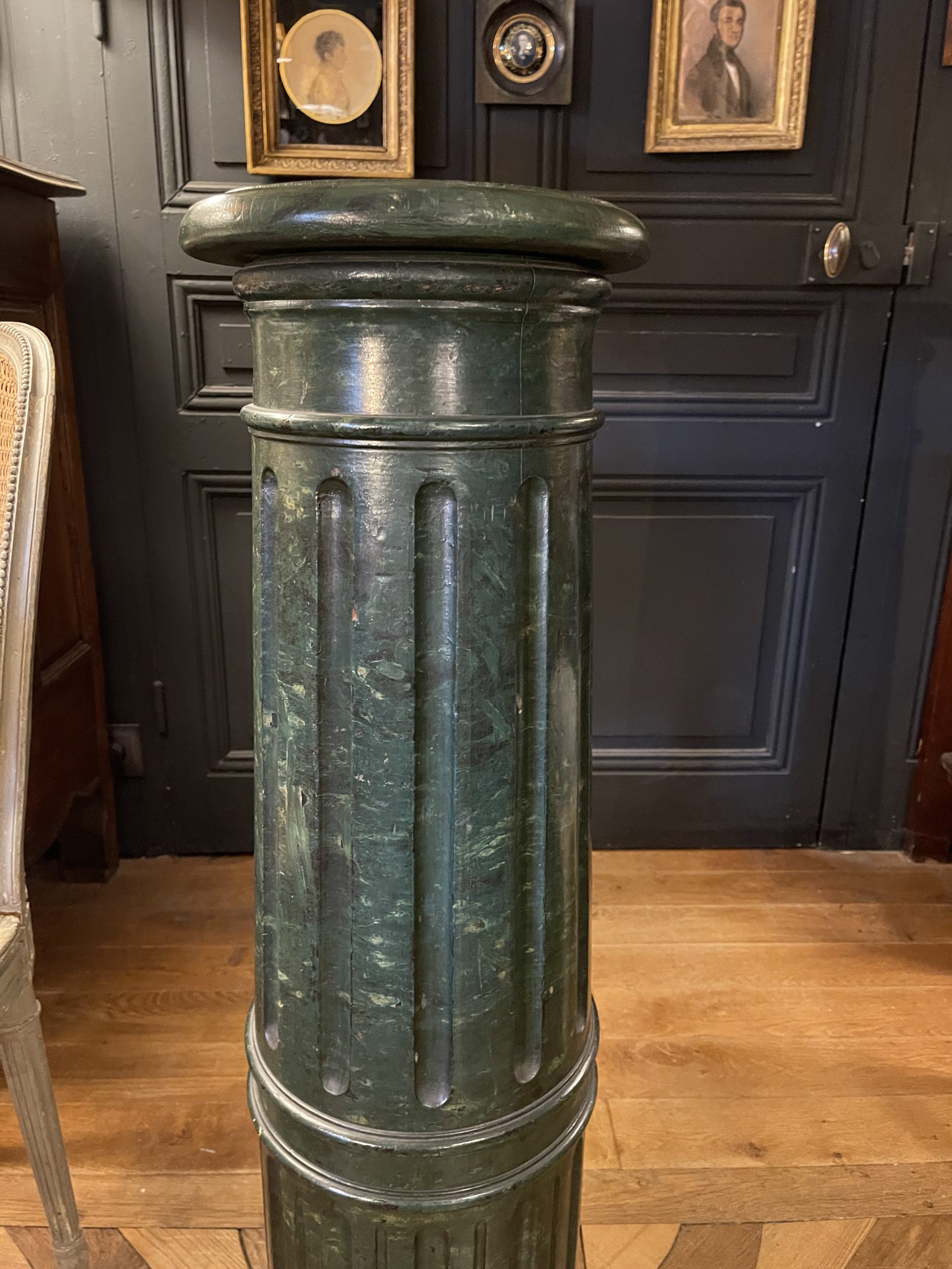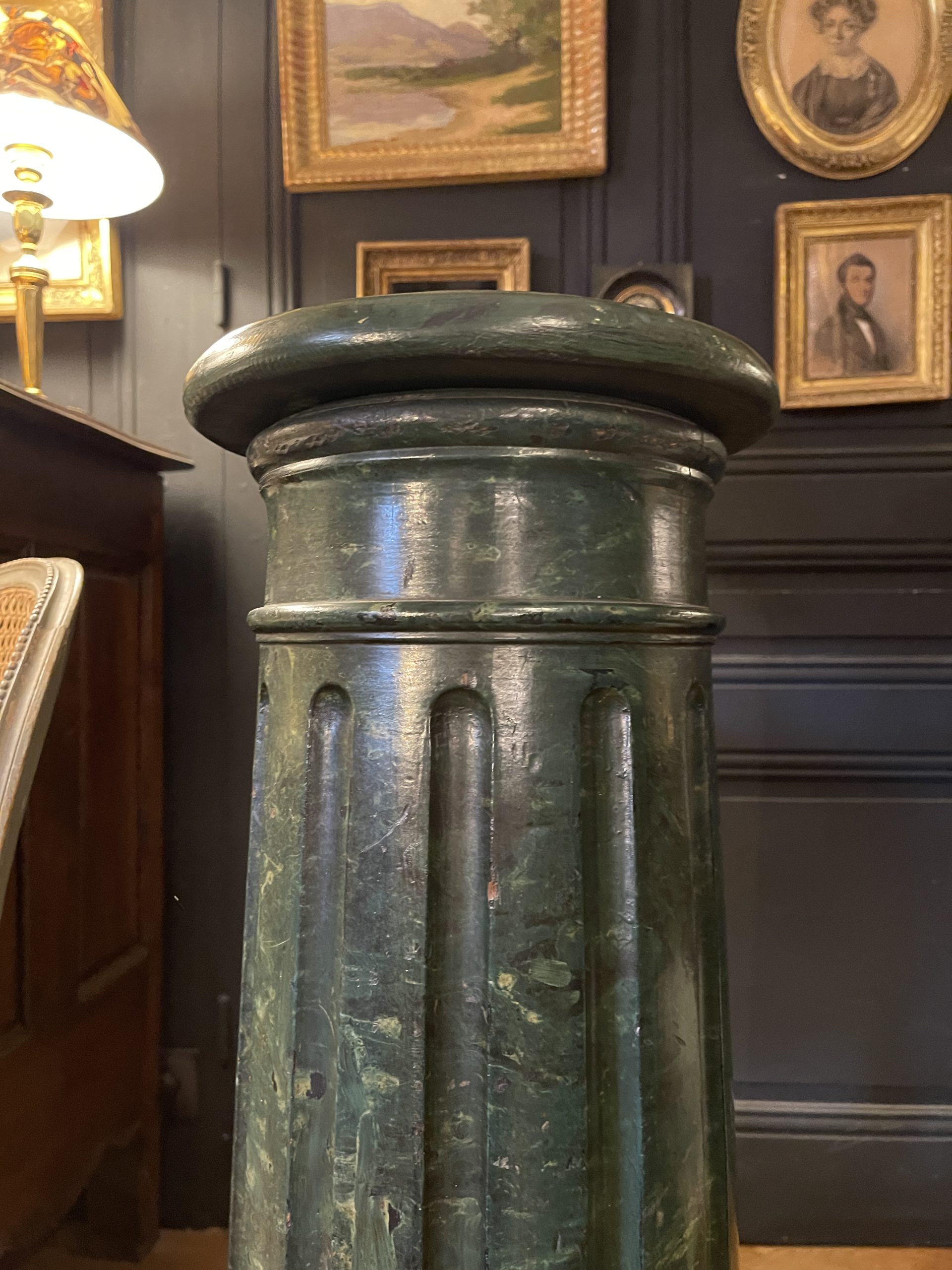 Colonne en bois peint faux marbre de couleur vert foncé XIXème.