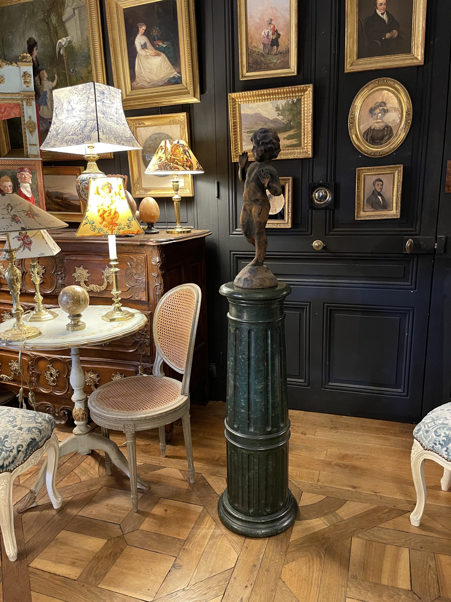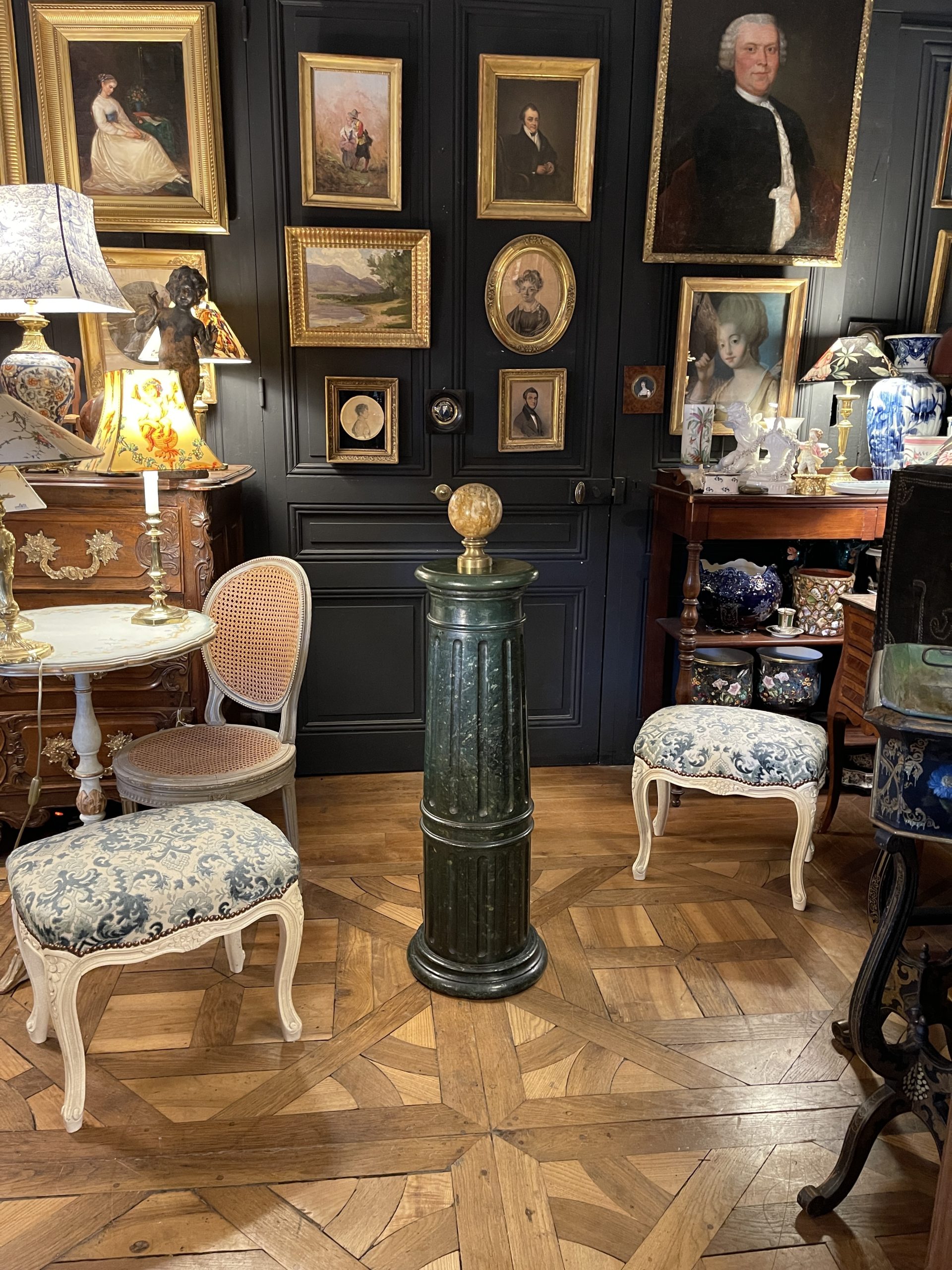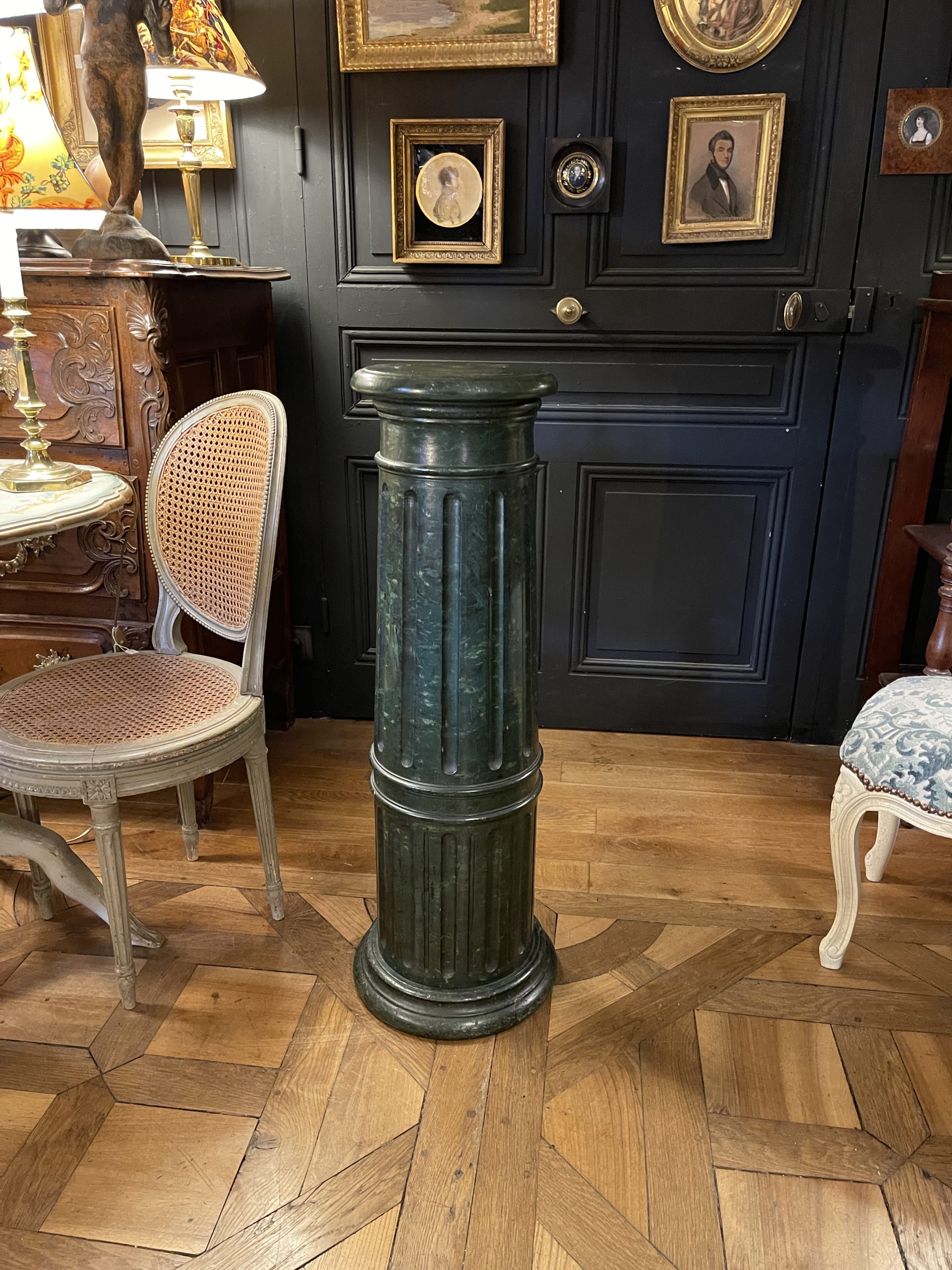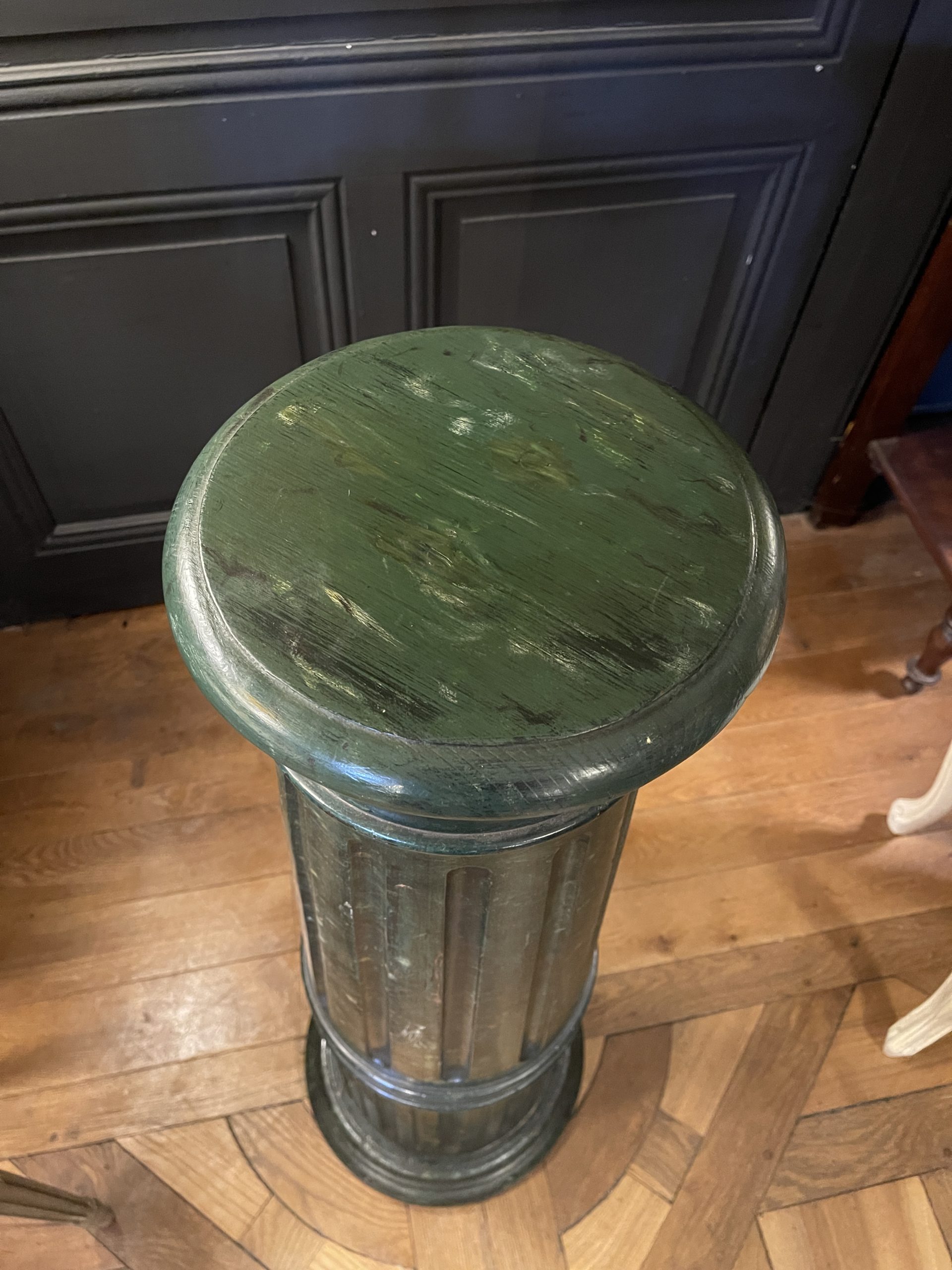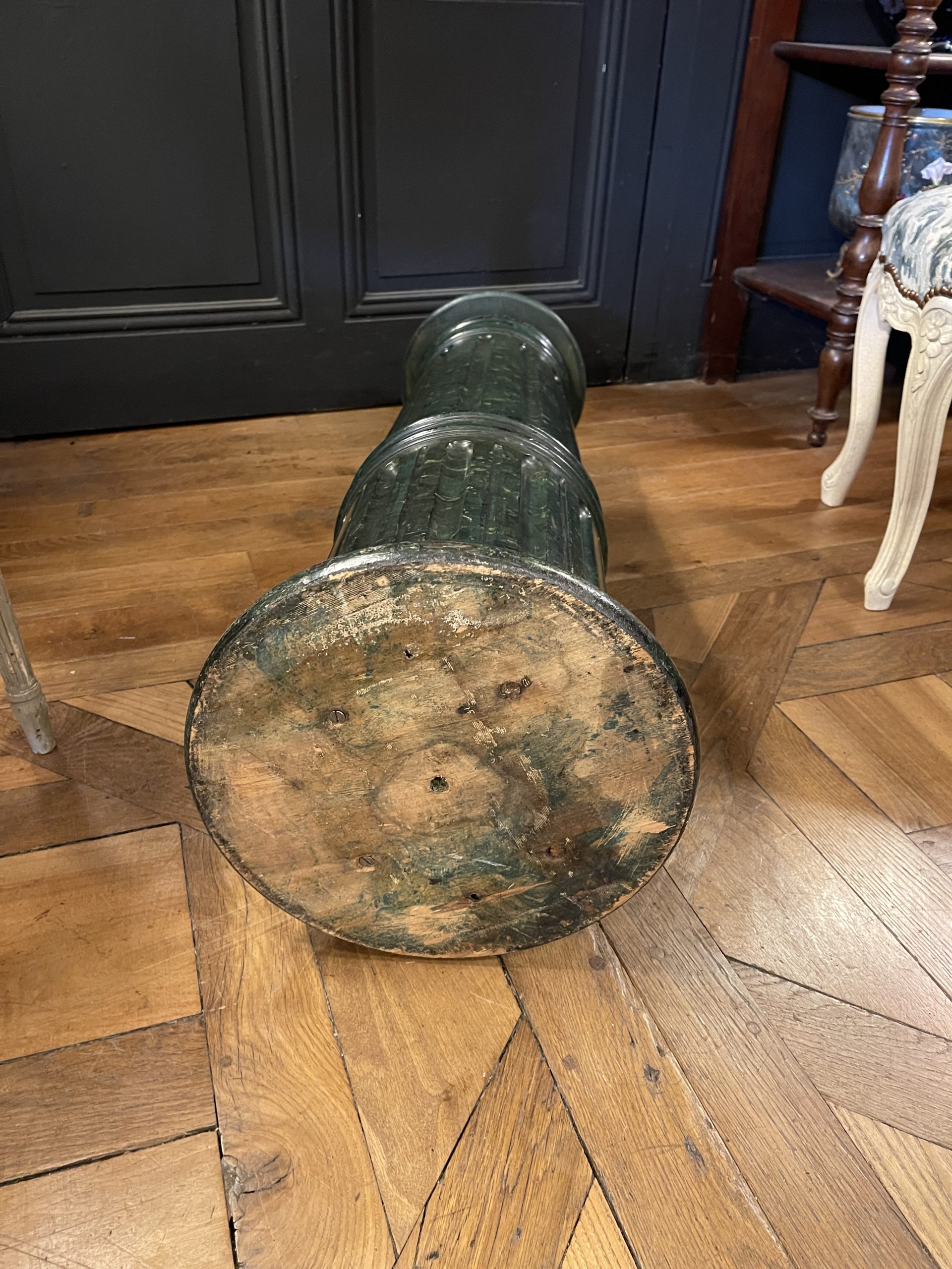 Colonne en bois peint faux marbre de couleur vert foncé XIXème.