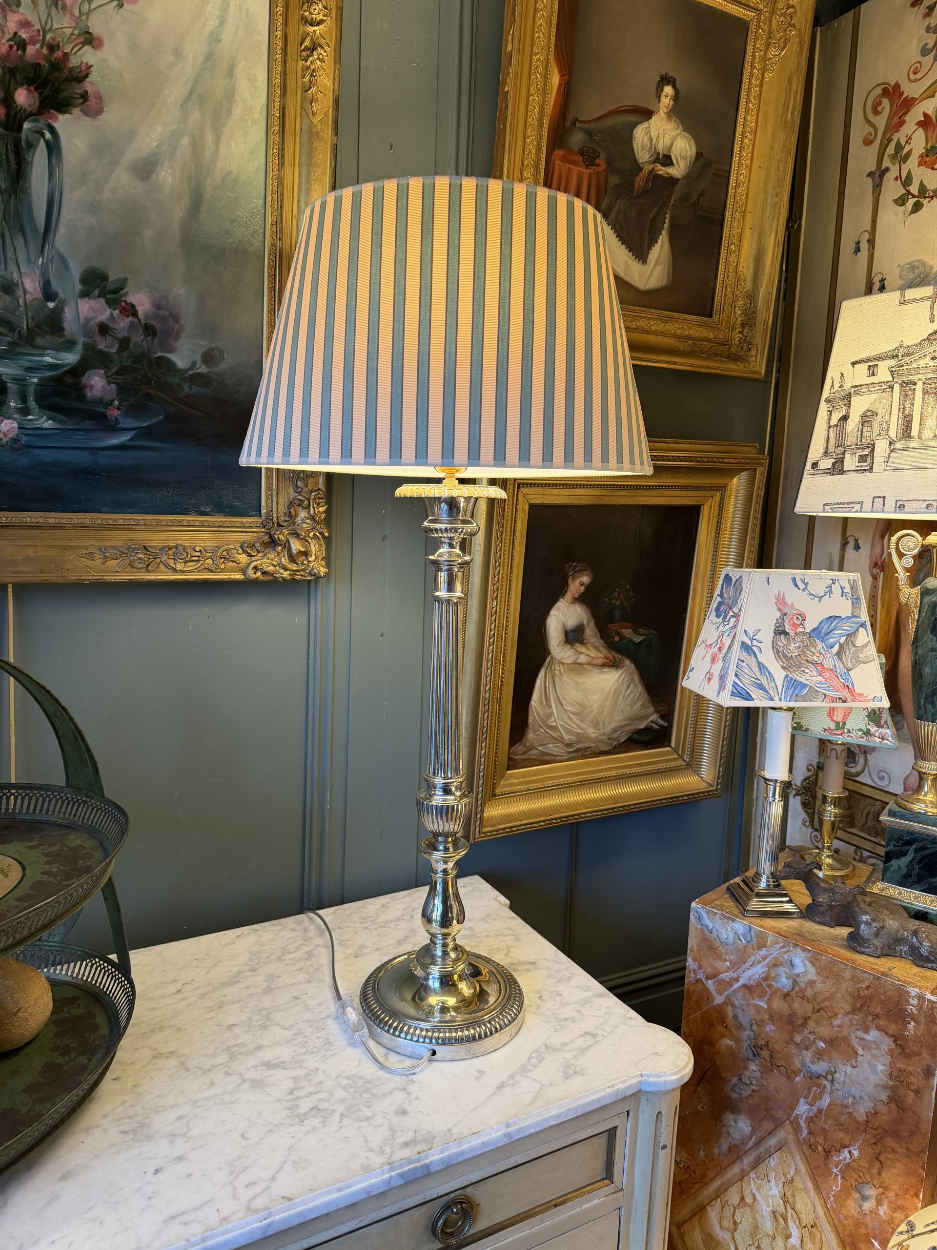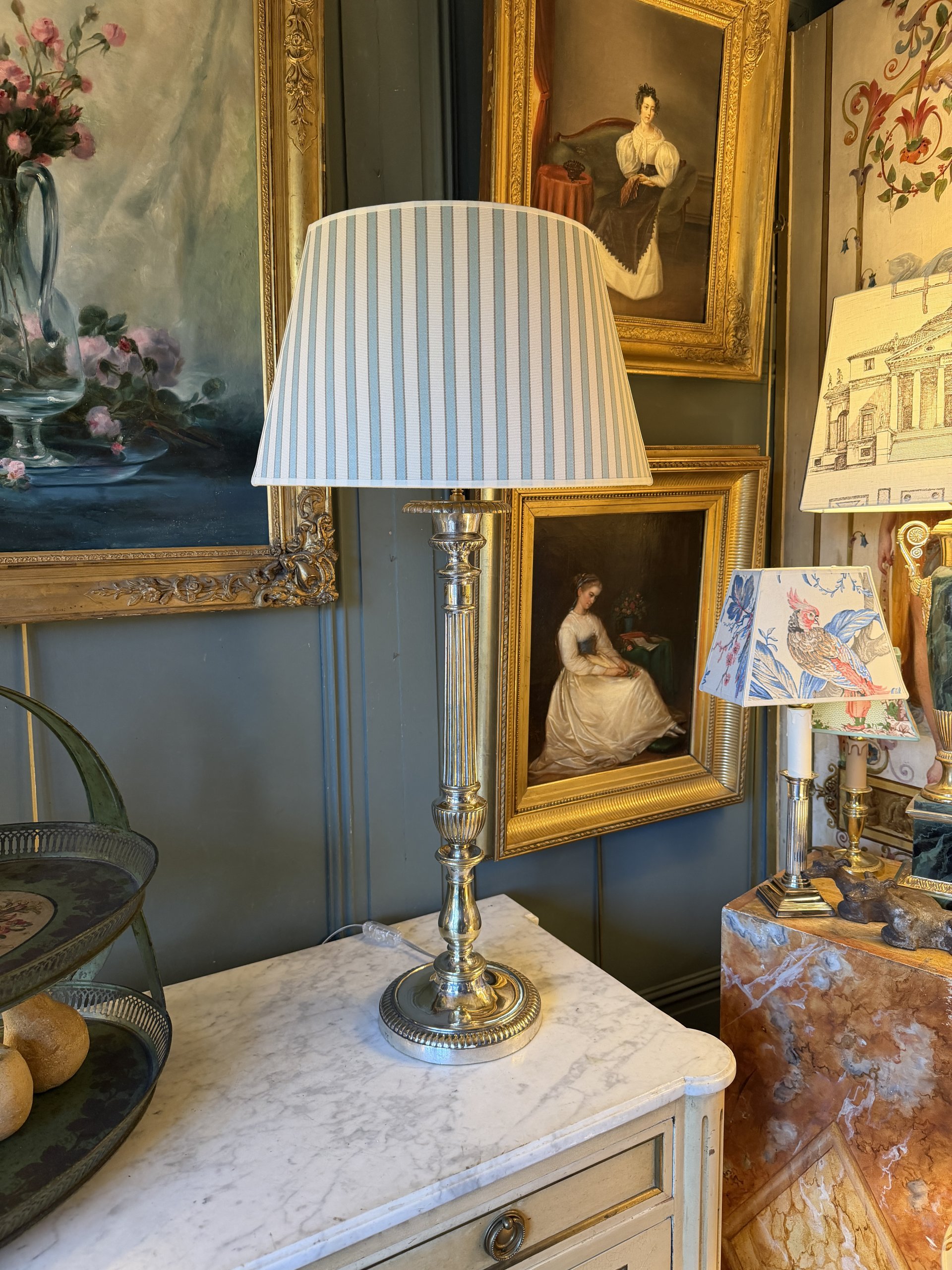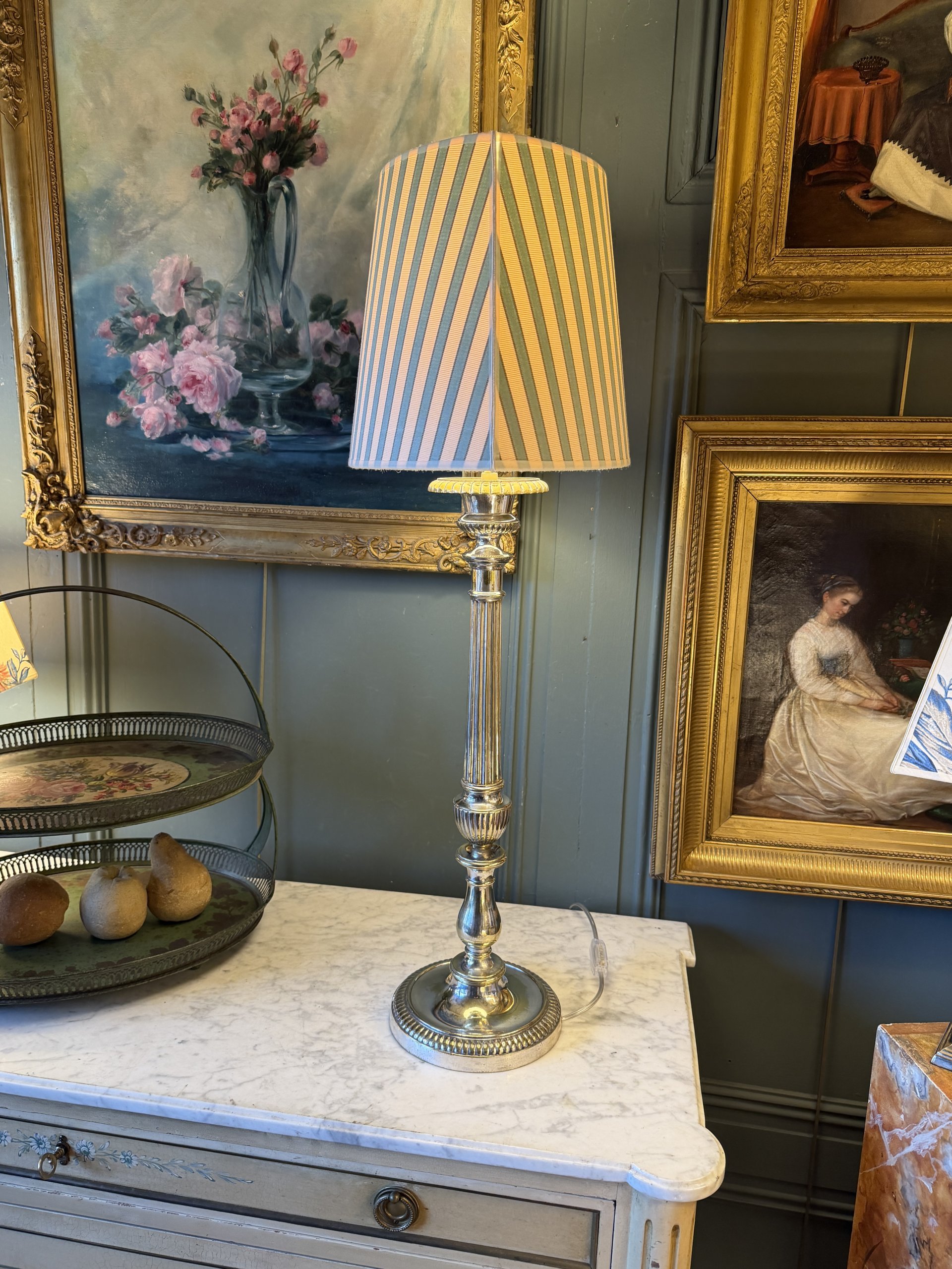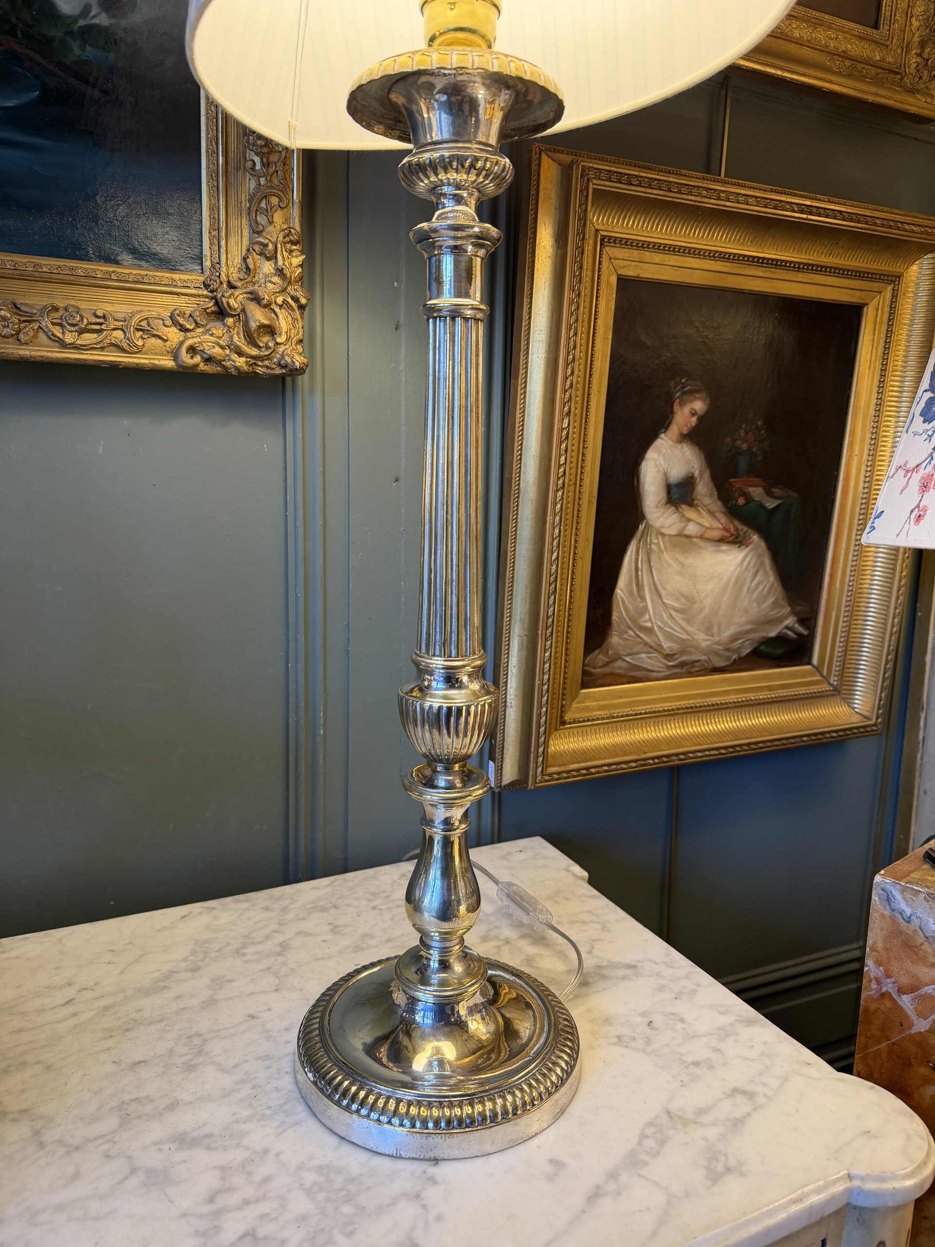 Grande lampe en métal argenté, Hauteur 80 cm