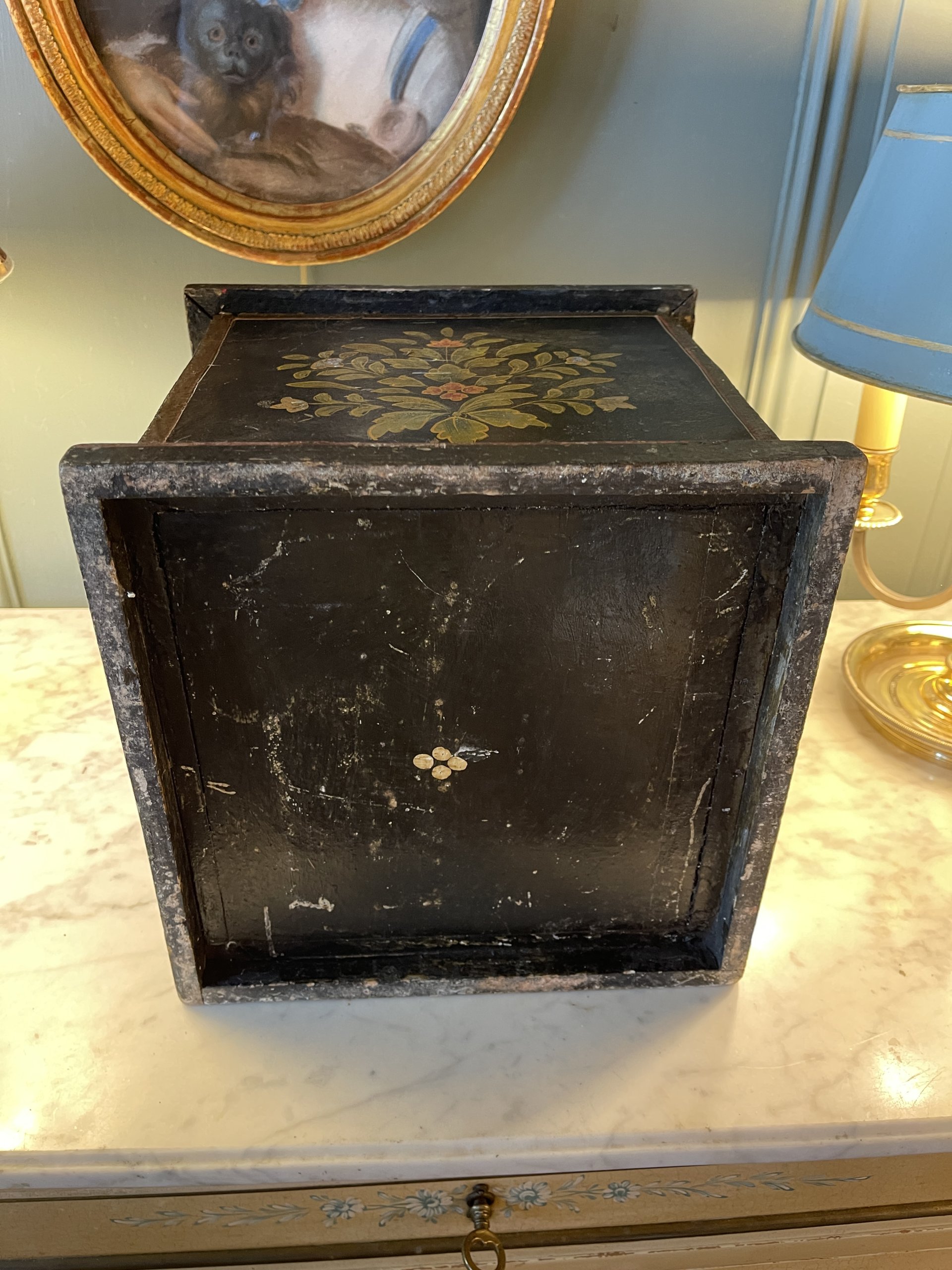Jardinière, cache-pot en bois peint à décor floral sur chaque face, de forme carrée, datant du début XXème.