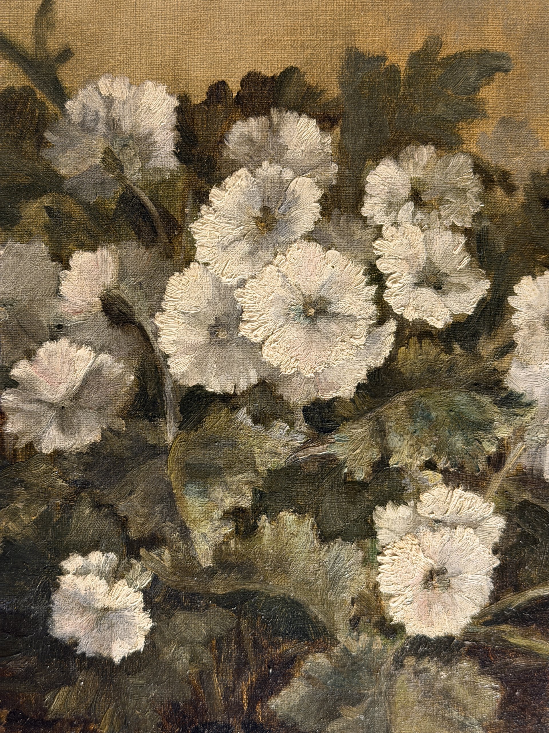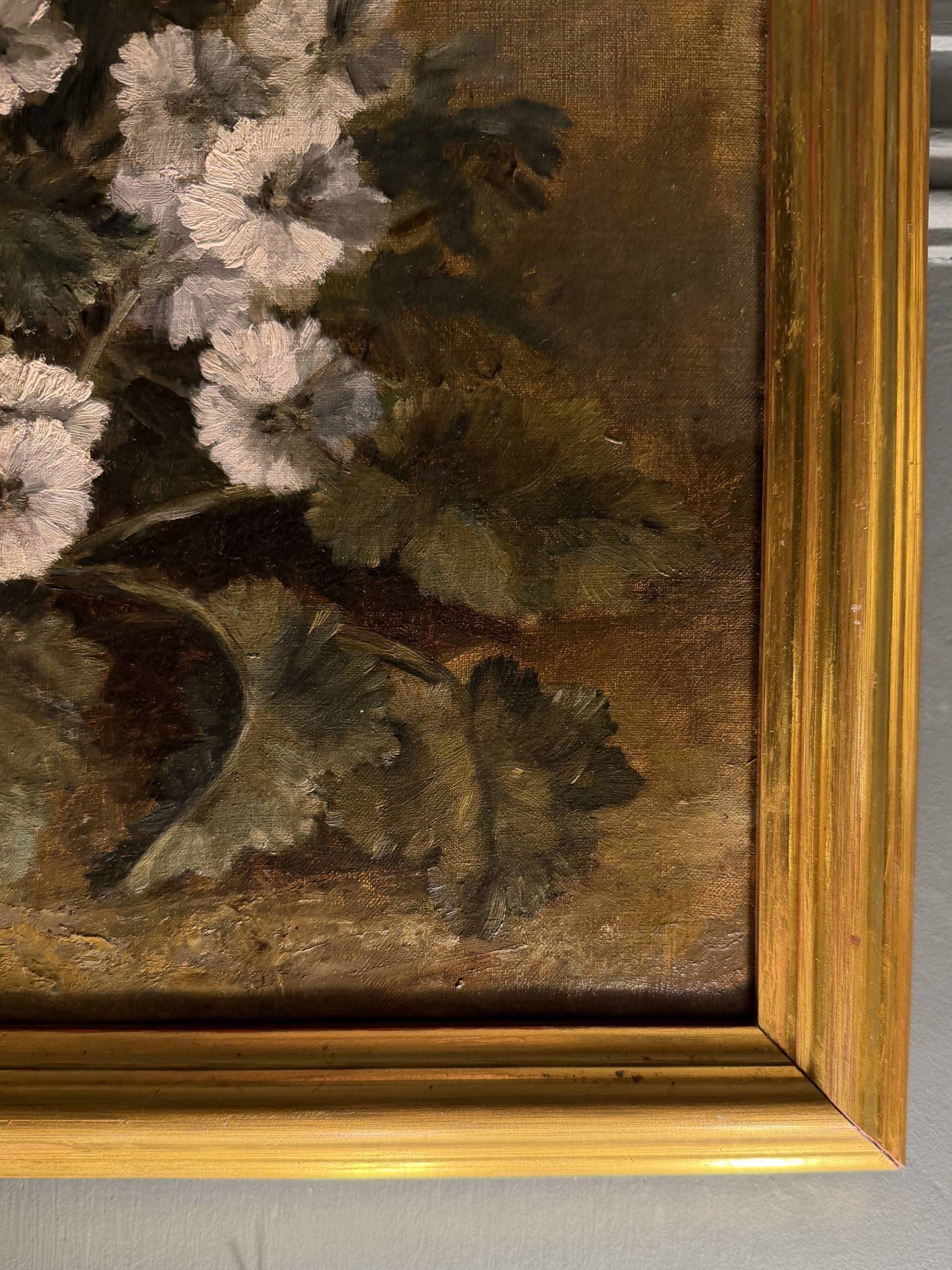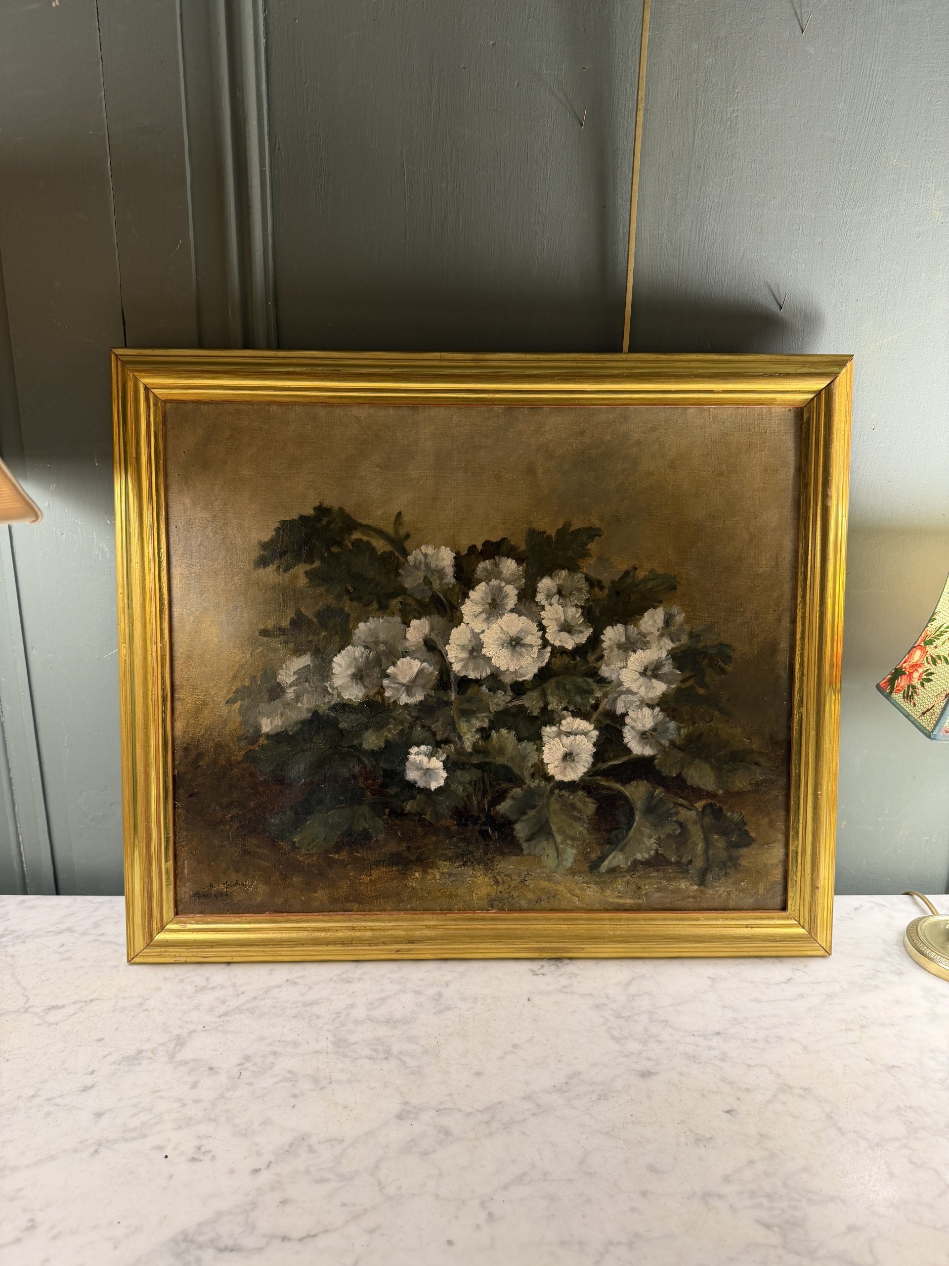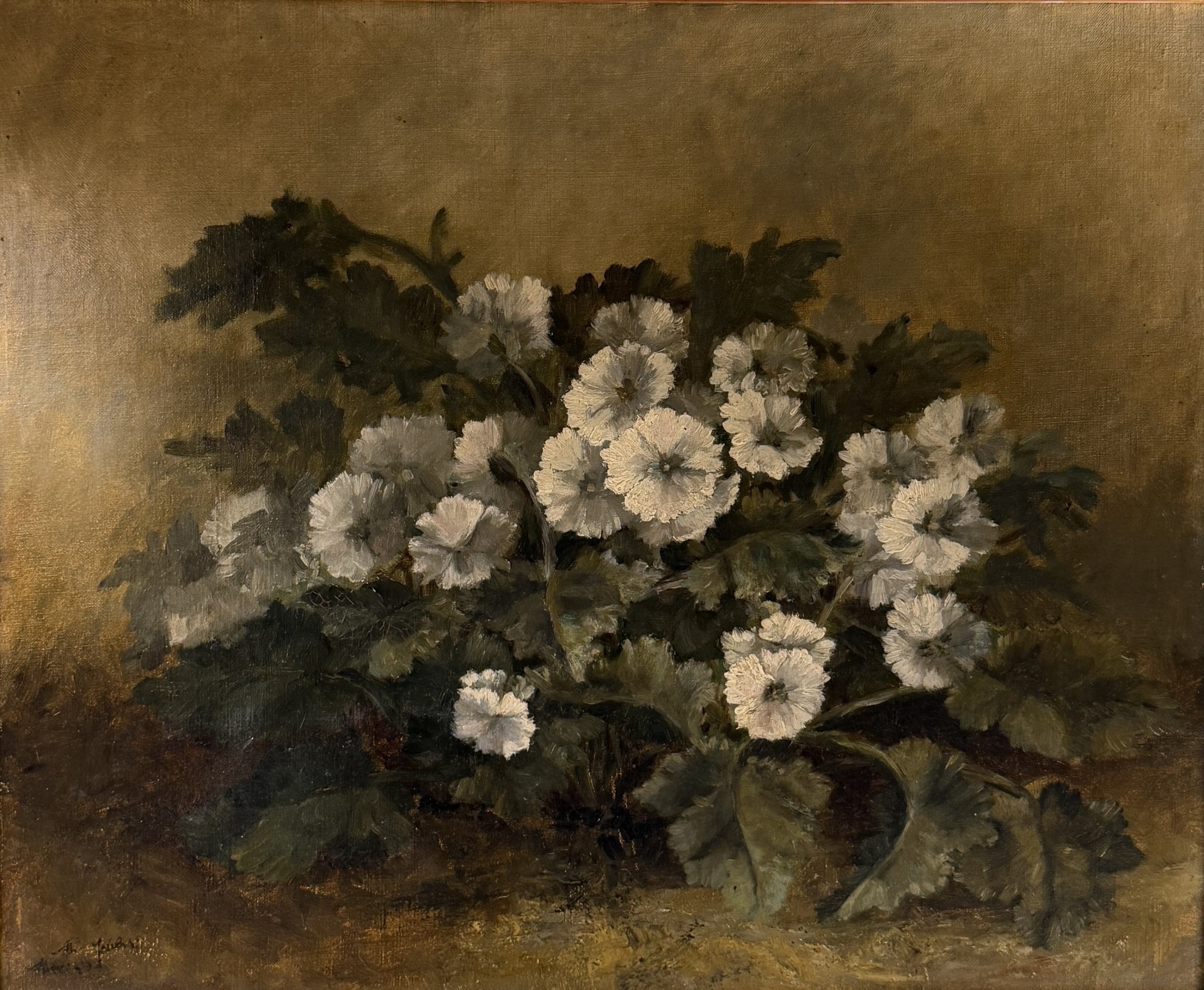 Jetée de fleurs, huile sur toile datée 1873