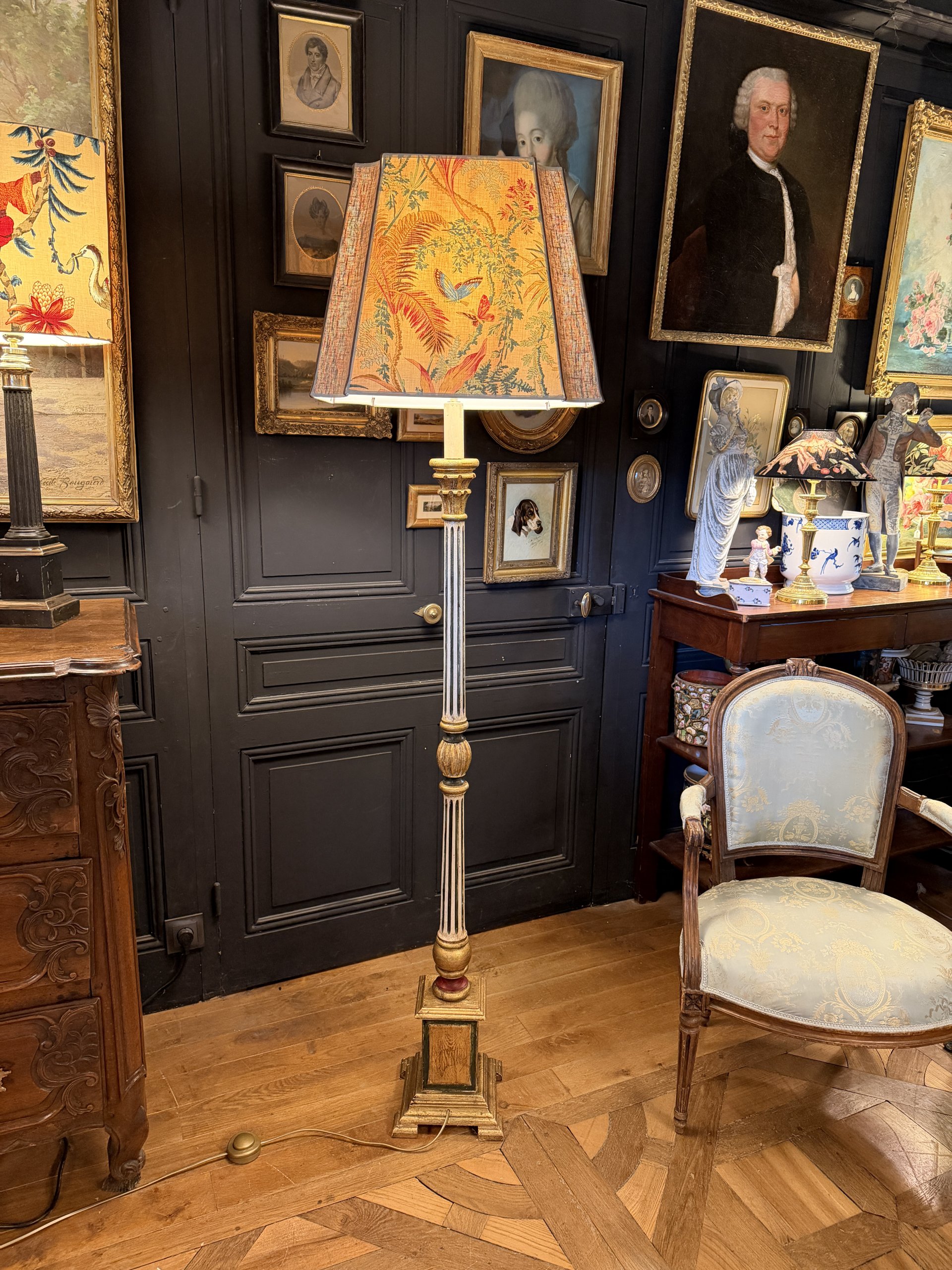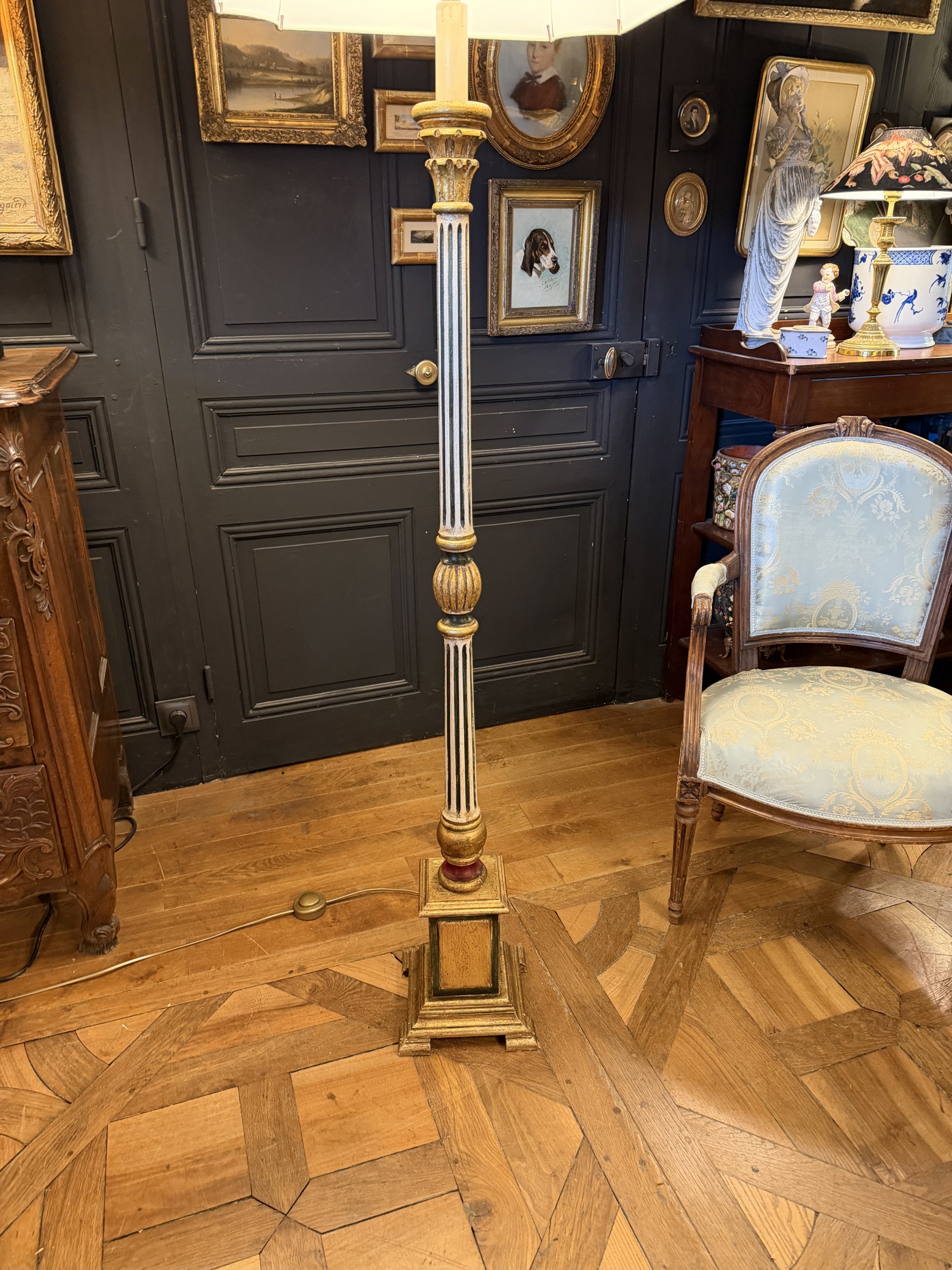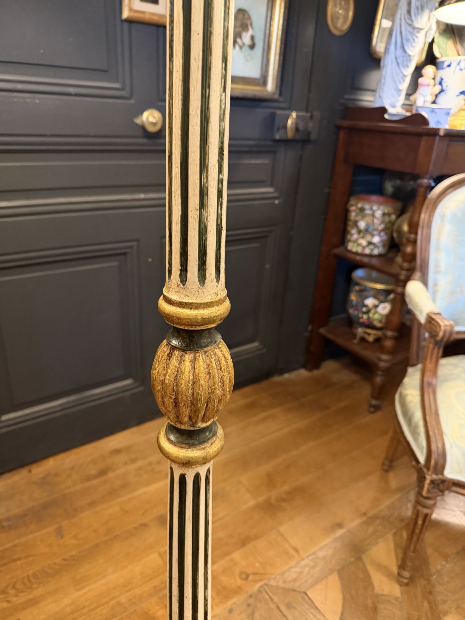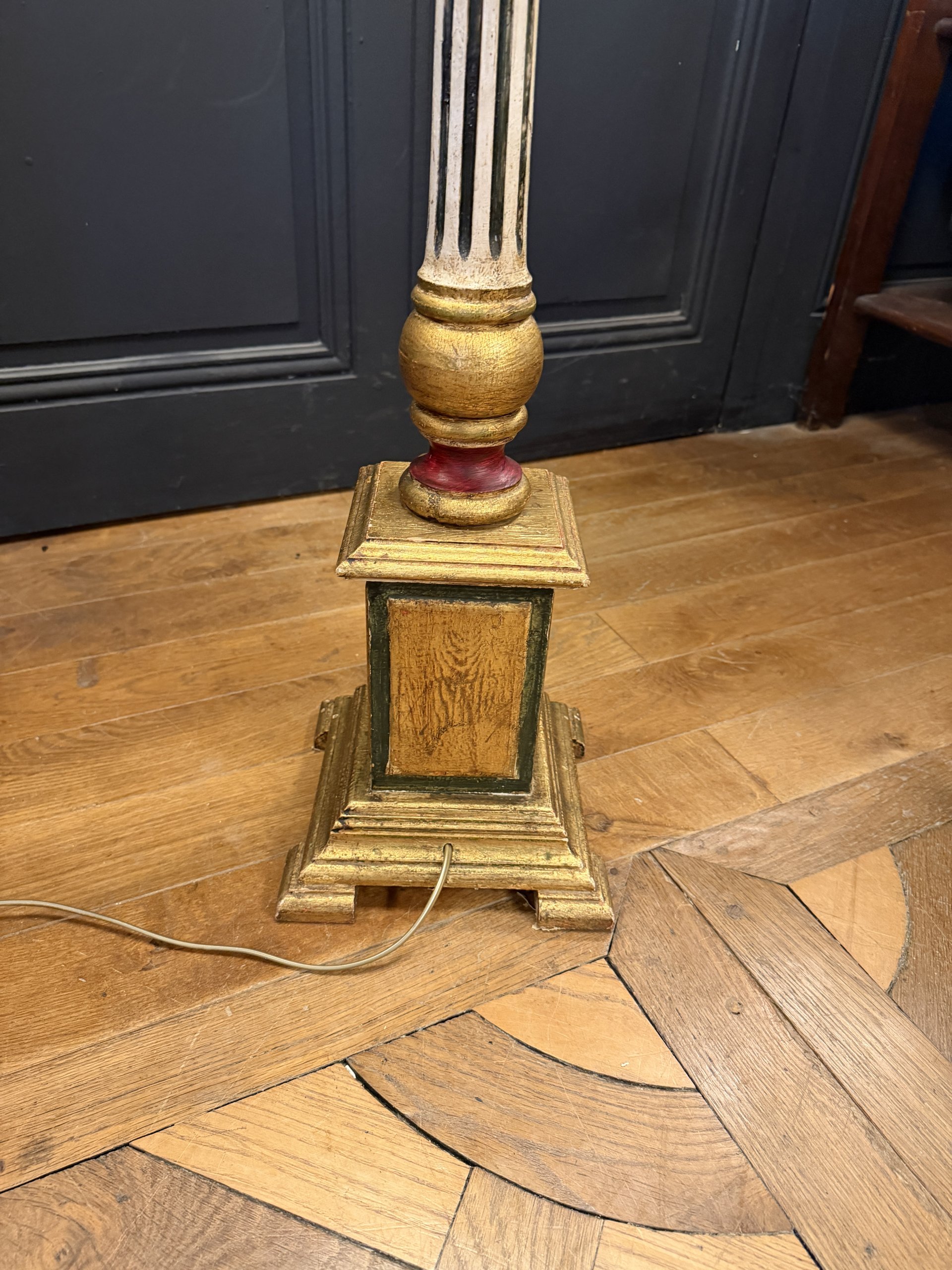 Lampadaire en bois peint polychrome et doré époque XXème.