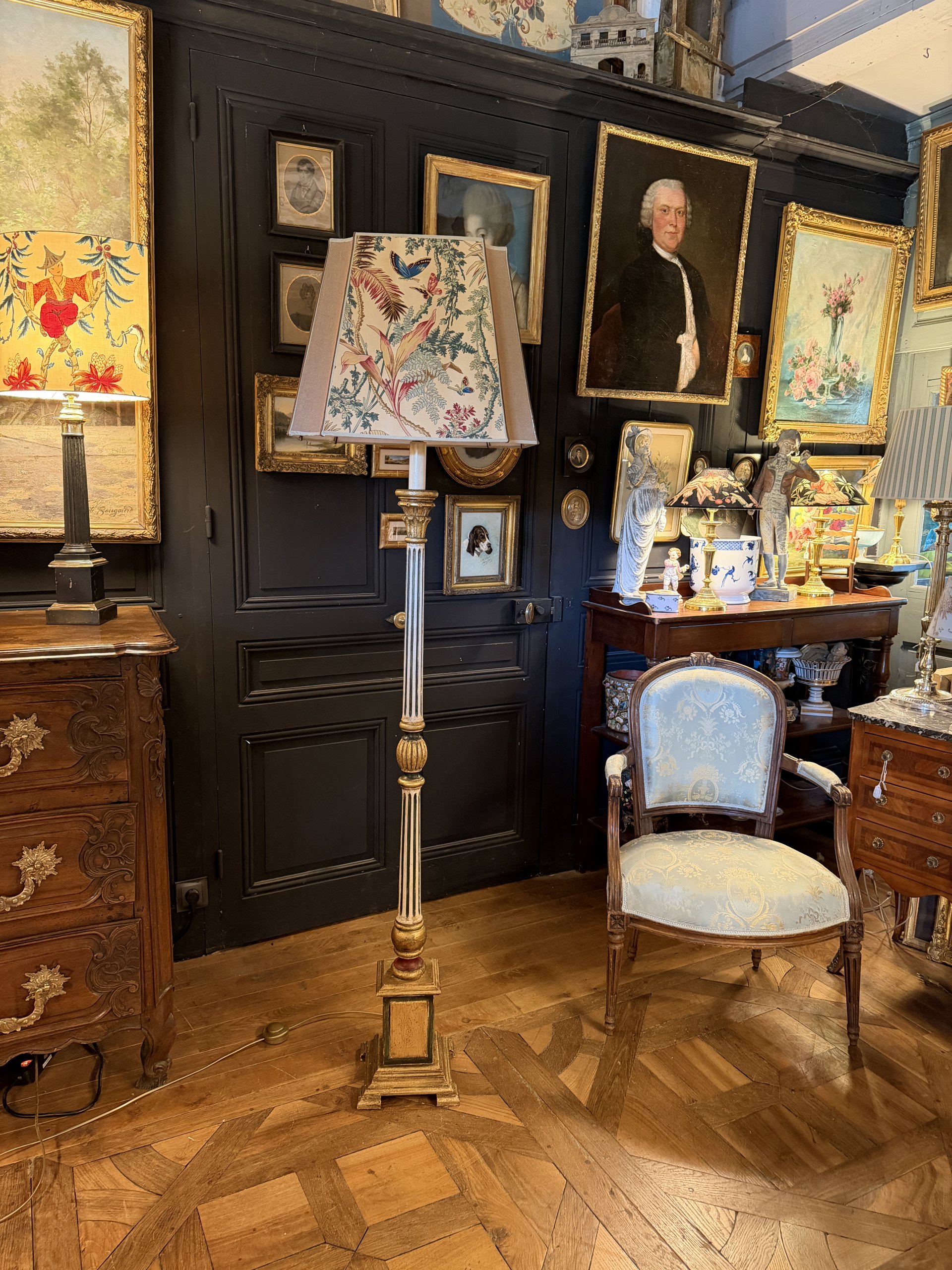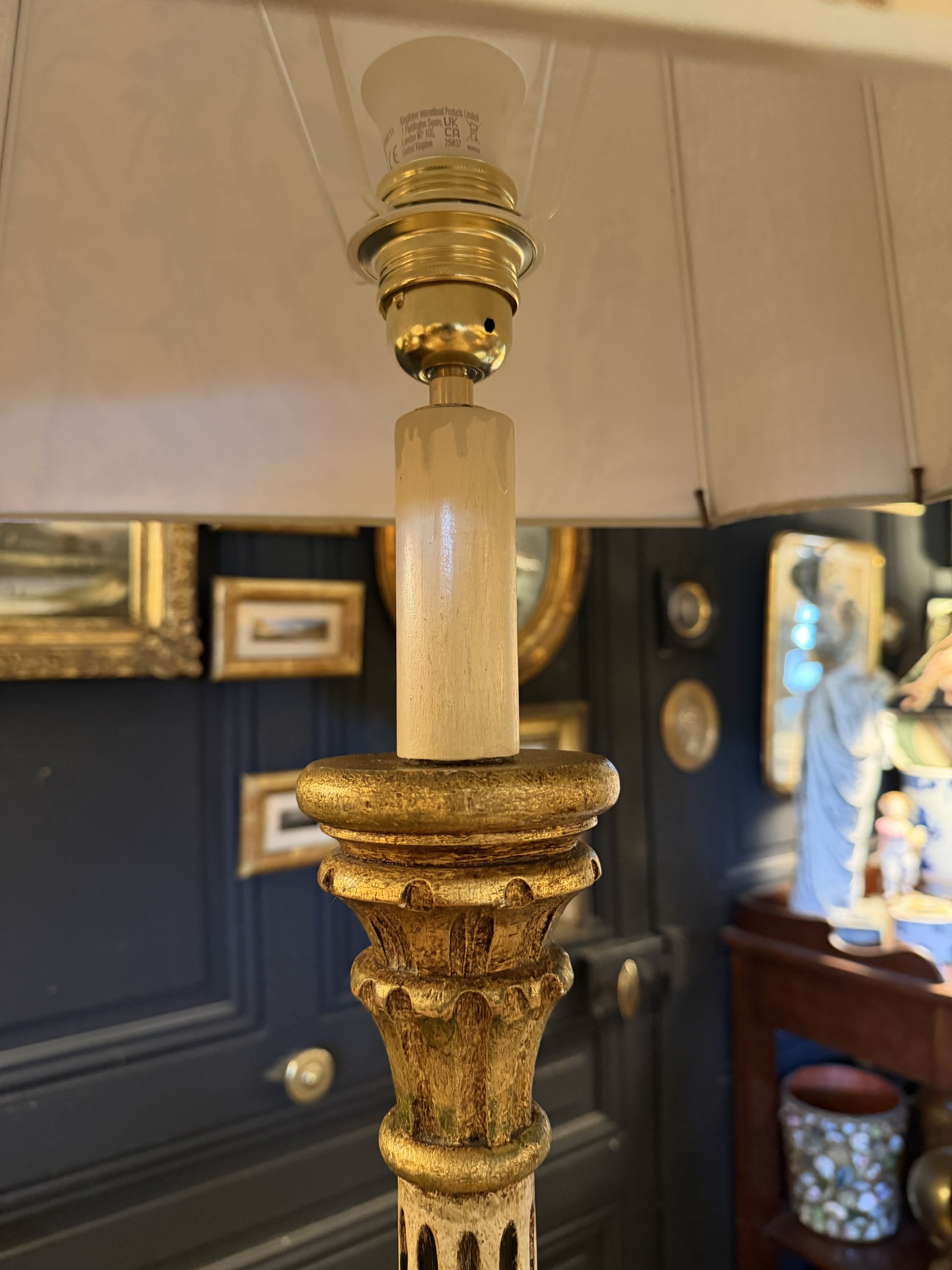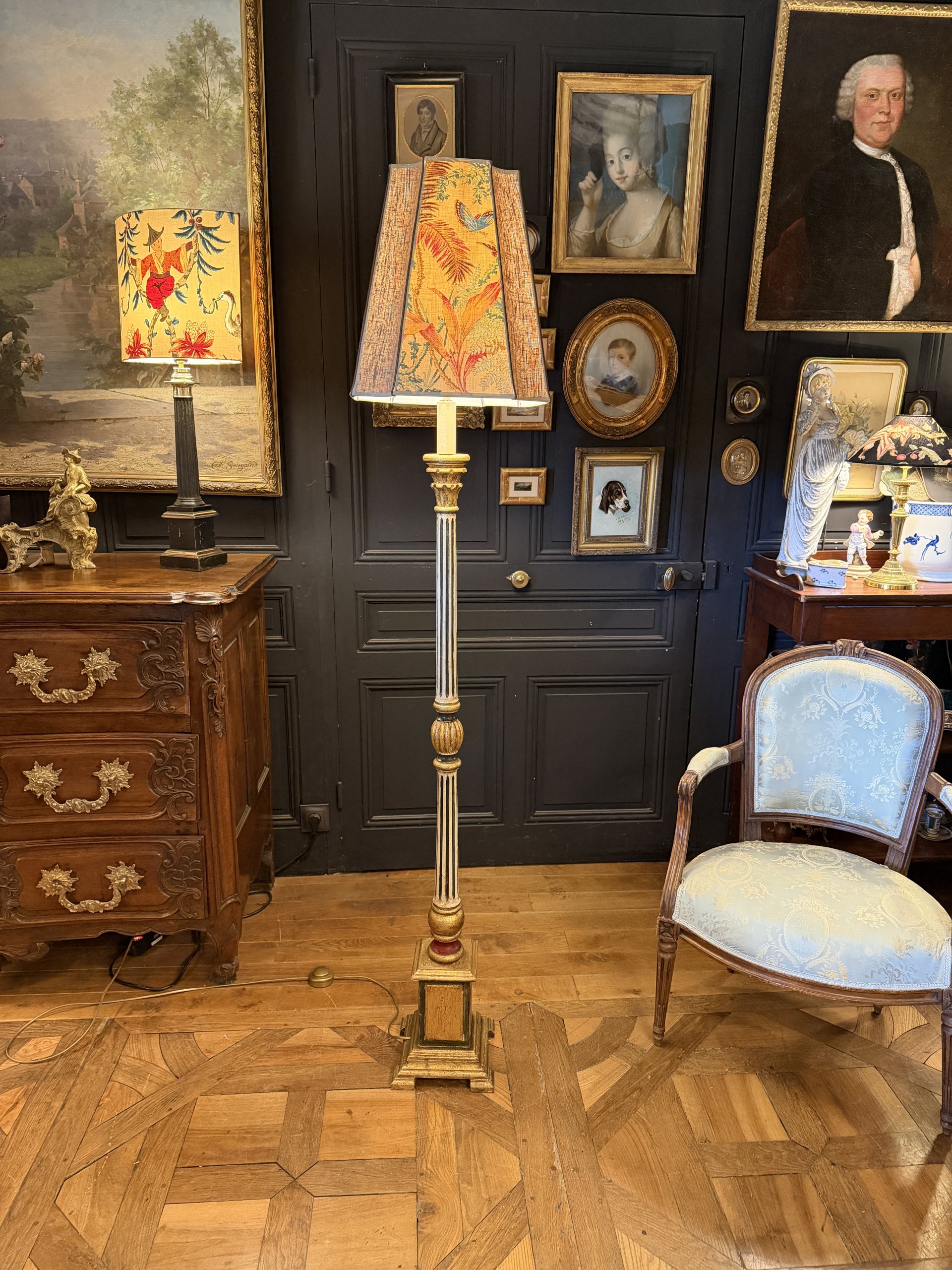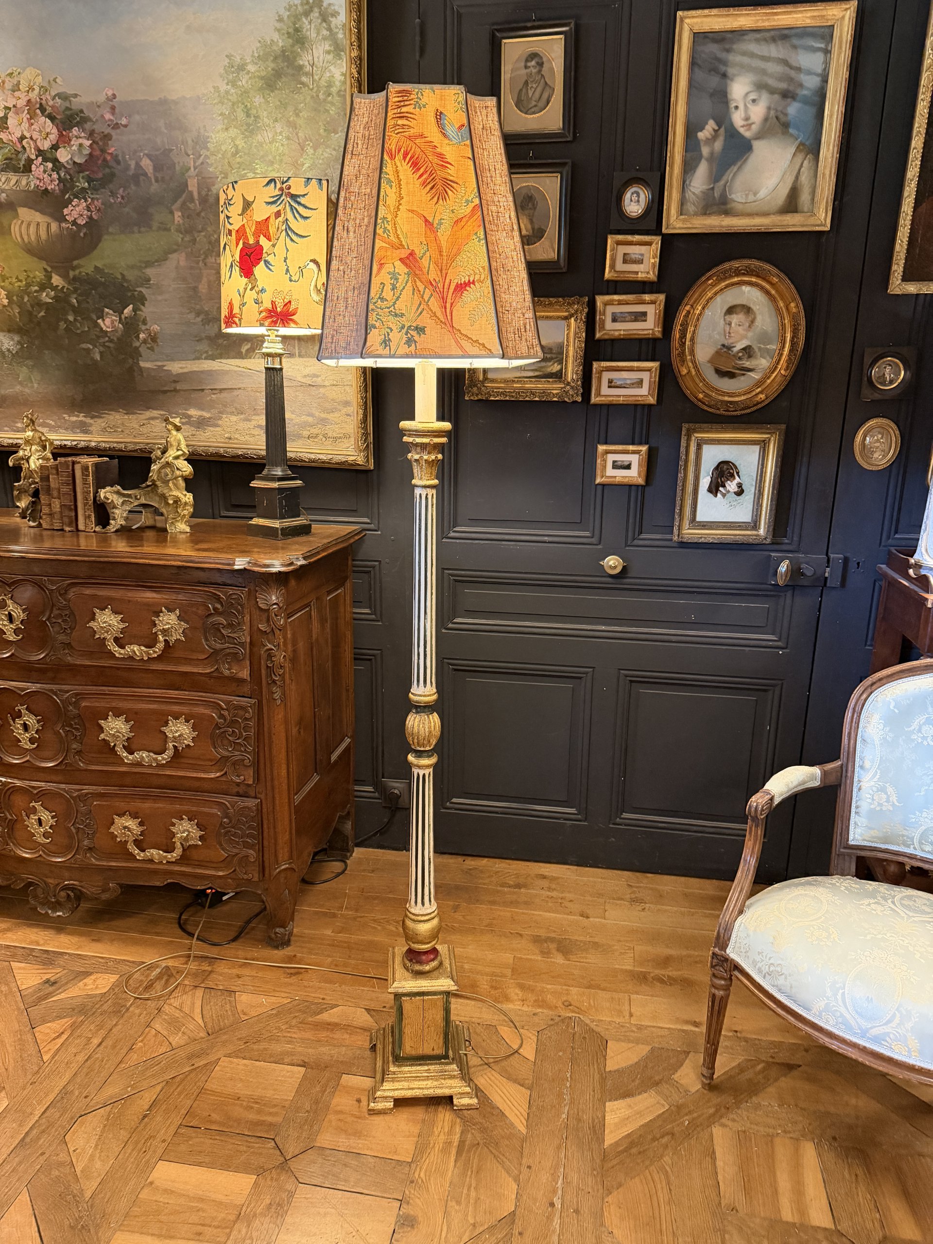 Lampadaire en bois peint polychrome et doré époque XXème.