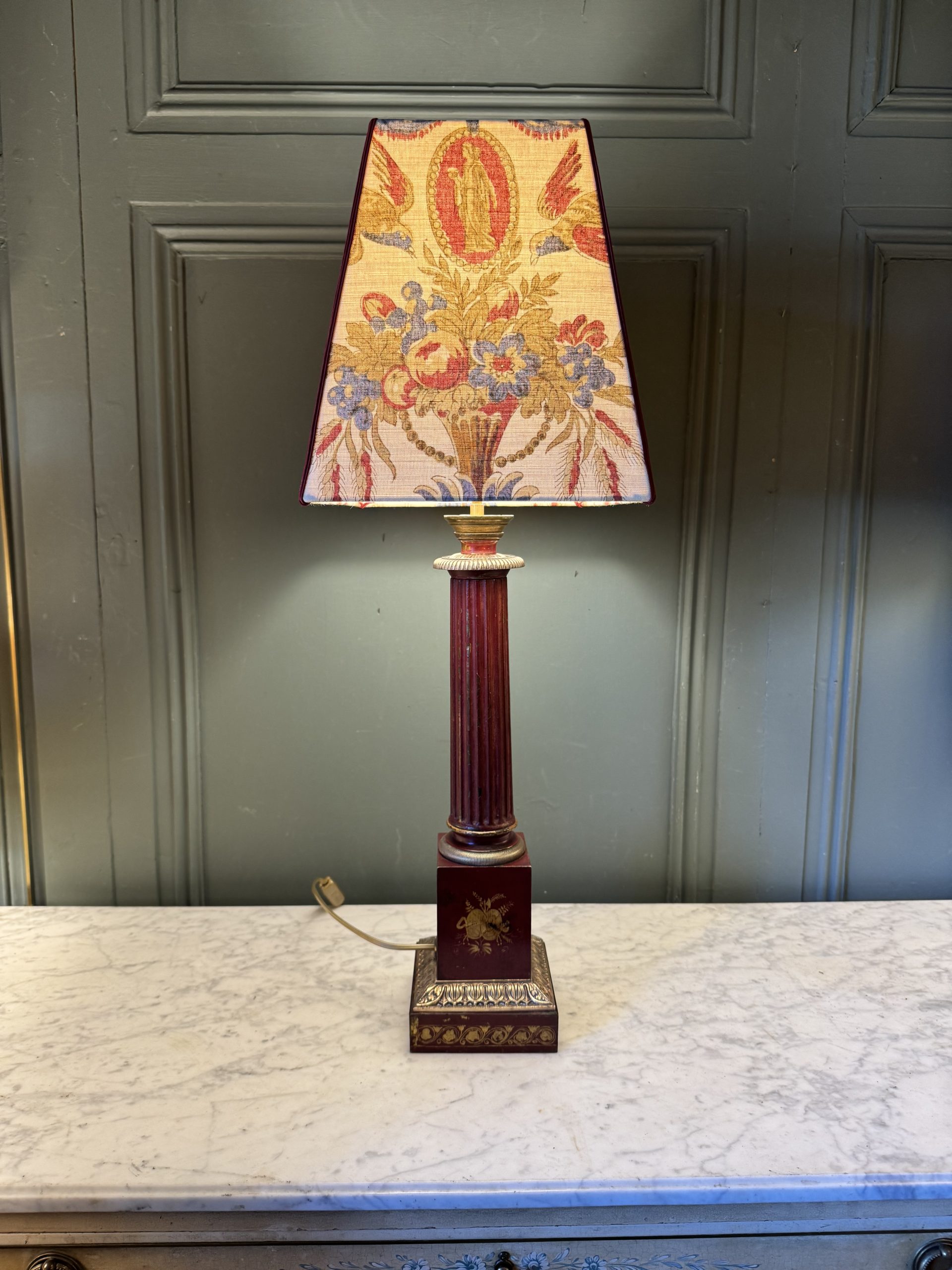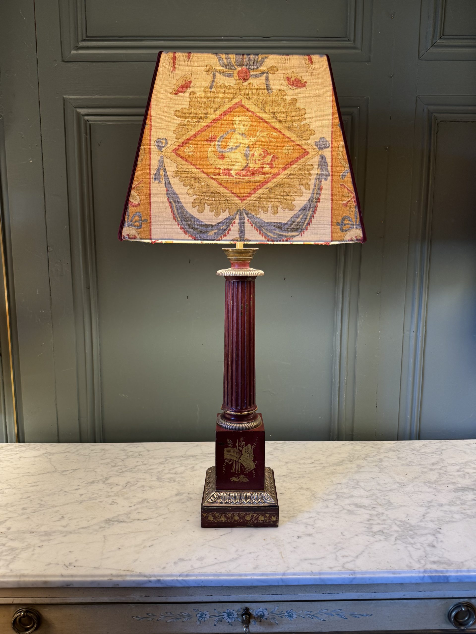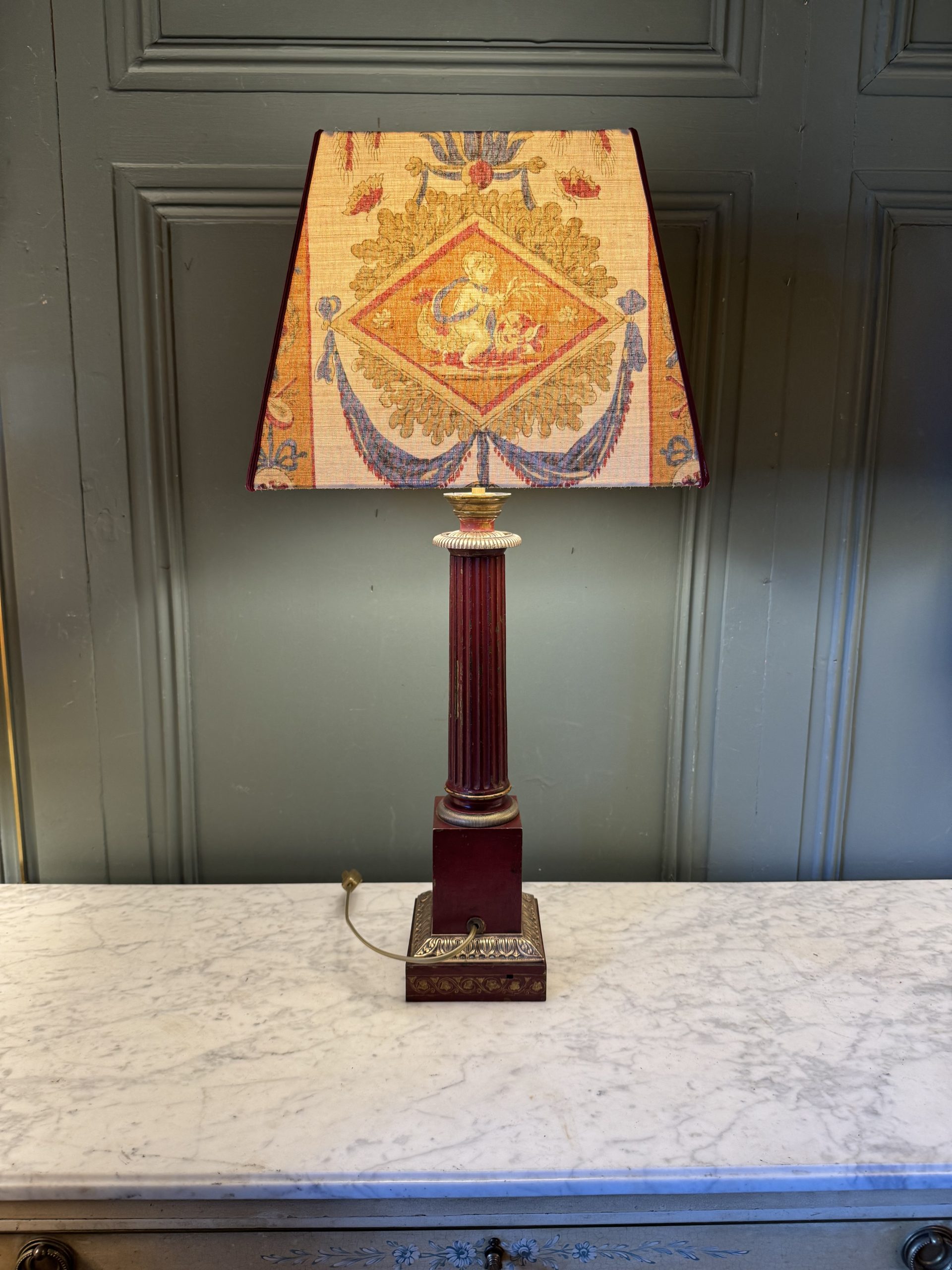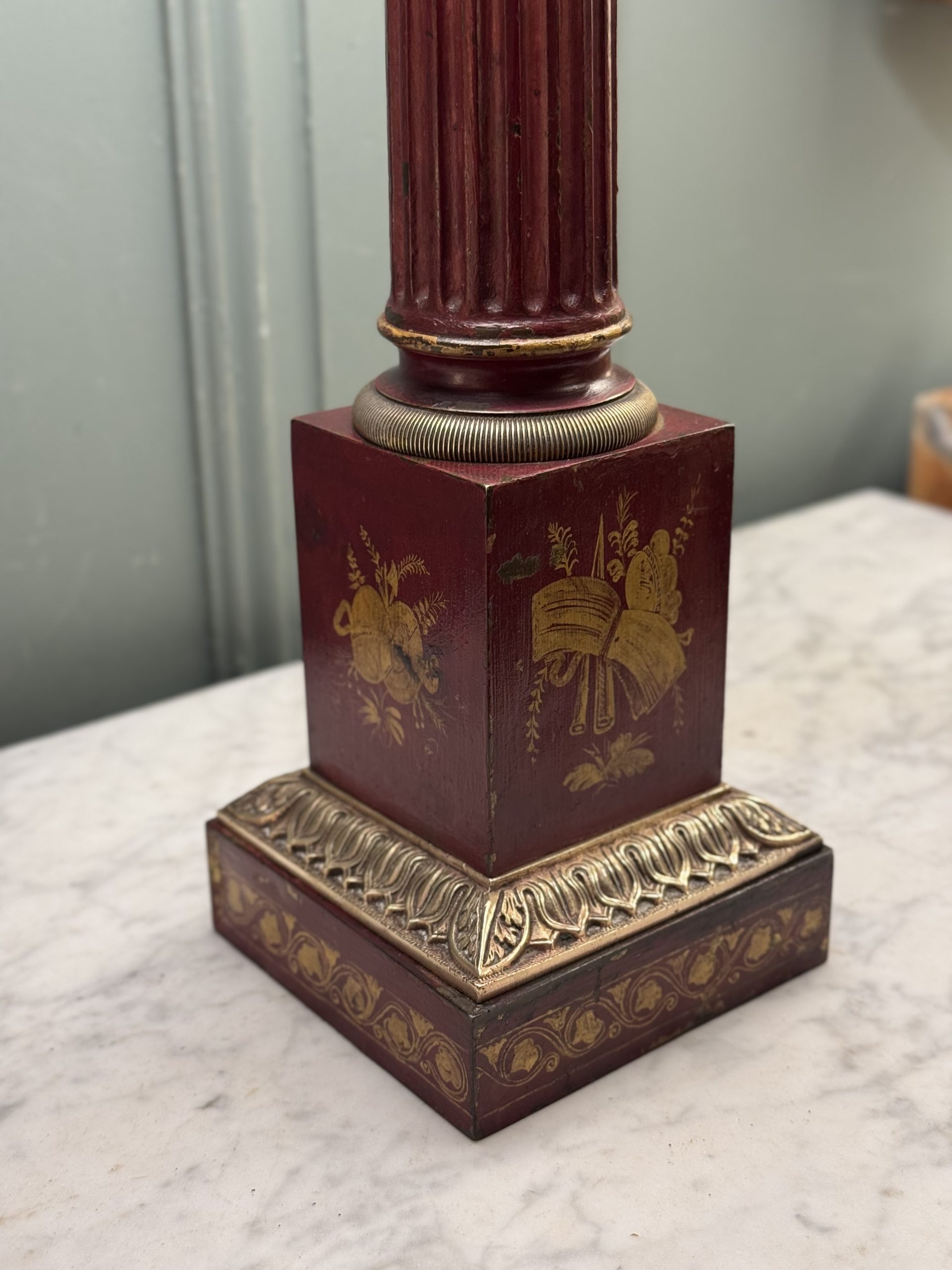 Lampe « Carcel » en tôle peinte formant une colonne d’ordre Dorique stylisée, époque Restauration première partie du XIXème.