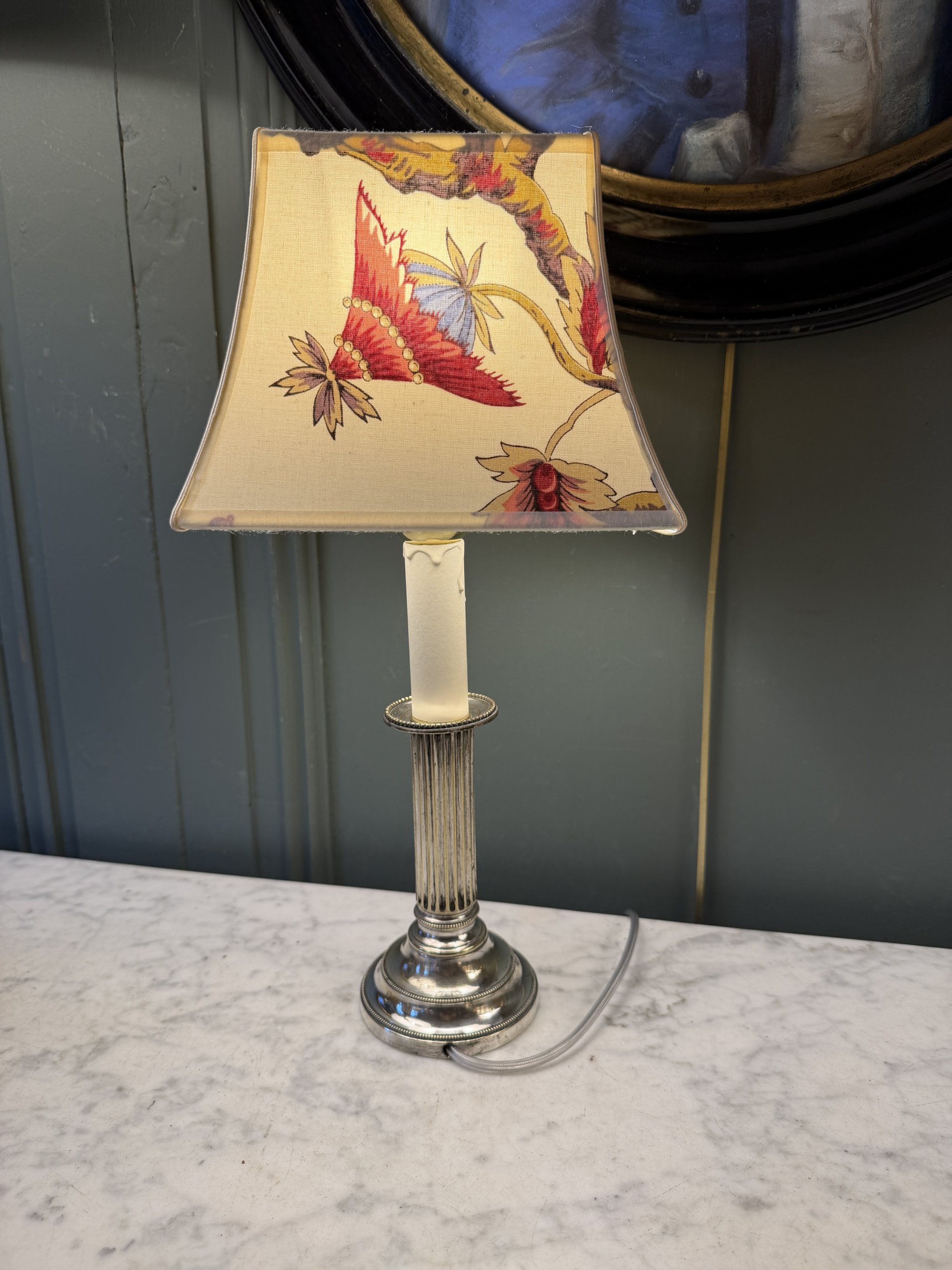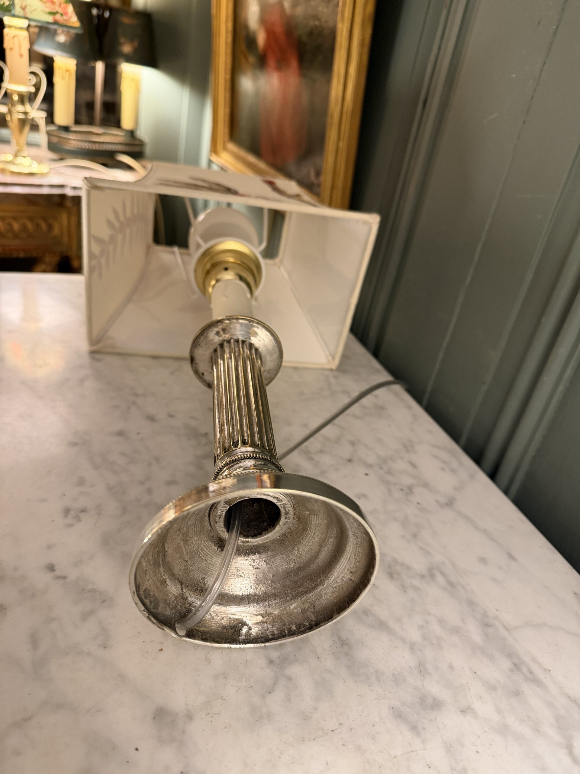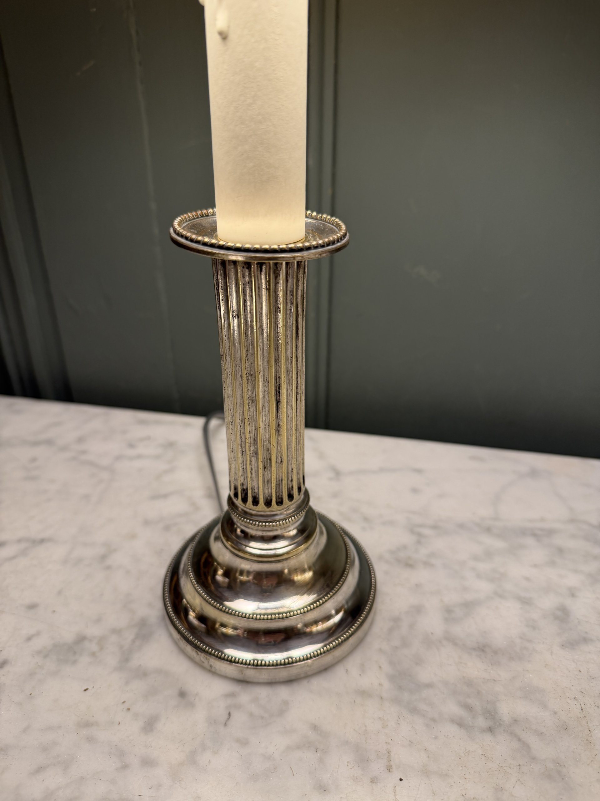 Bougeoir en bronze argenté monté en lampe de style Louis XVI époque XIXème.