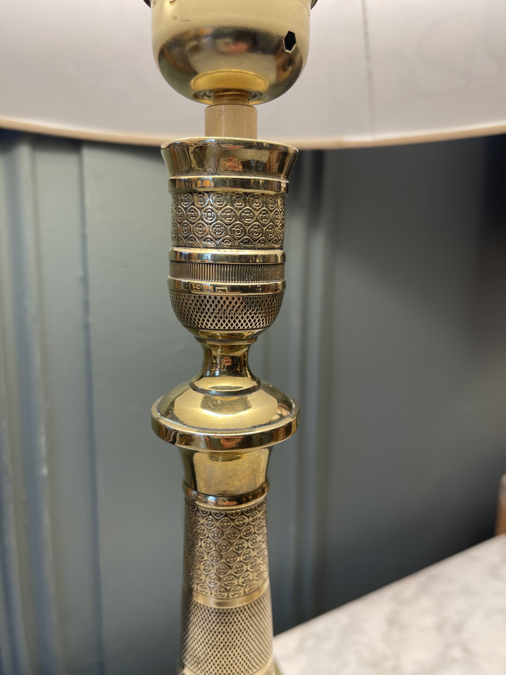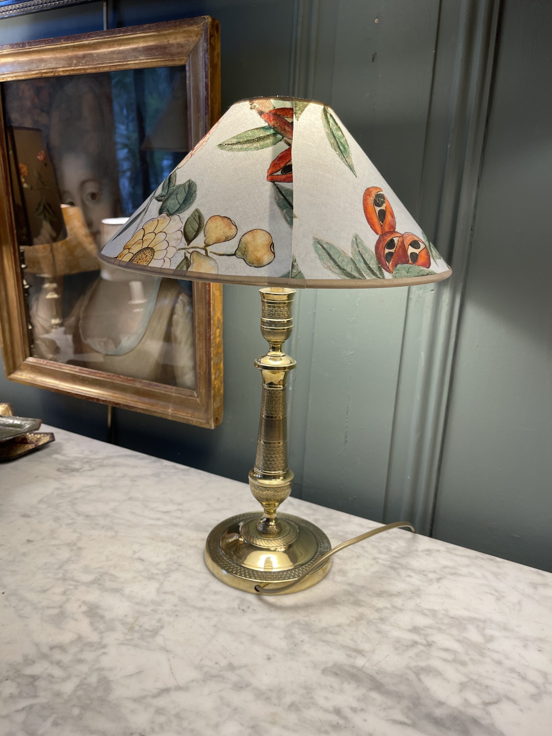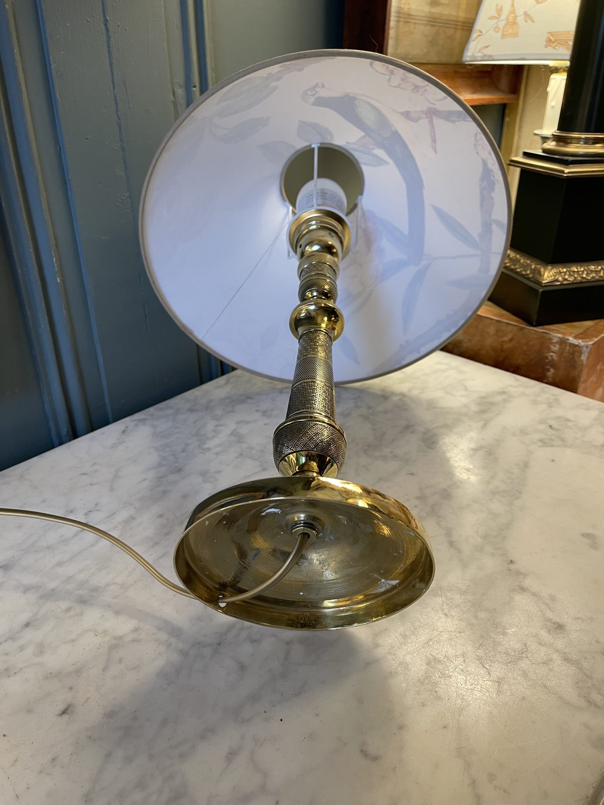 Bougeoir XIXème époque restauration en bronze poli (couleur doré) finement ciselé et guilloché monté en lampe.