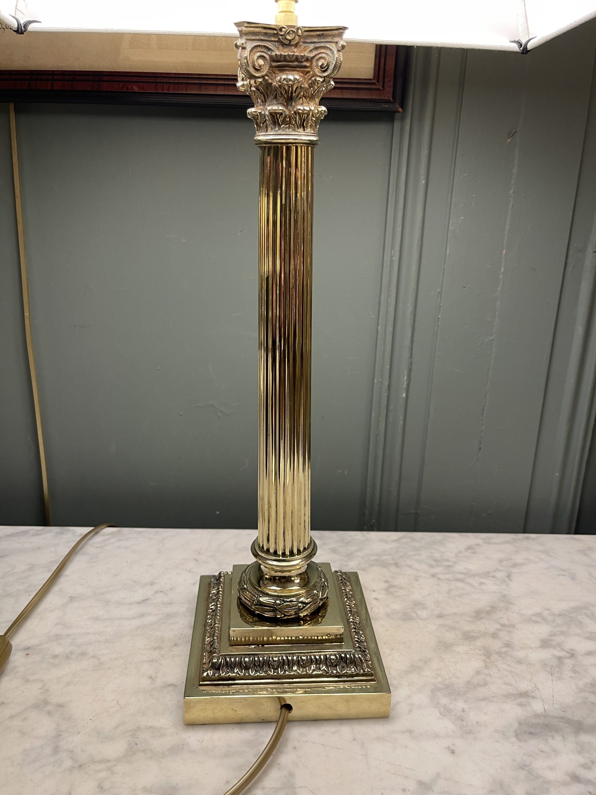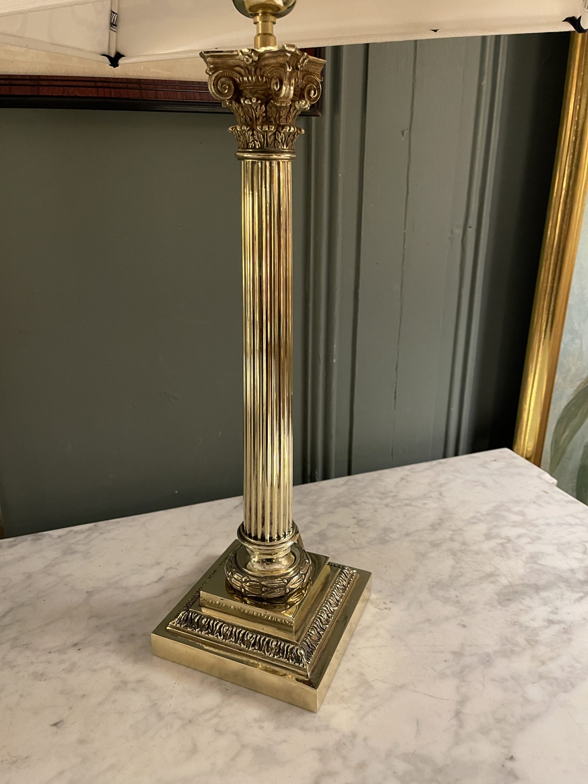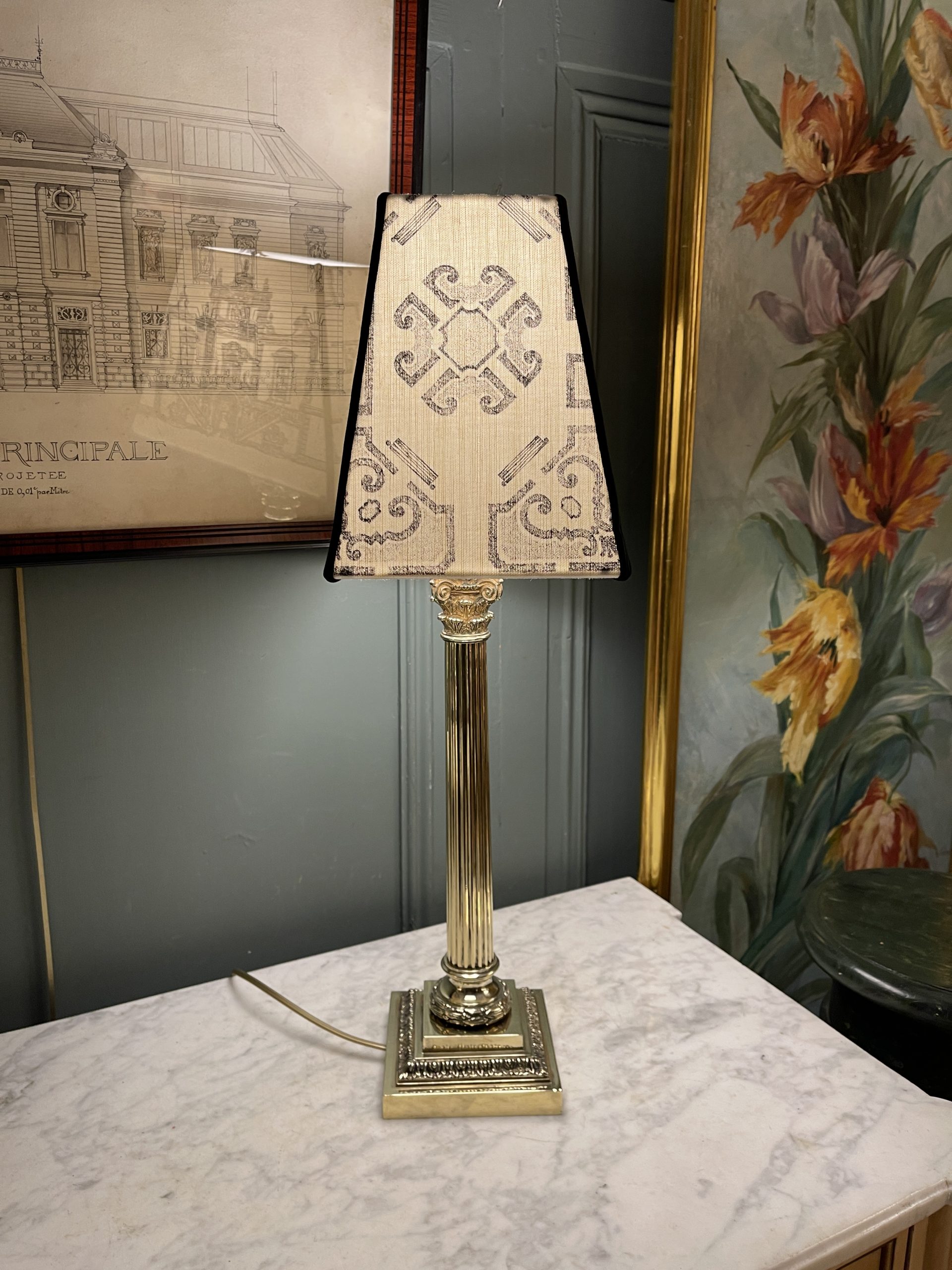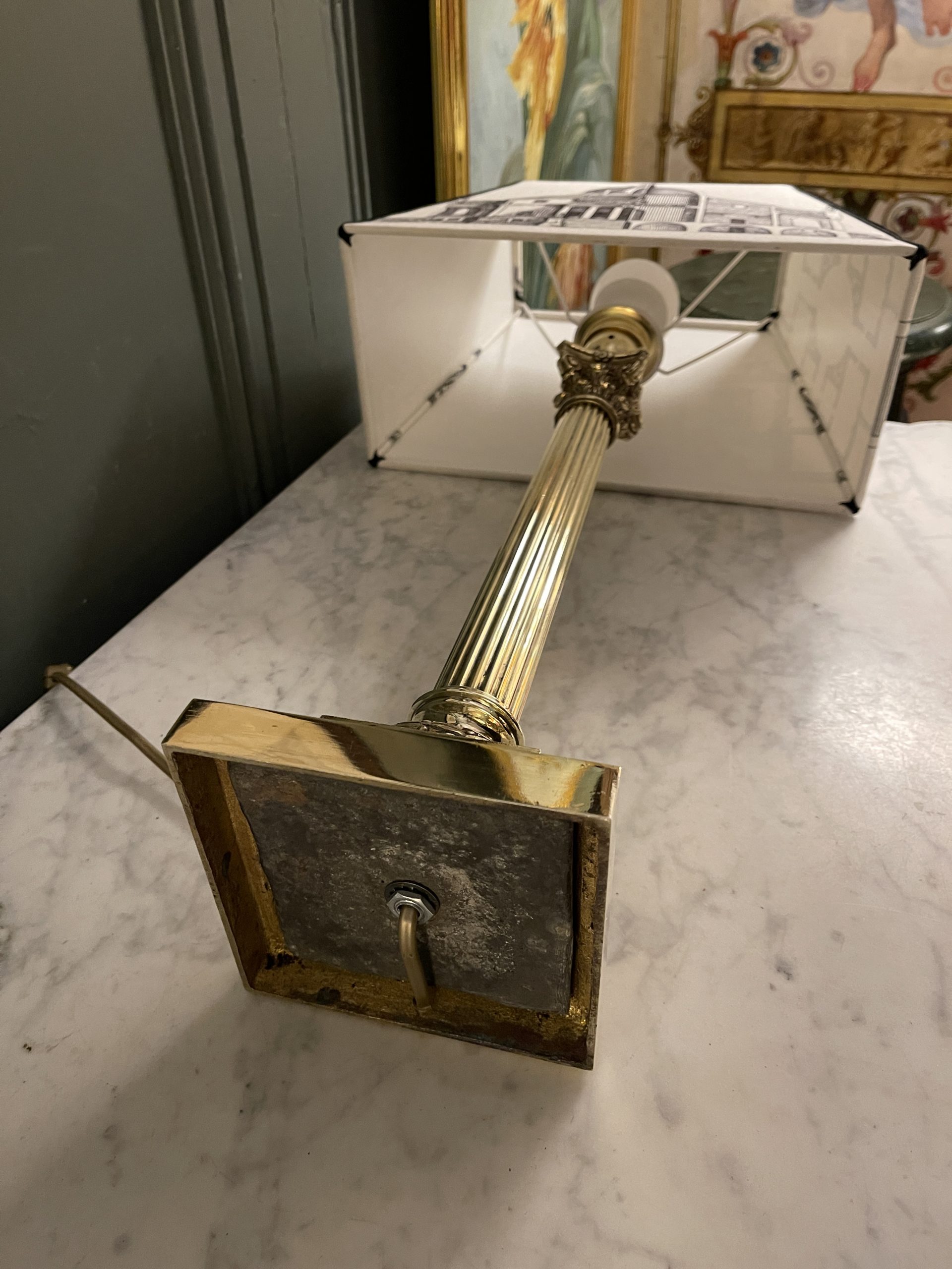 Ancienne lampe à pétrole en bronze et laiton doré formant une colonne d’ordre Corinthien stylisée époque XIXème