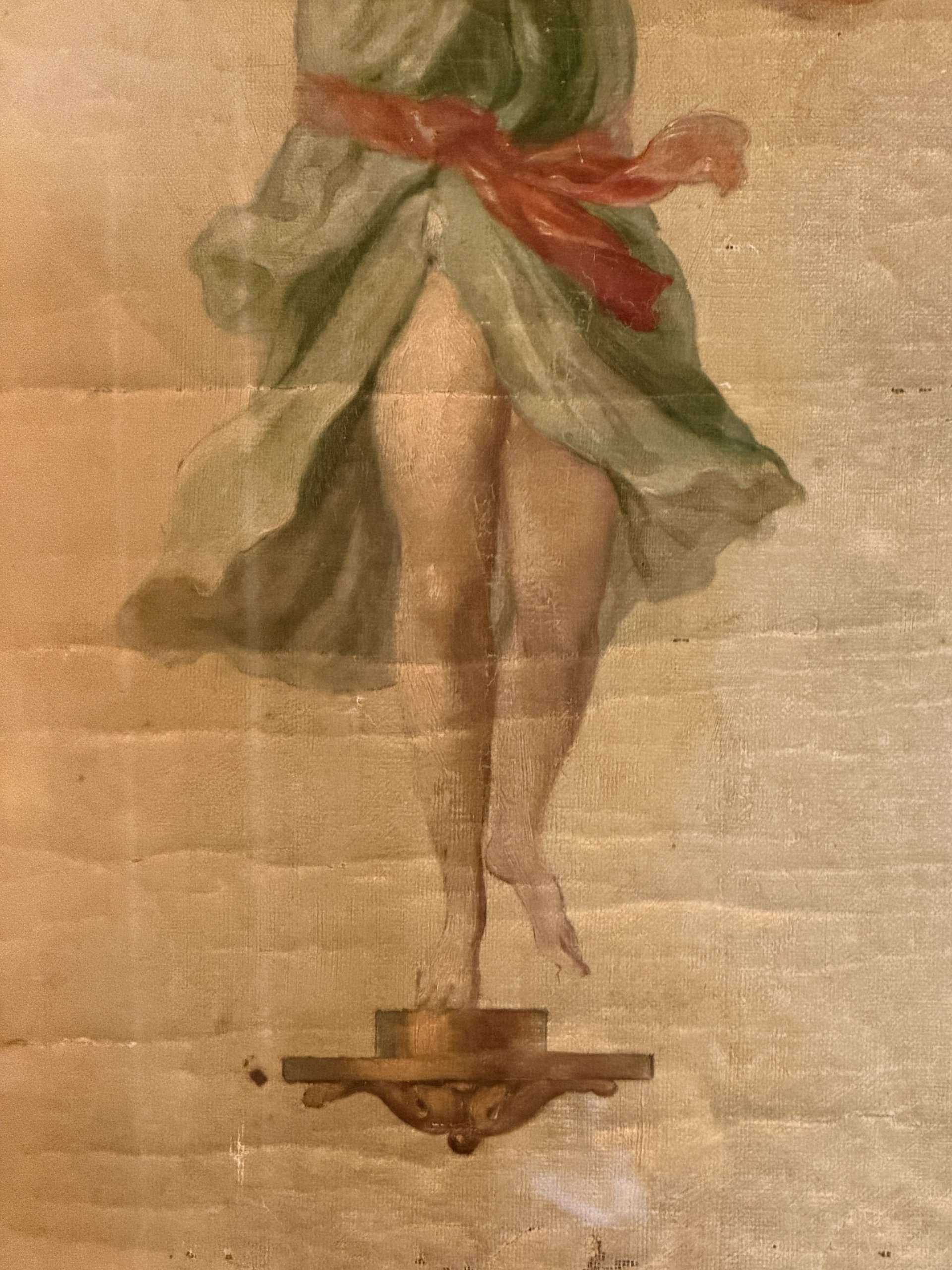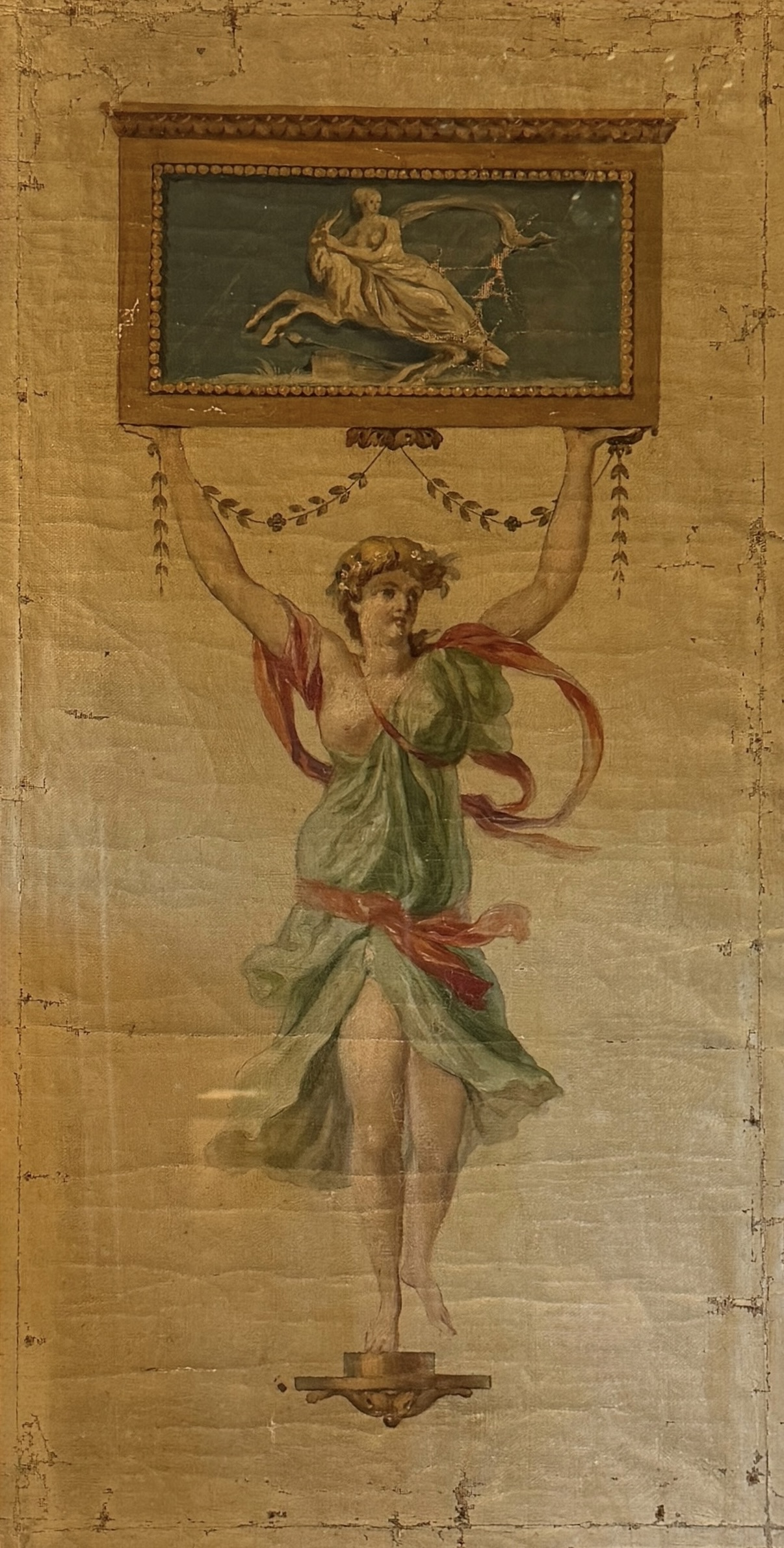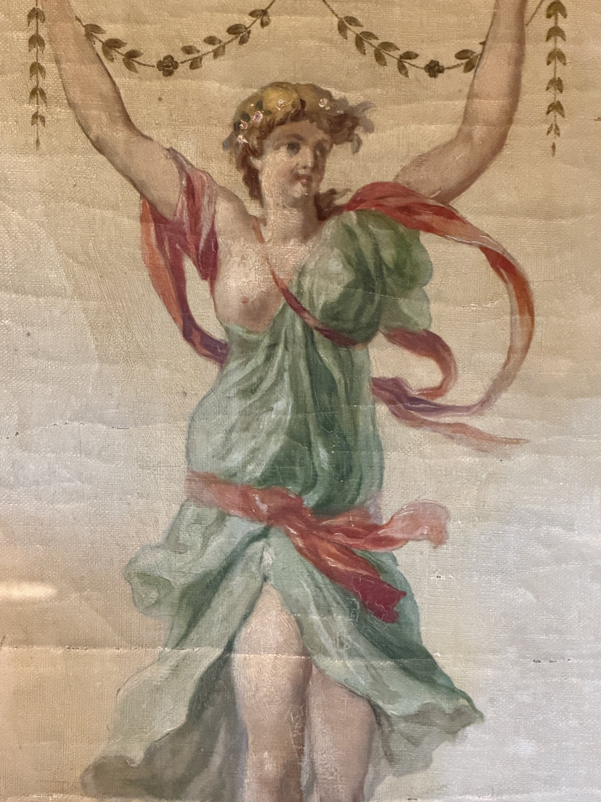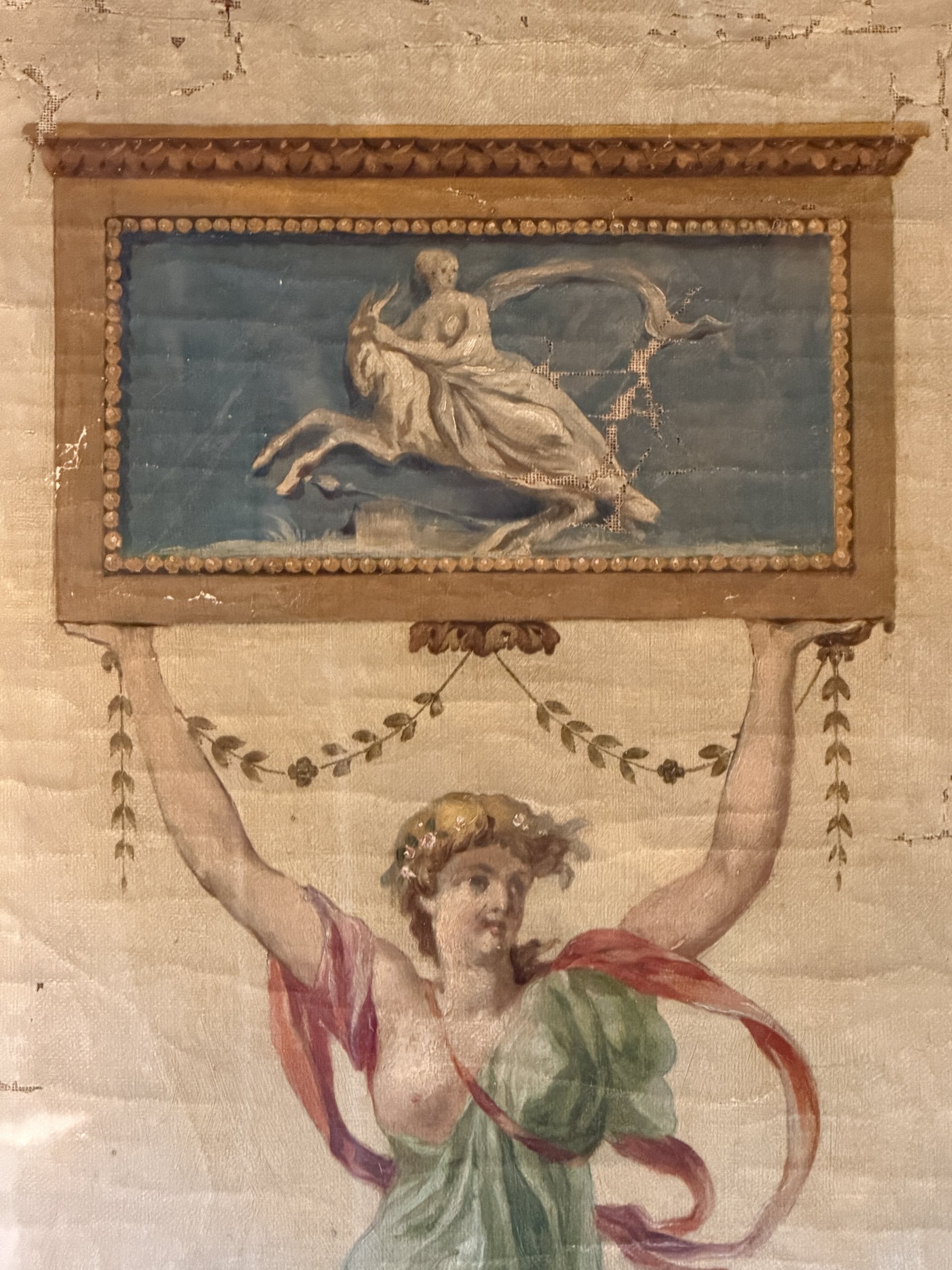 L’enlévement d’Europe, allégorie dans le goût des boiseries du boudoir d’argent de Marie-Antoinette au chateau de Fontainebleau. Ces peintures des boiseries sont elles mêmes inspirées des fresques pompéienne.