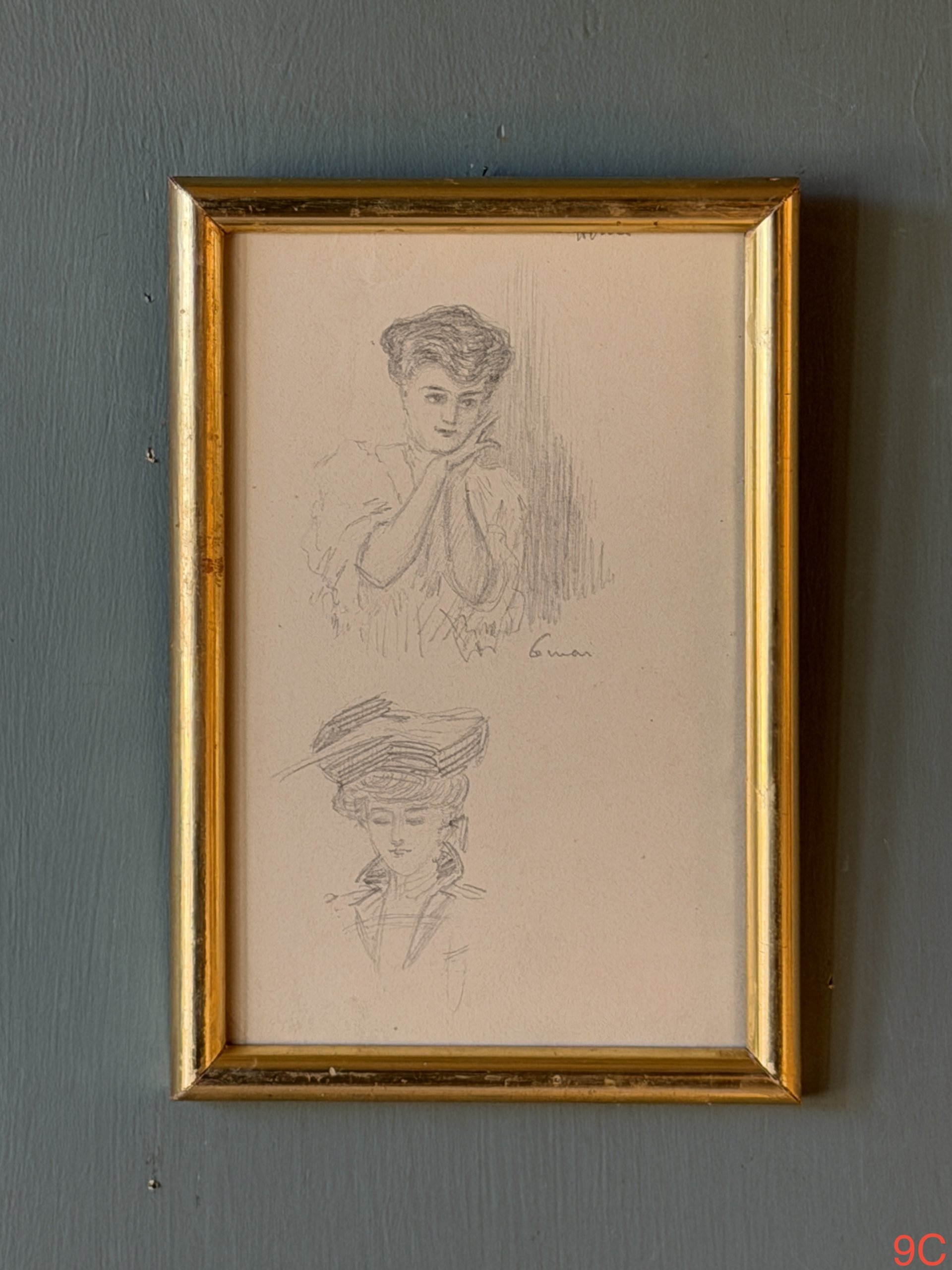 Dessin (mine de plomb / sanguine / aquarelle) sur papier époque fin XIXéme debut XXème.