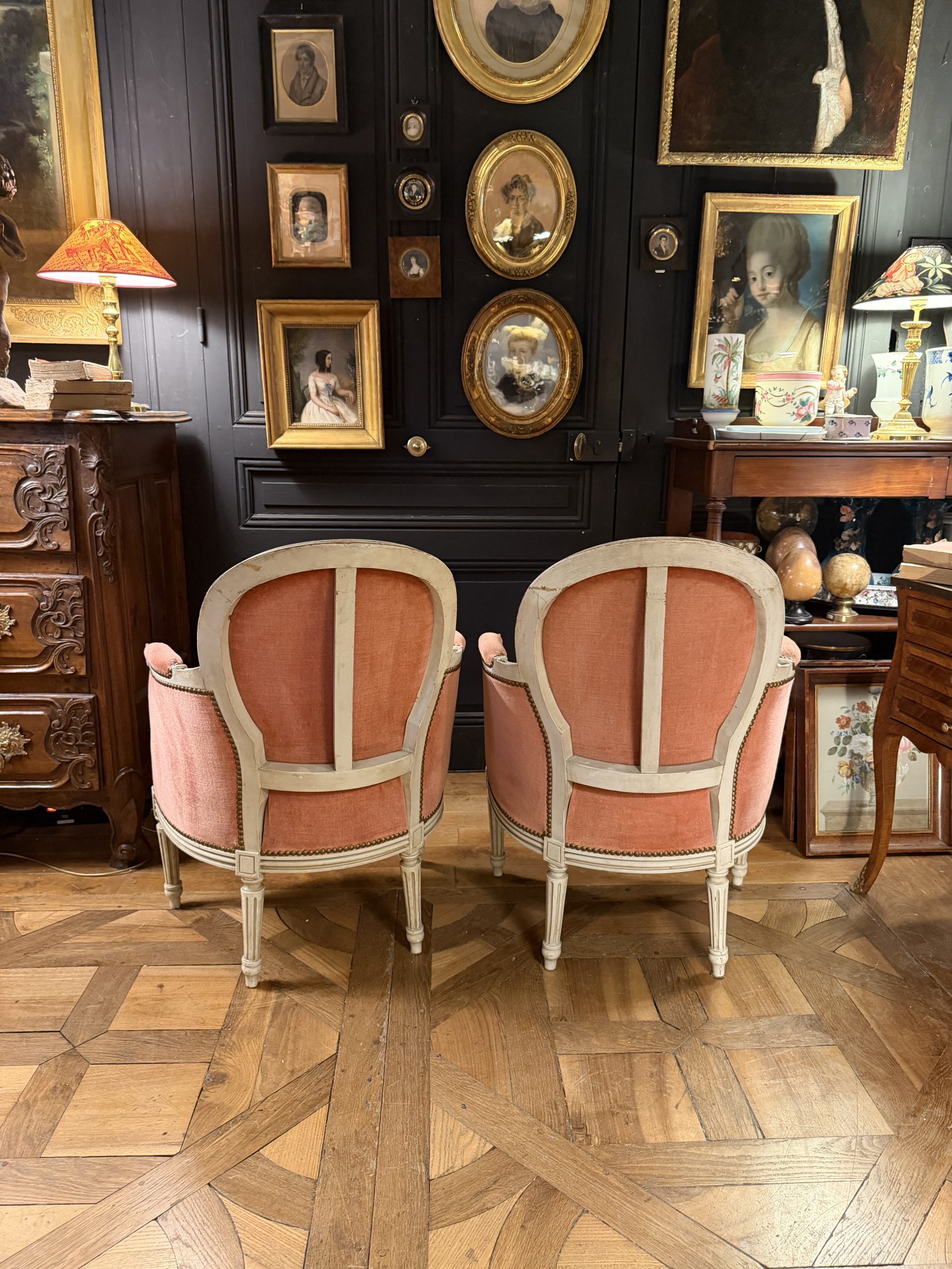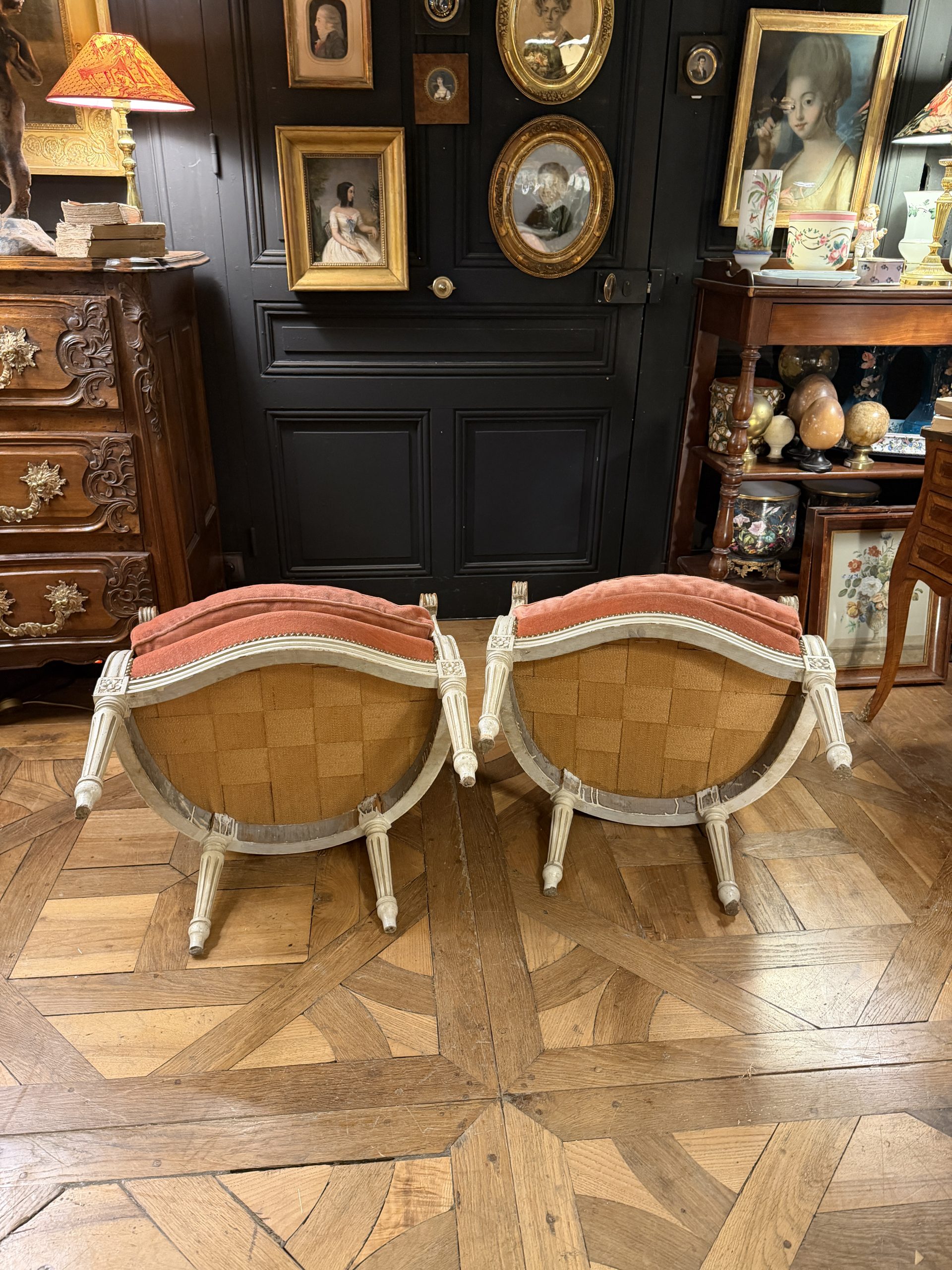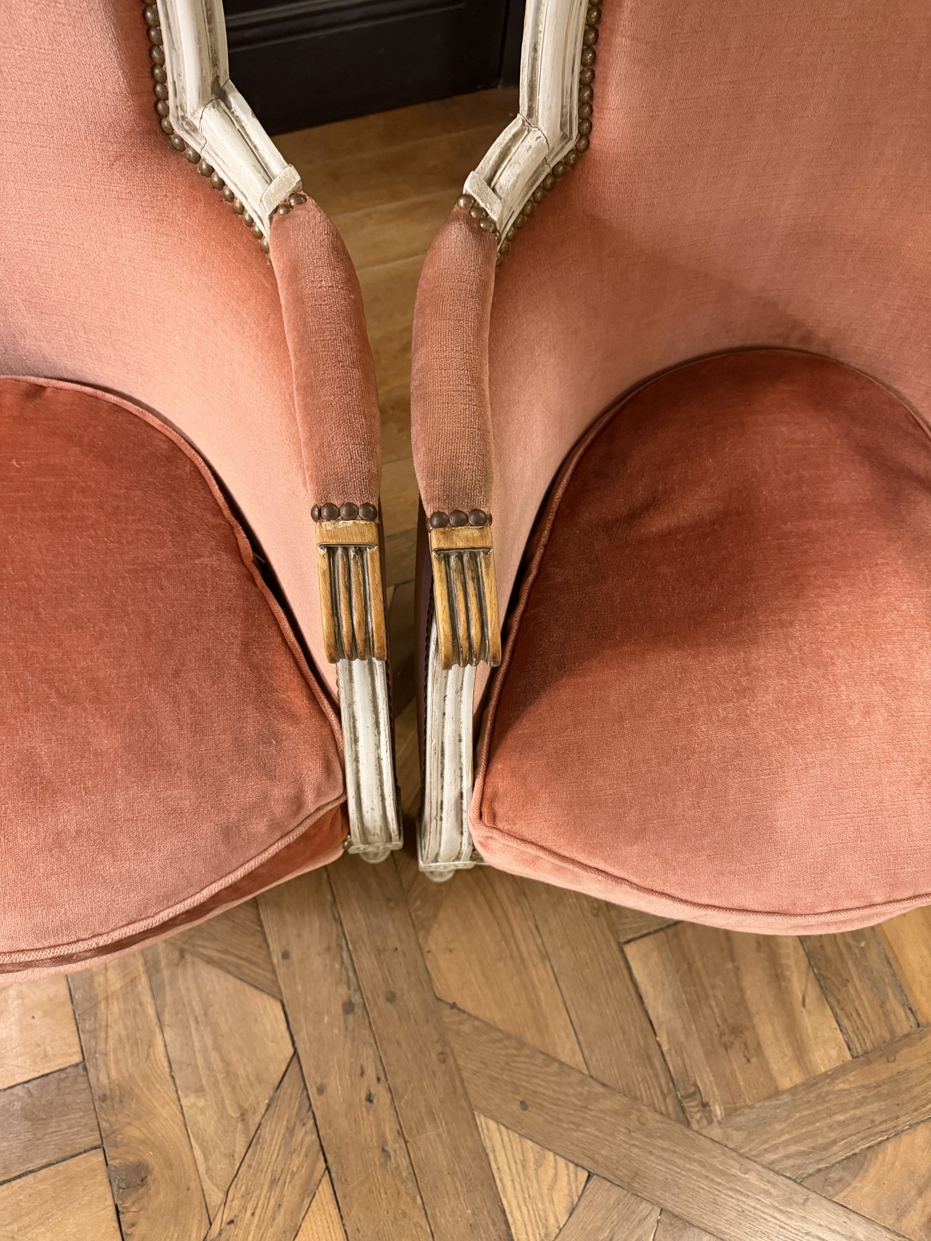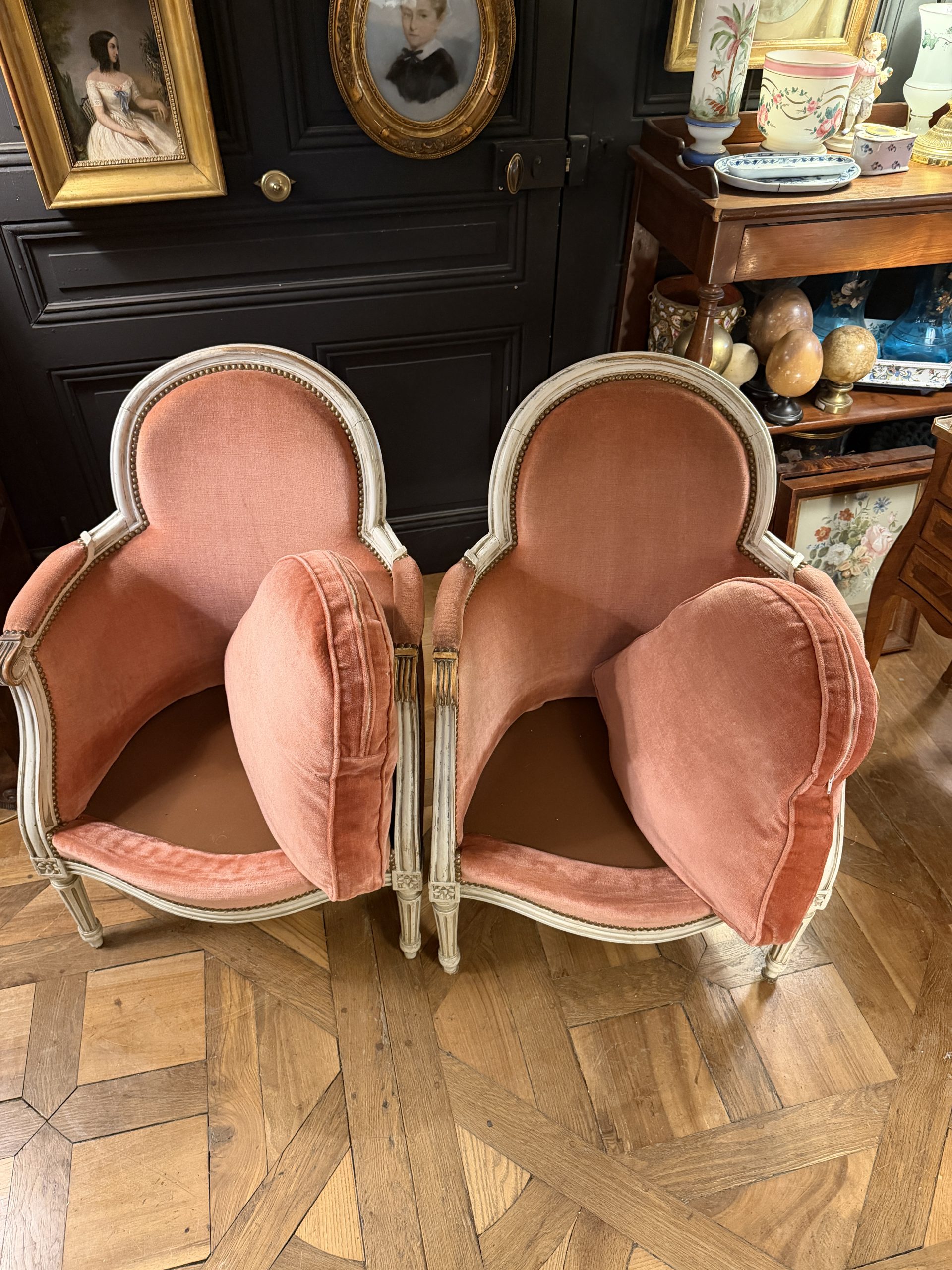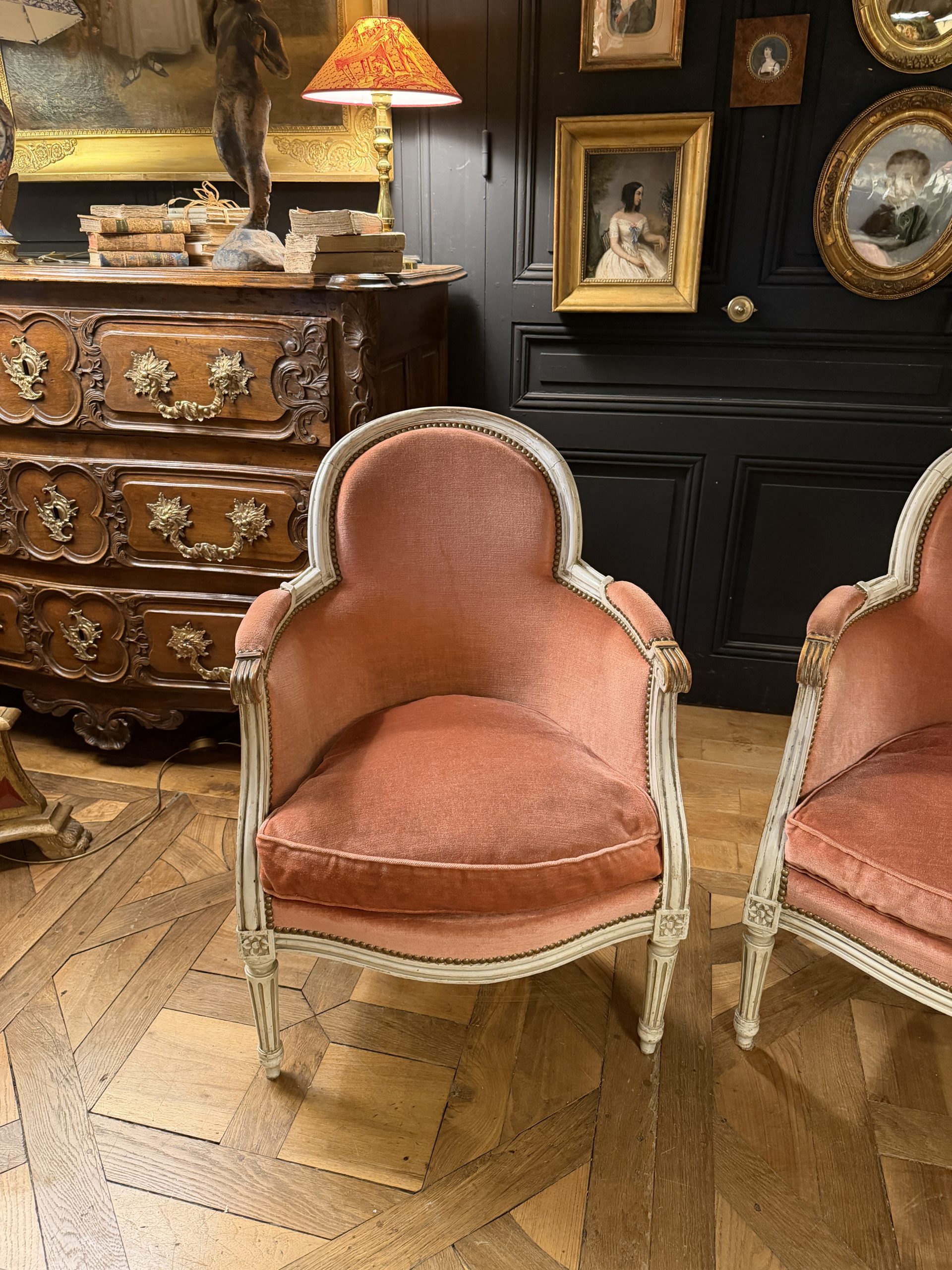 Paire de bergères en bois peint de style Louis XVI époque XXème