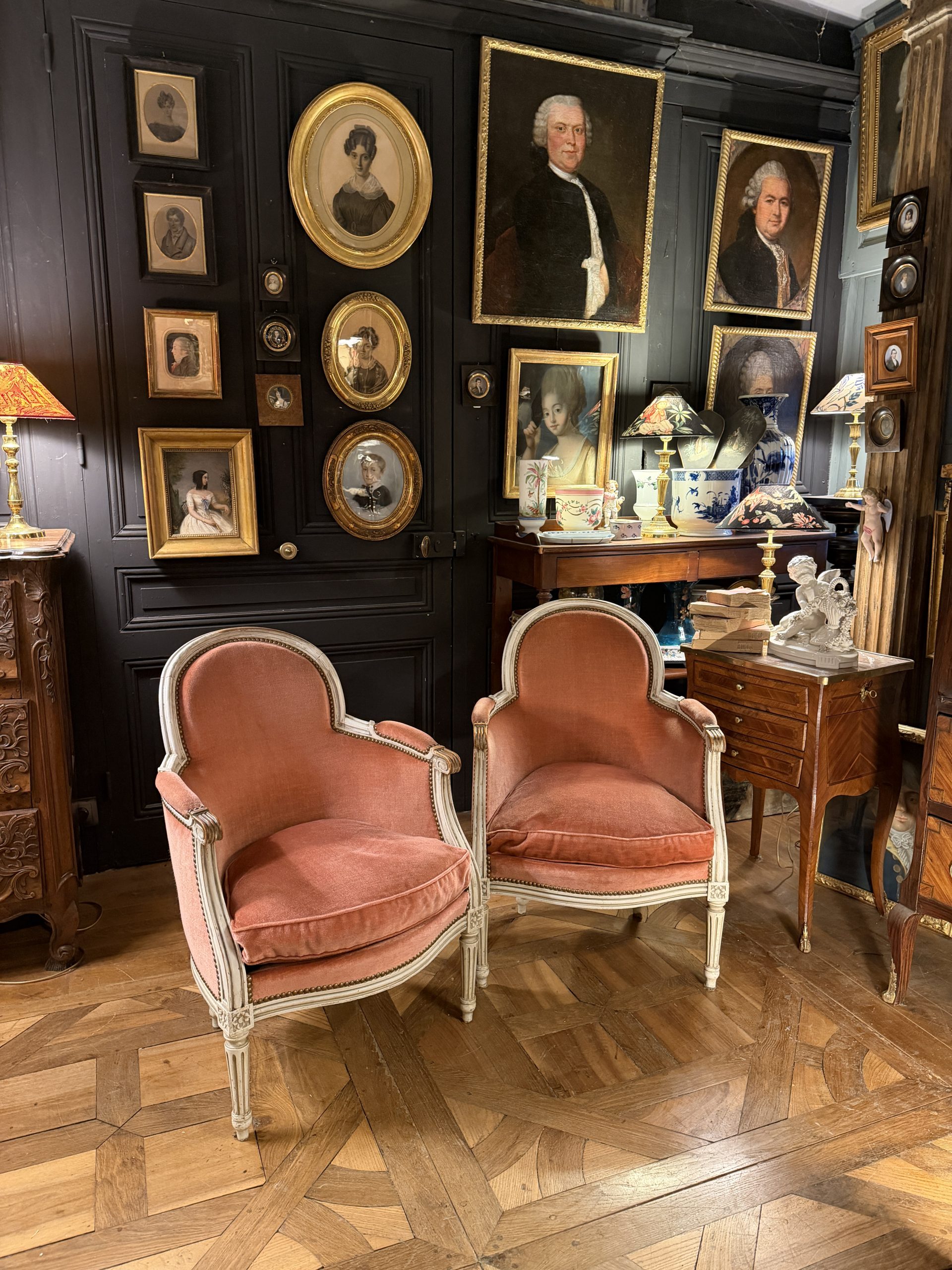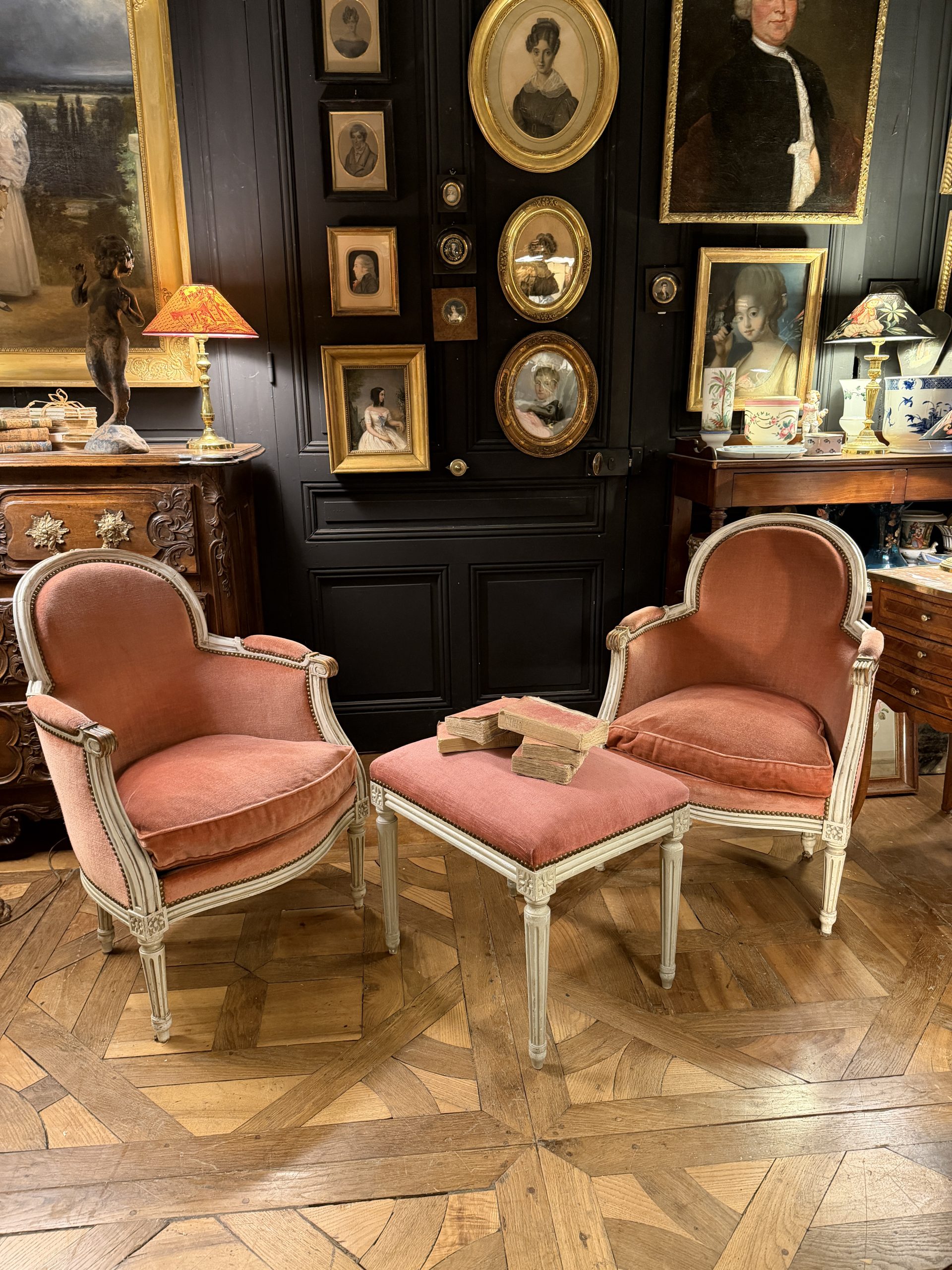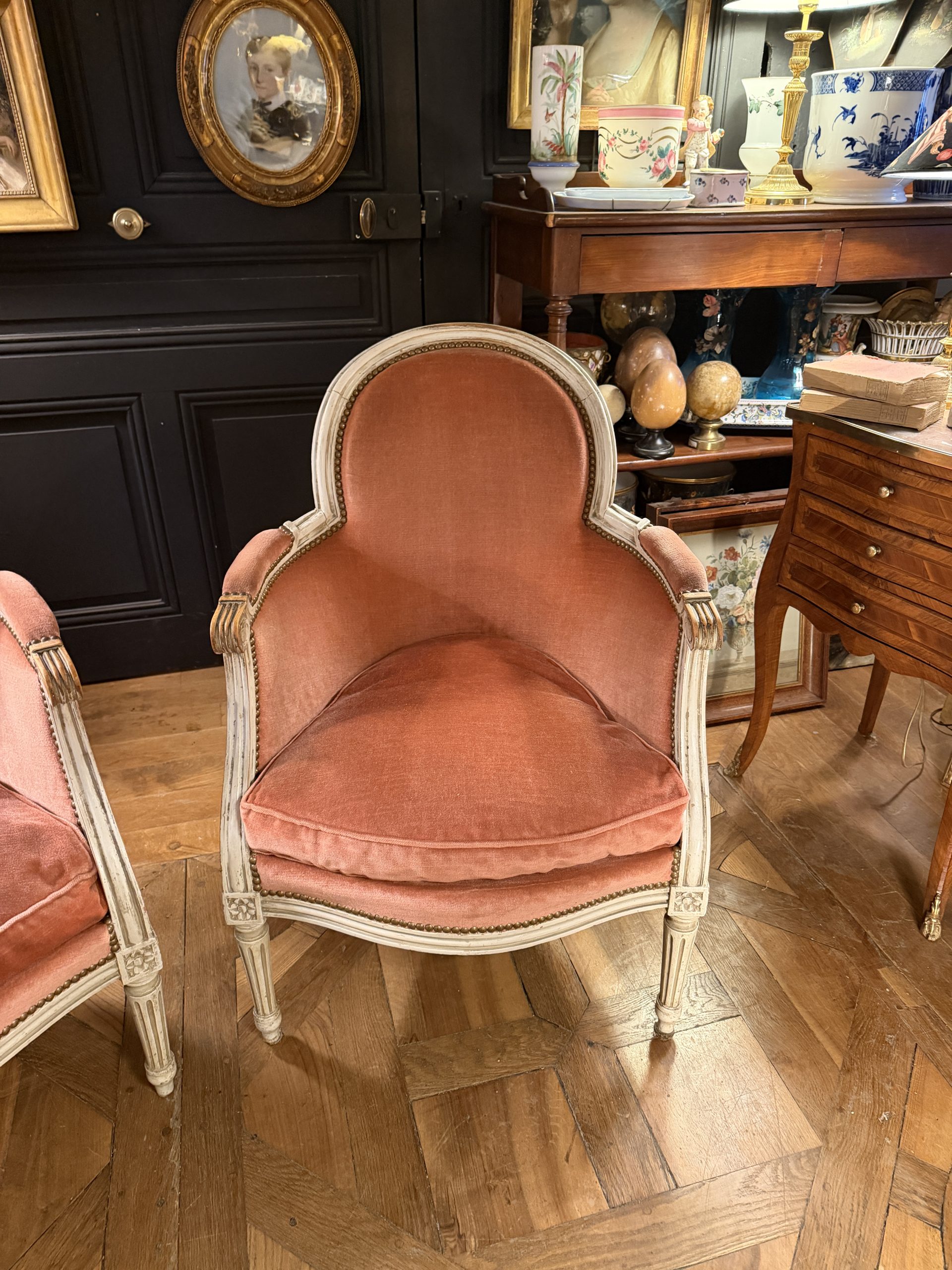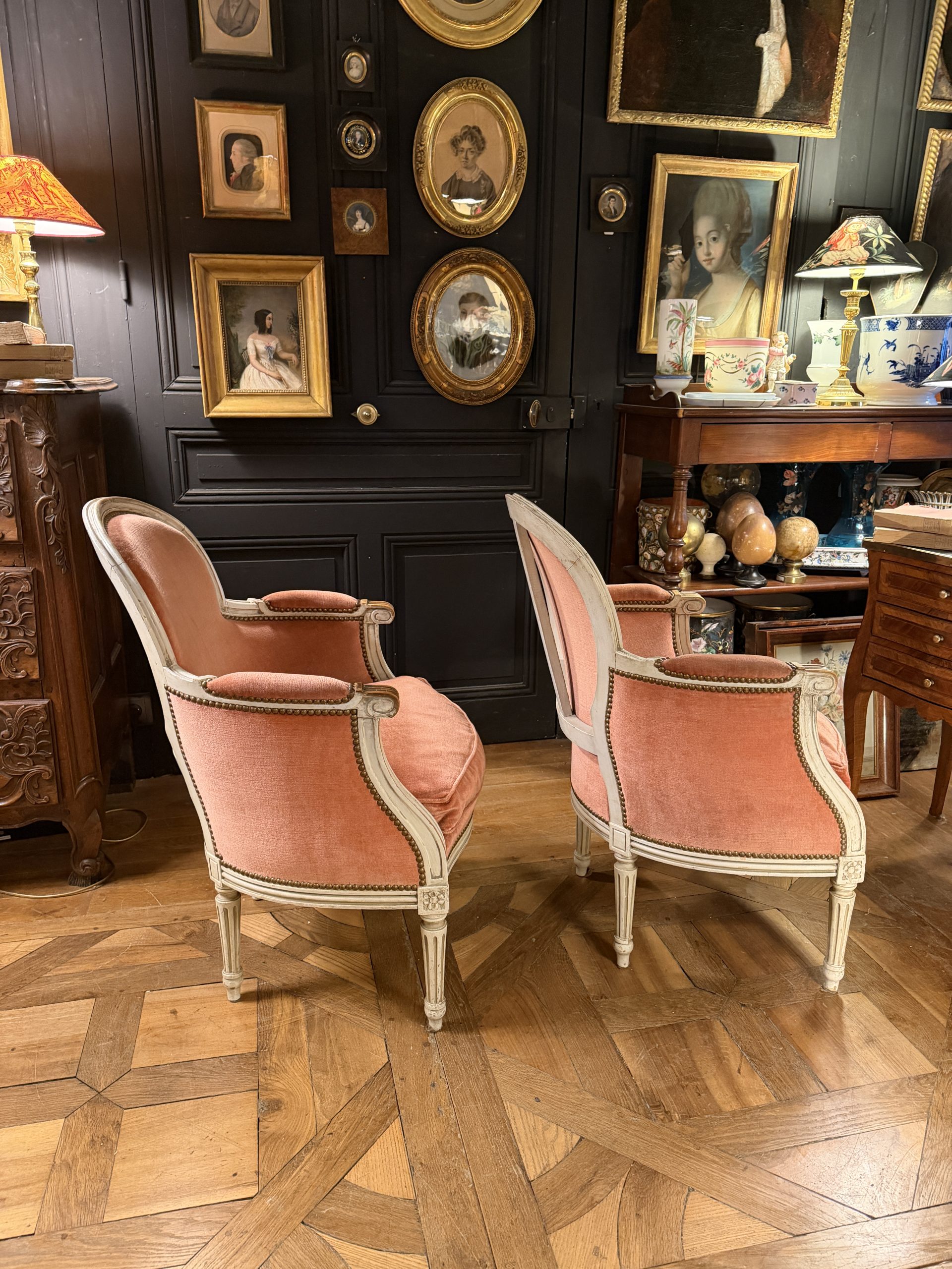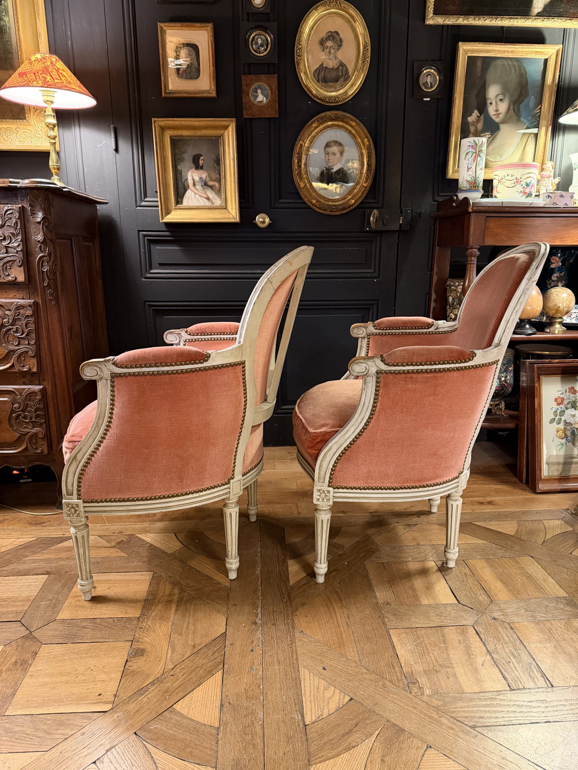 Paire de bergères en bois peint de style Louis XVI époque XXème
