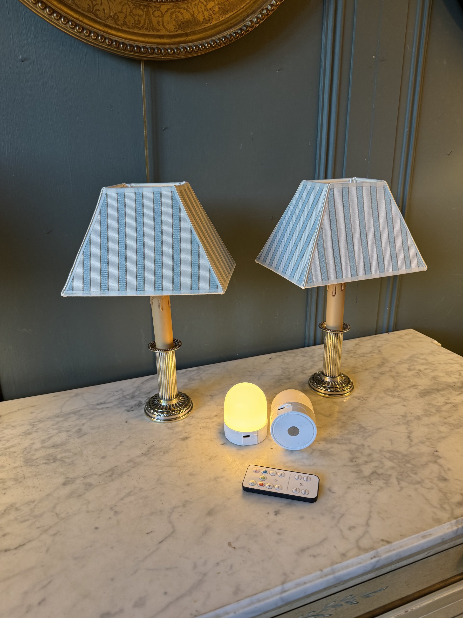 Douille en laiton et bougies neuves.