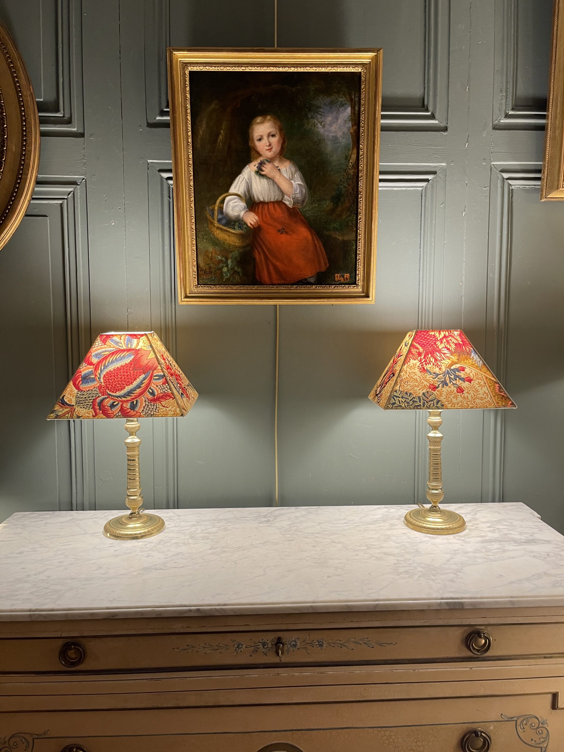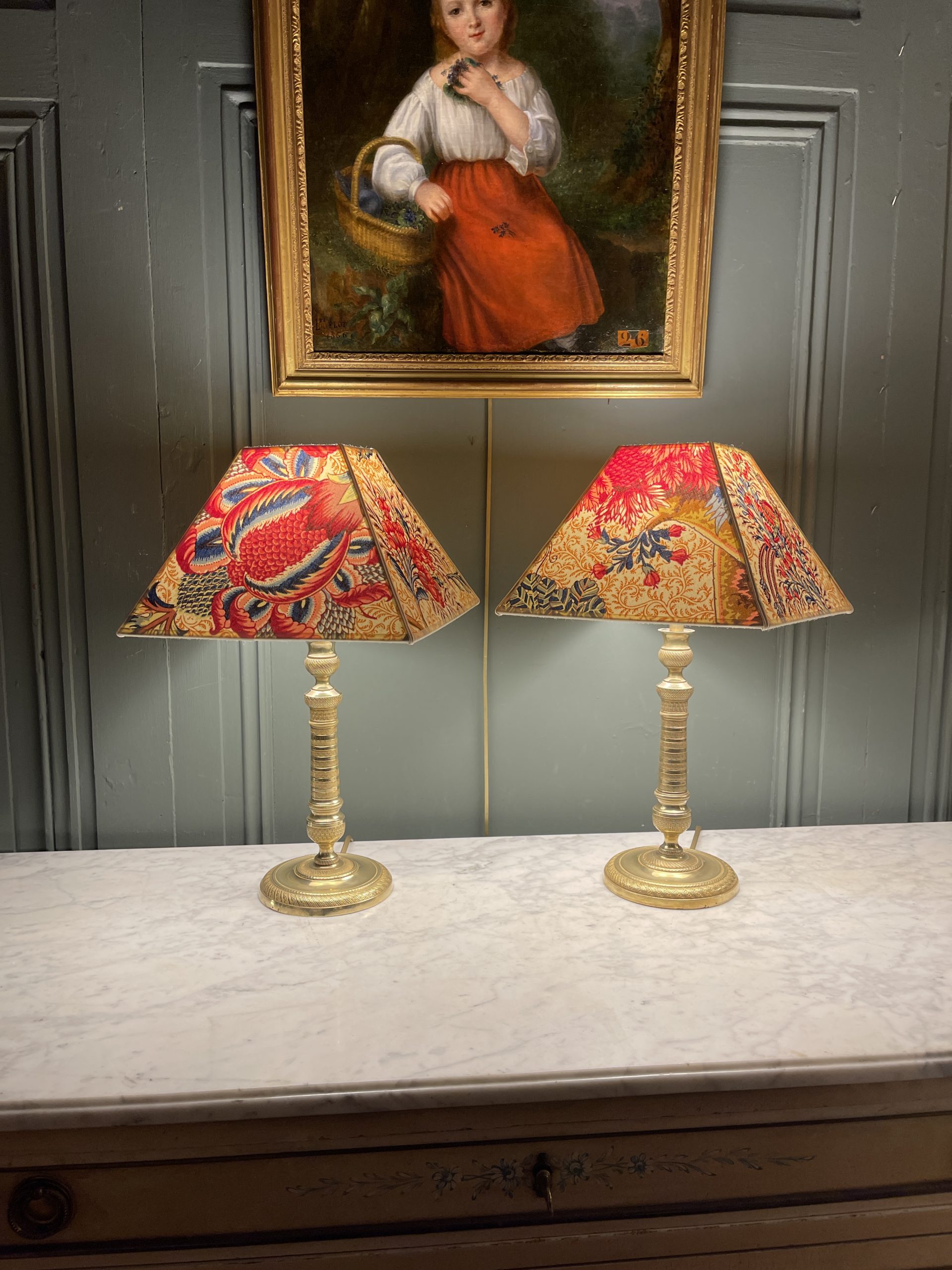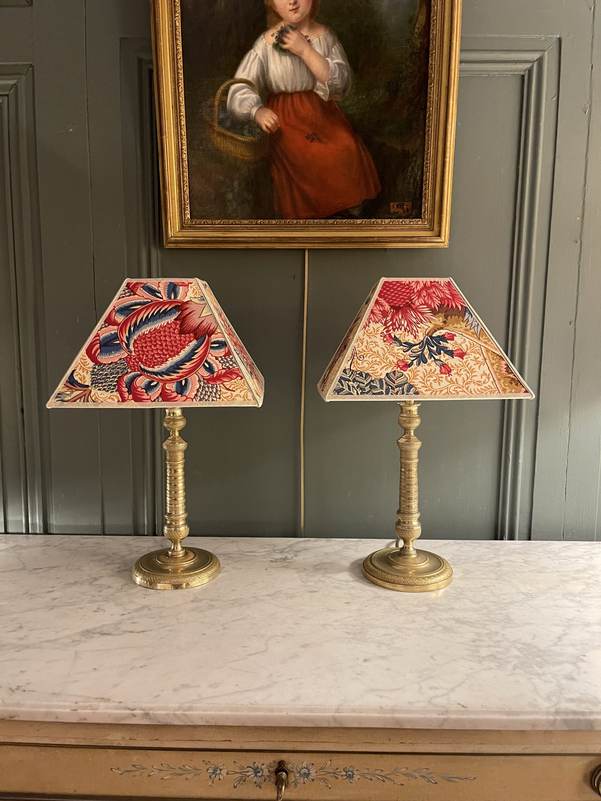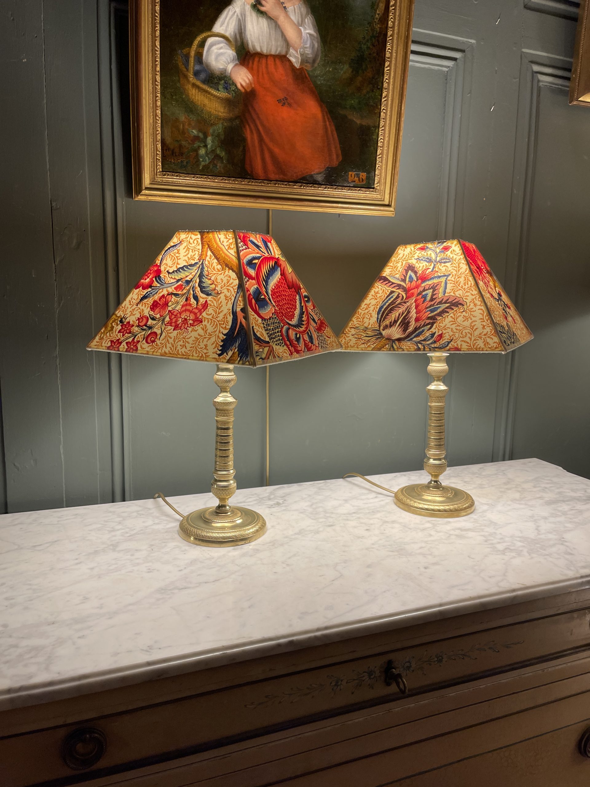Paire de lampes en bronze doré XIXème, Hauteur 41 cm