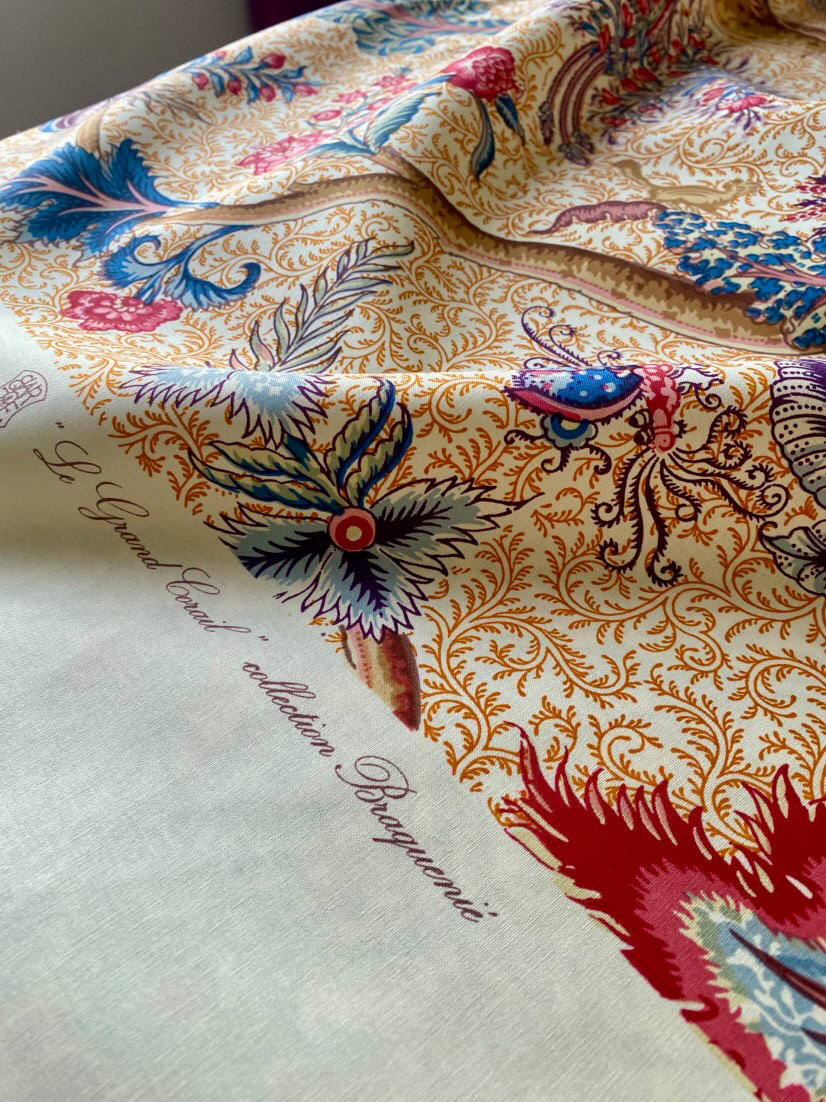 Les abat-jours de forme pyramide ont été créés à partir d’un tissu « Le Grand Corail » de Braquenié.