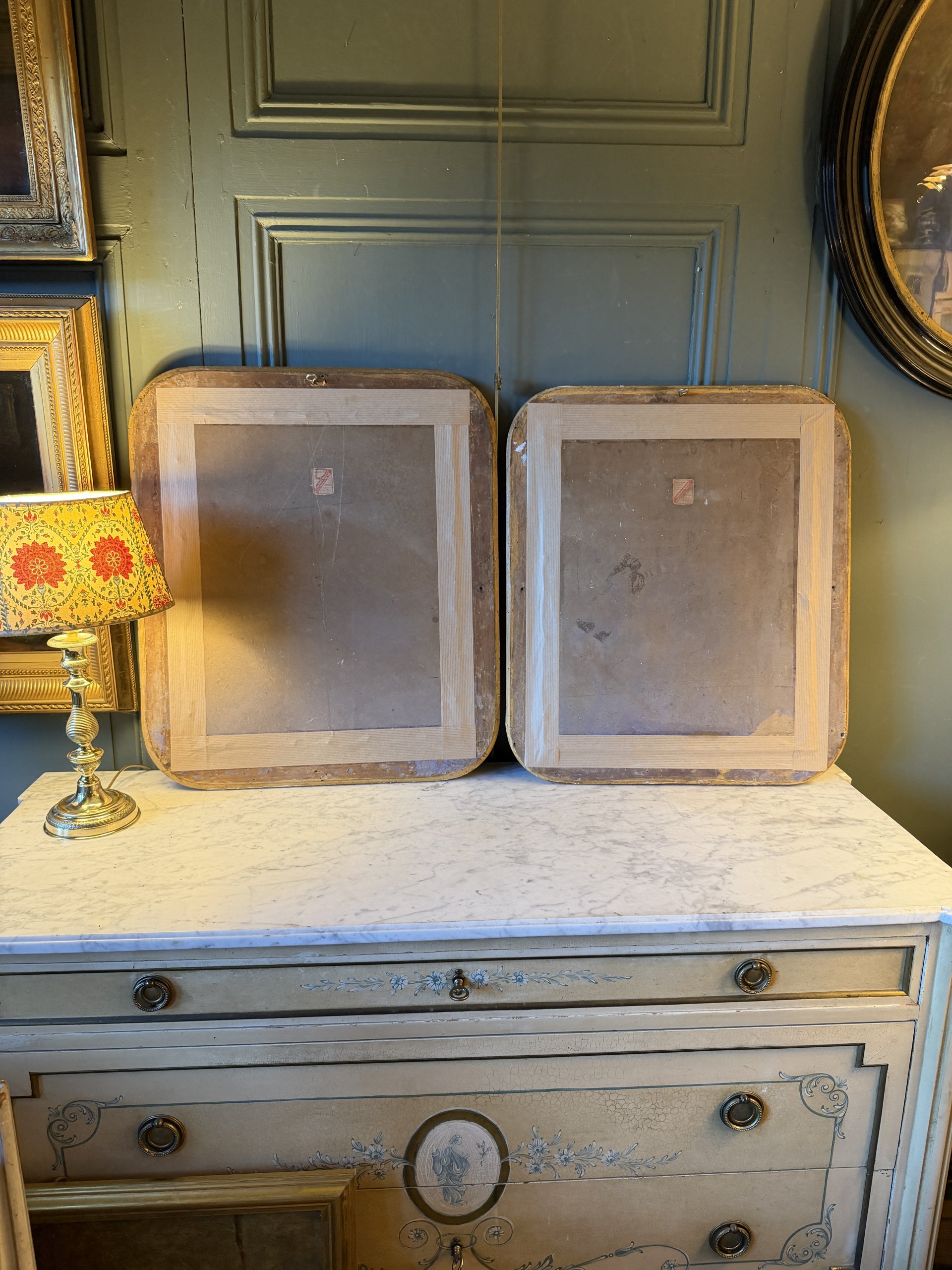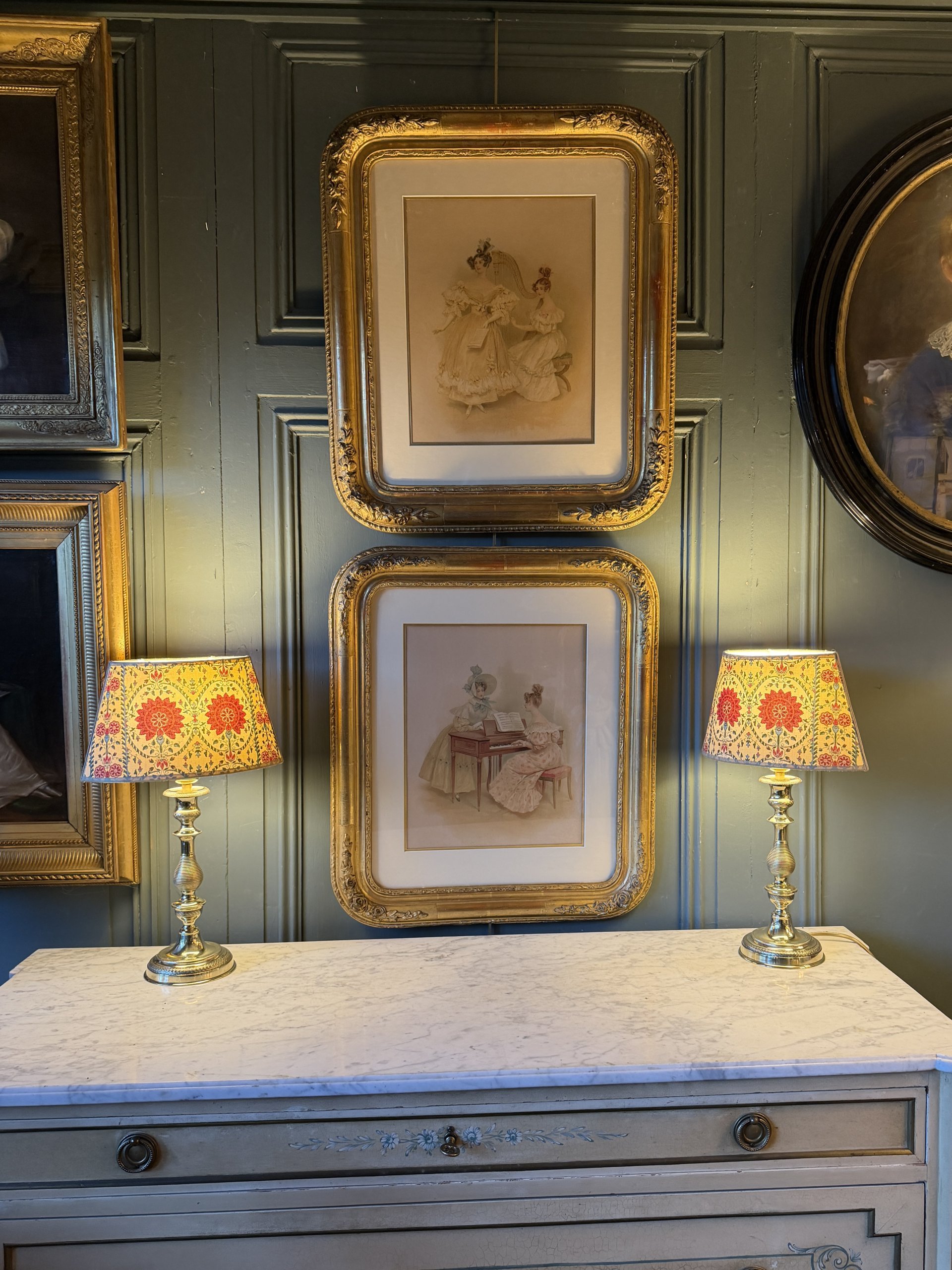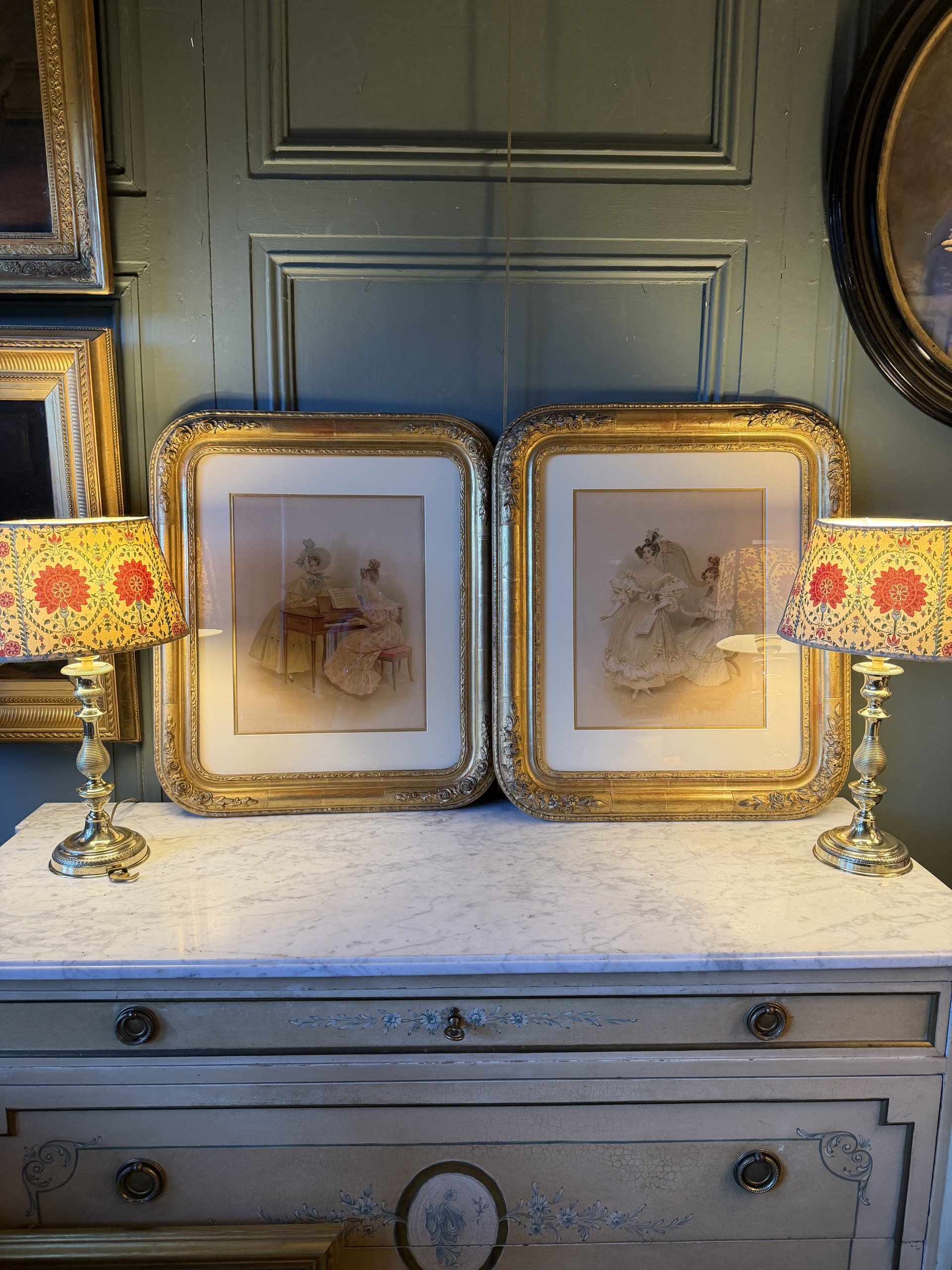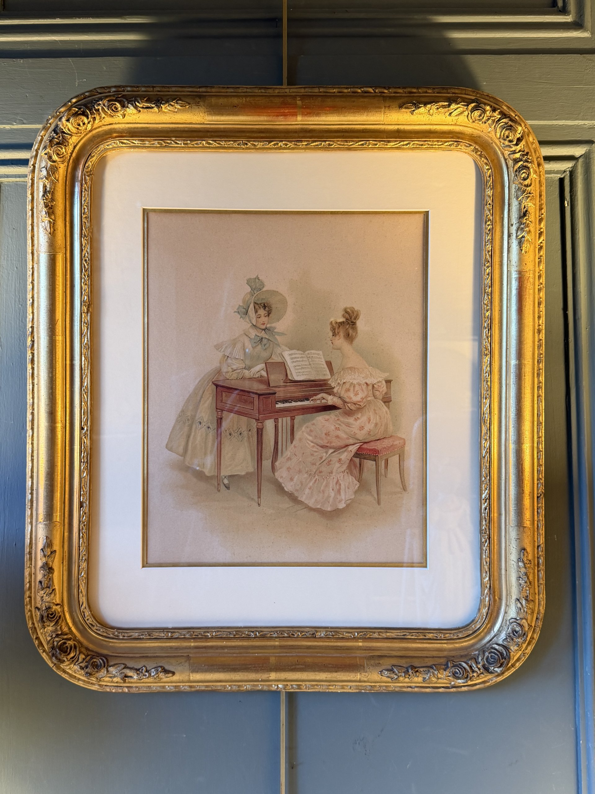 Paire de lithographies : la leçon de Piano-forte et de Harpe, époque Restauration