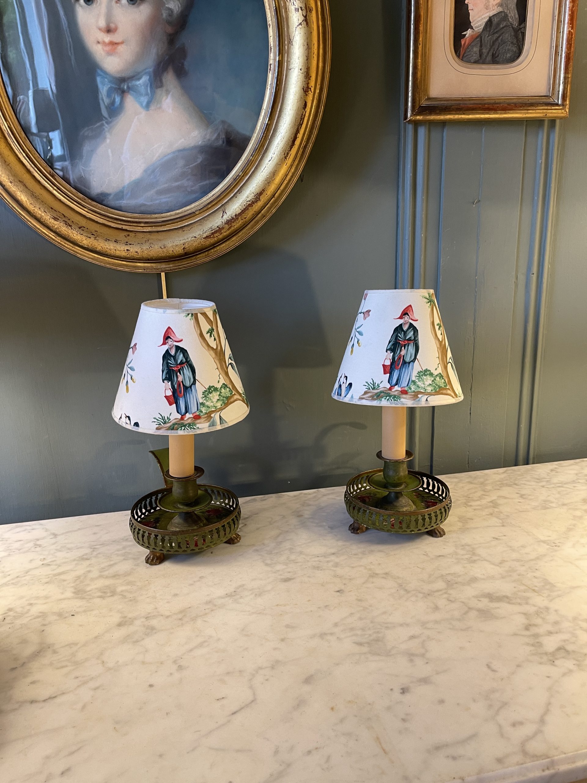 Les abat-jour à pince ont été créé à partir d’un tissu à décor de Chinoiseries.