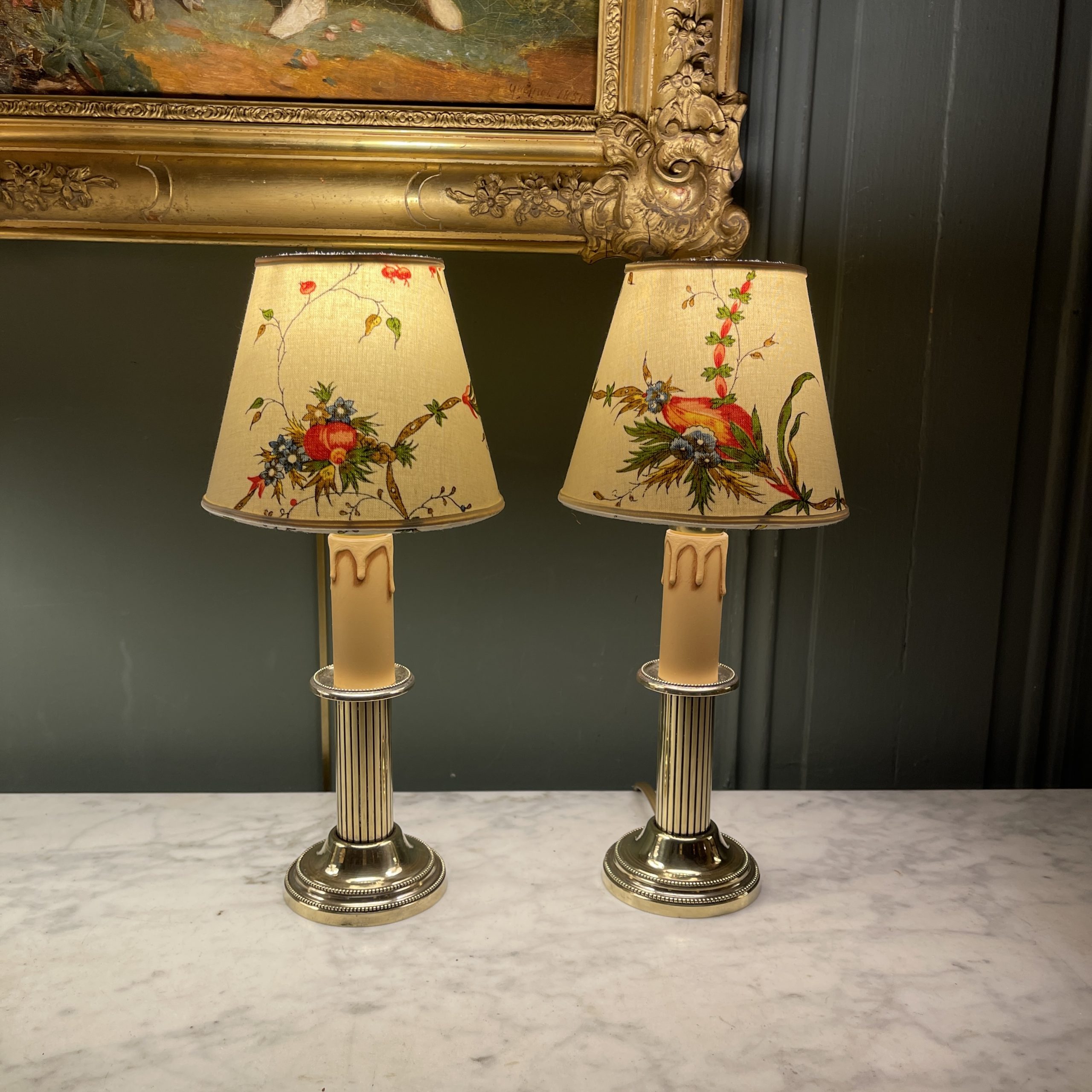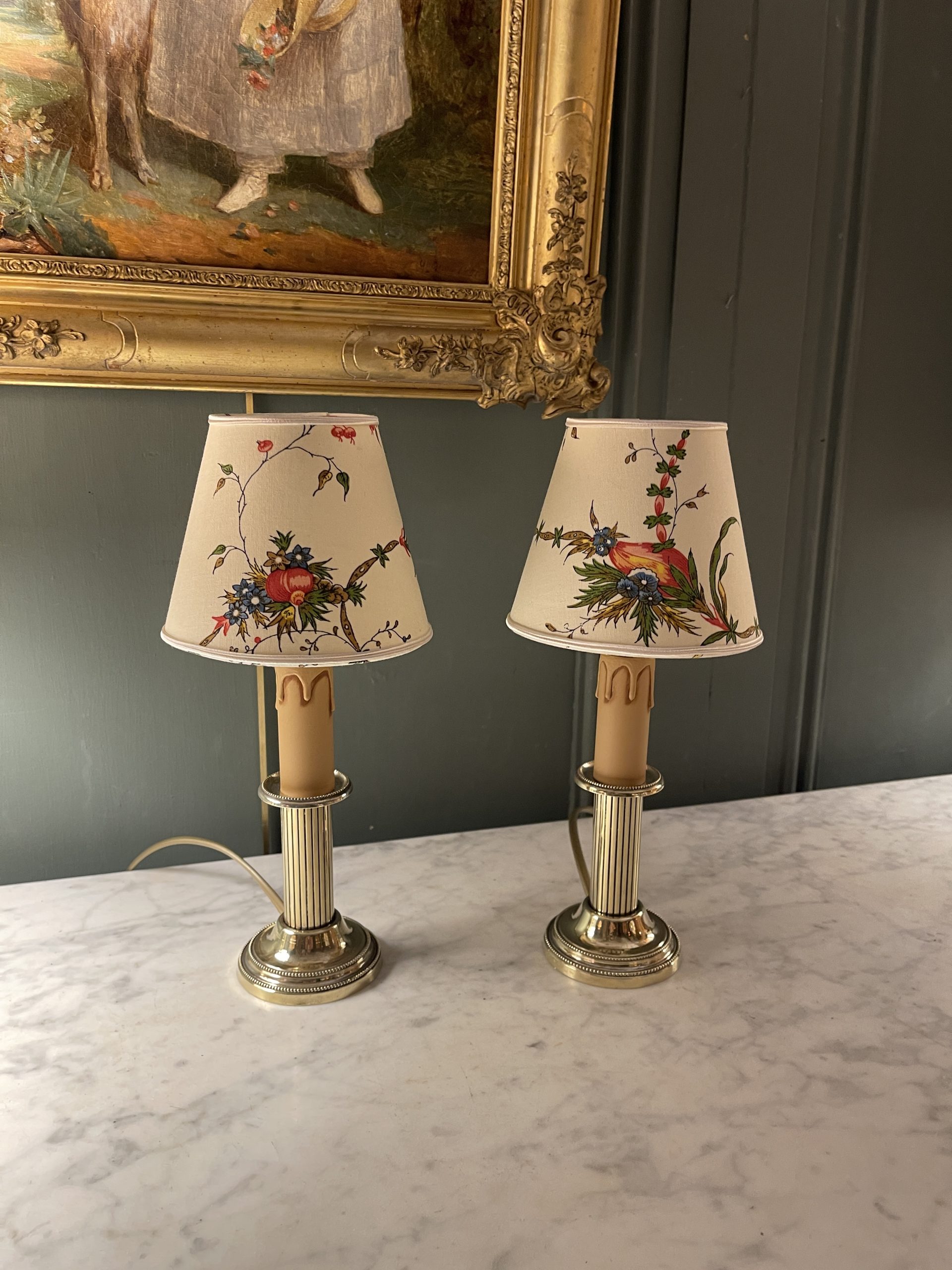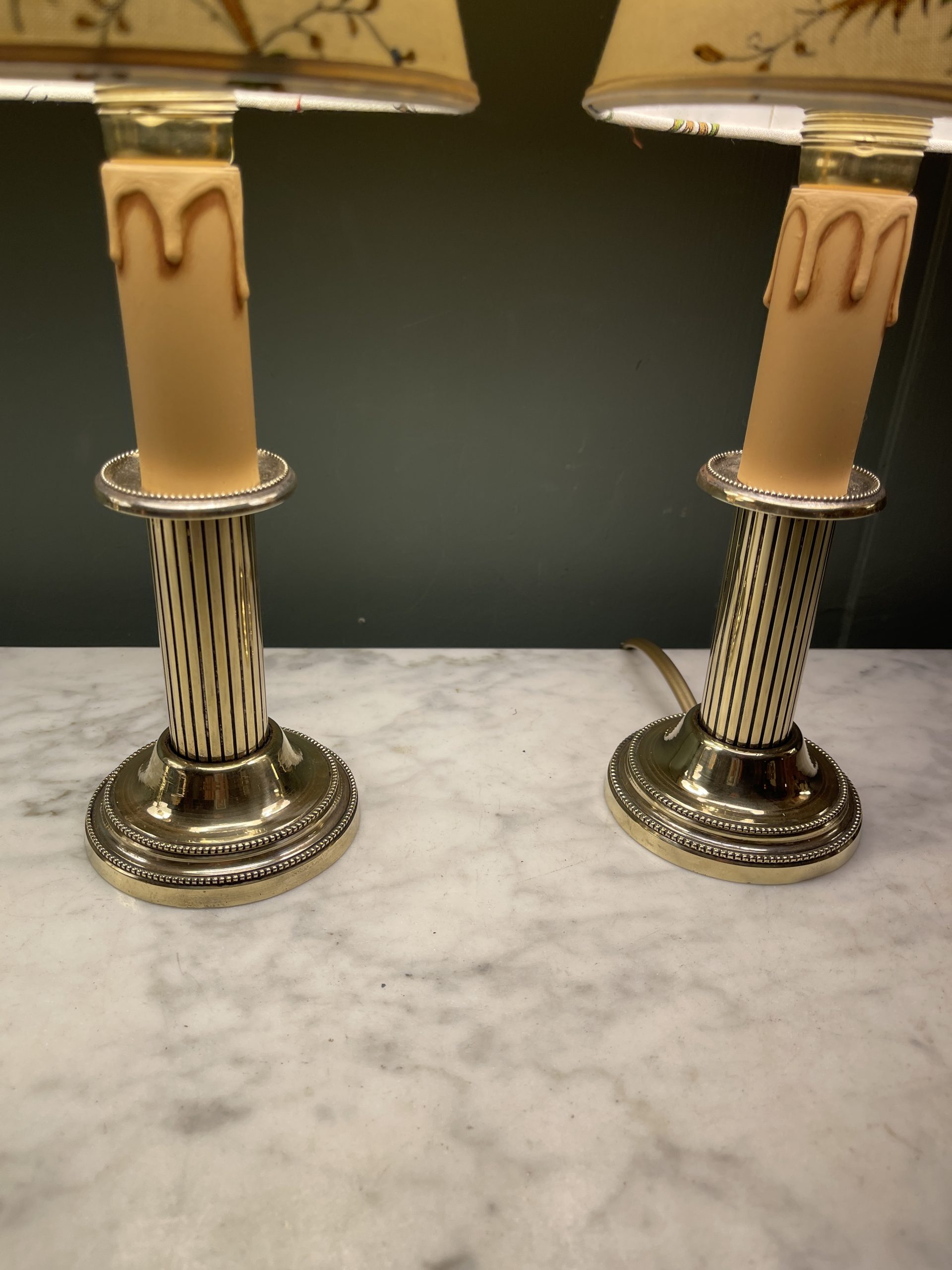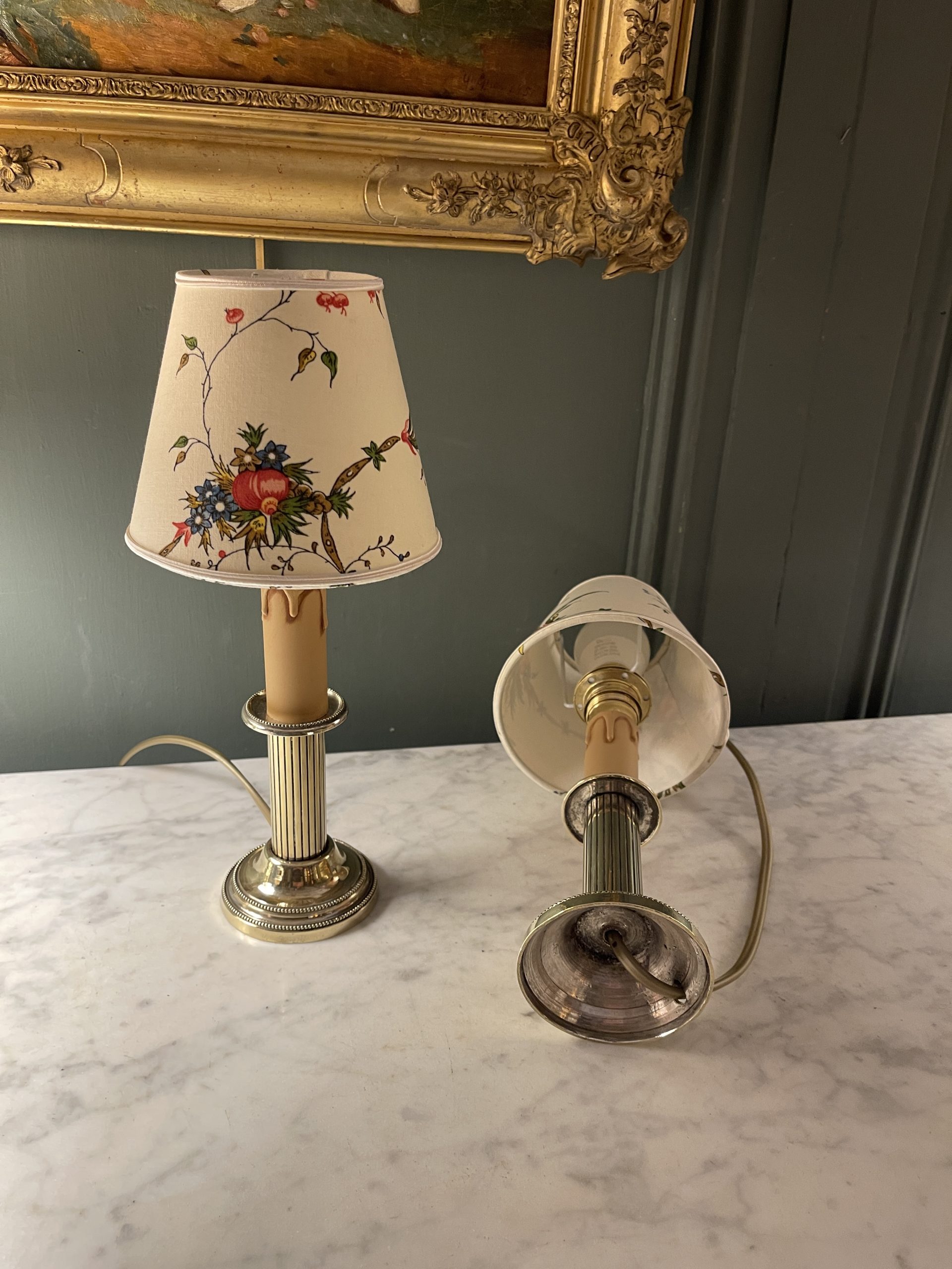 Paire de bougeoirs de table en laiton montés en lampes de style Louis XVI époque XXème.