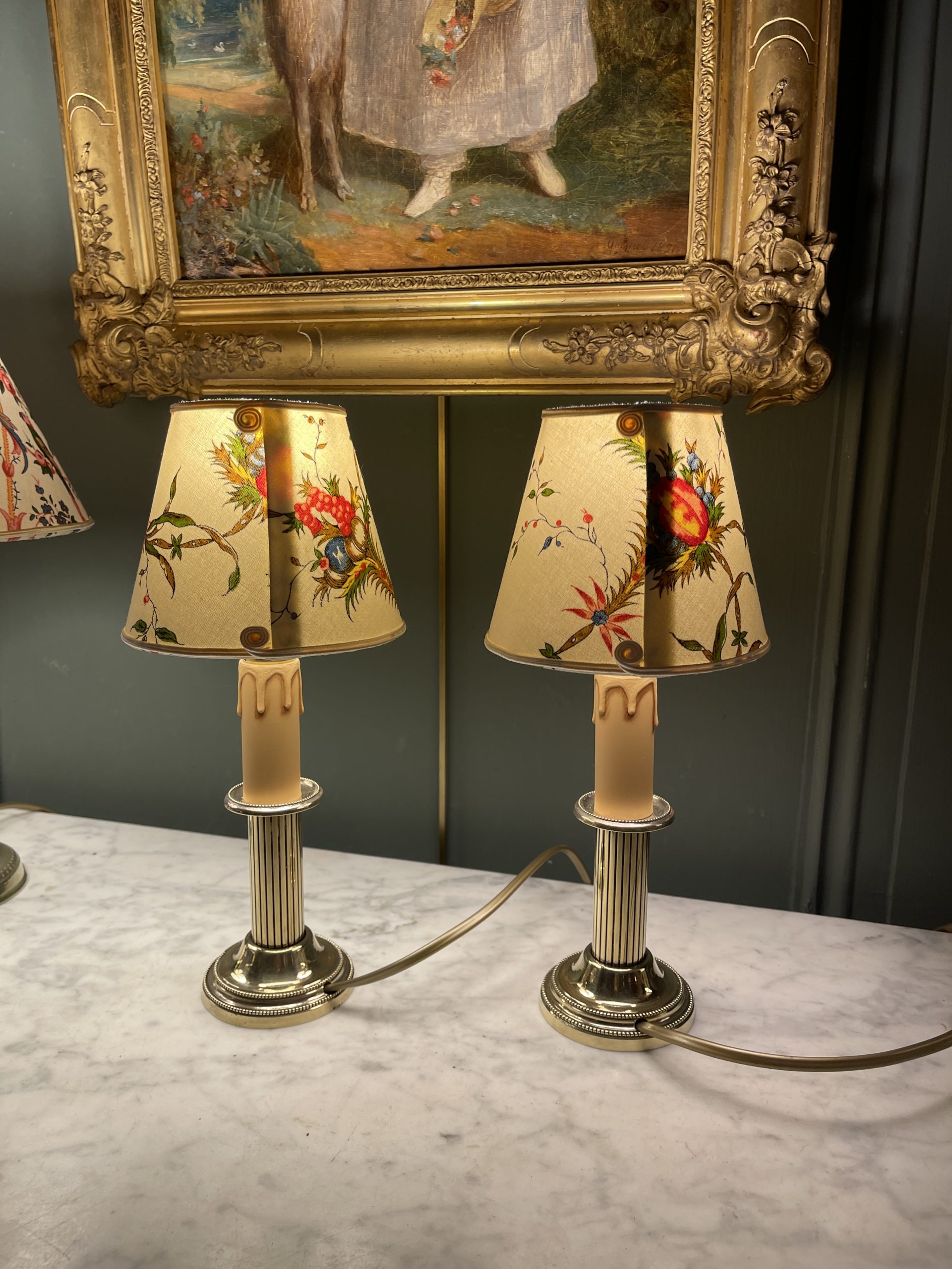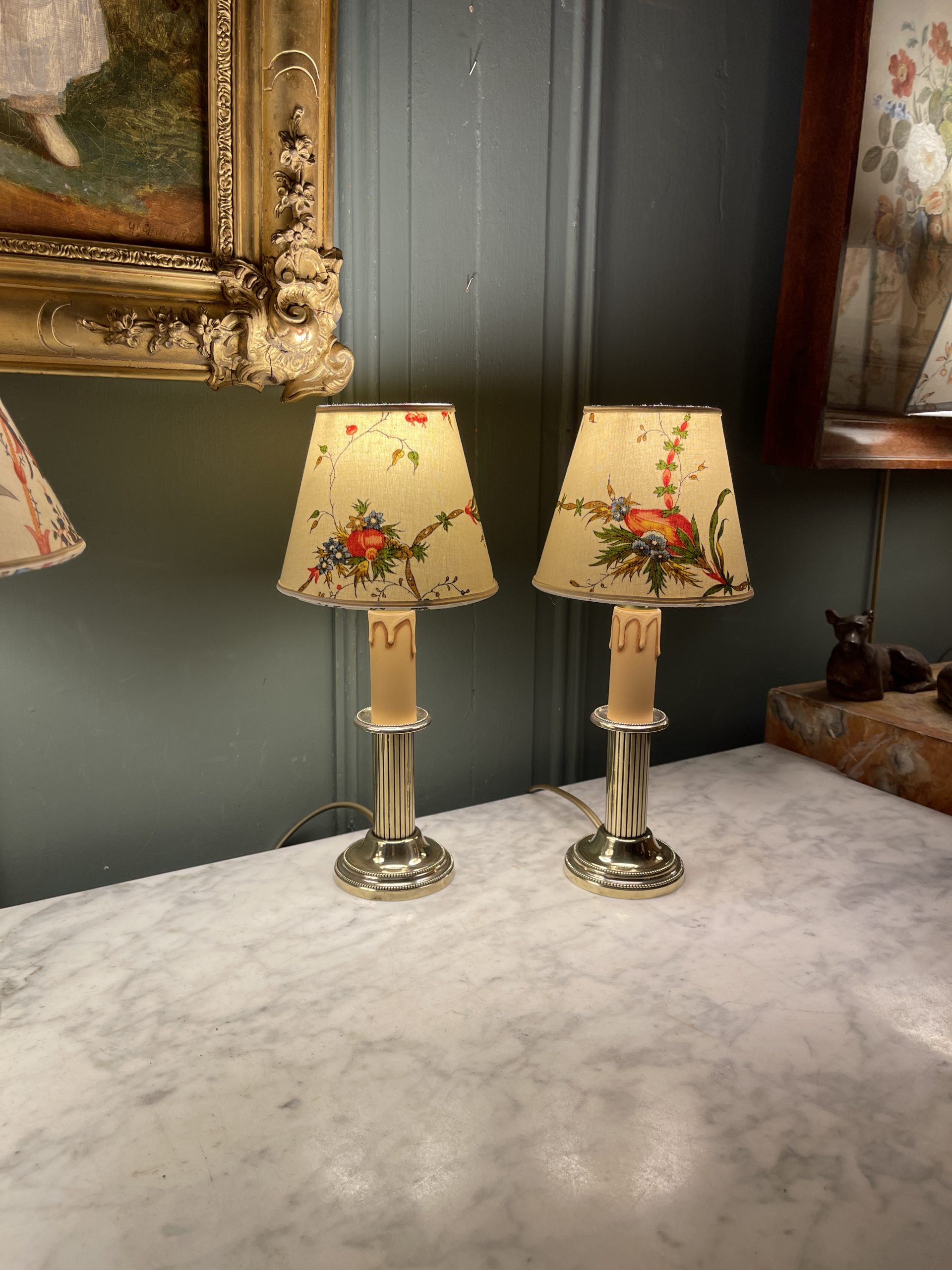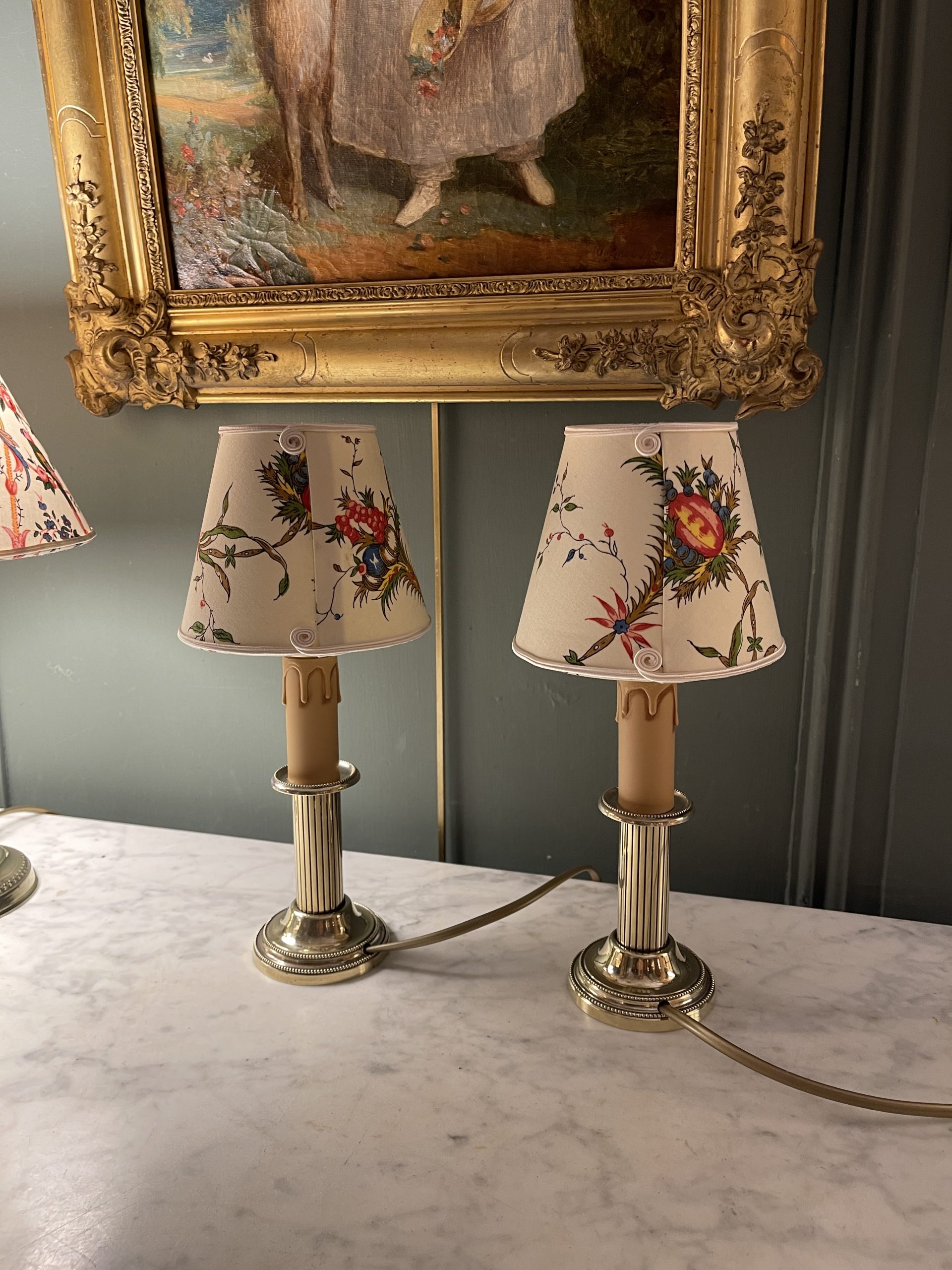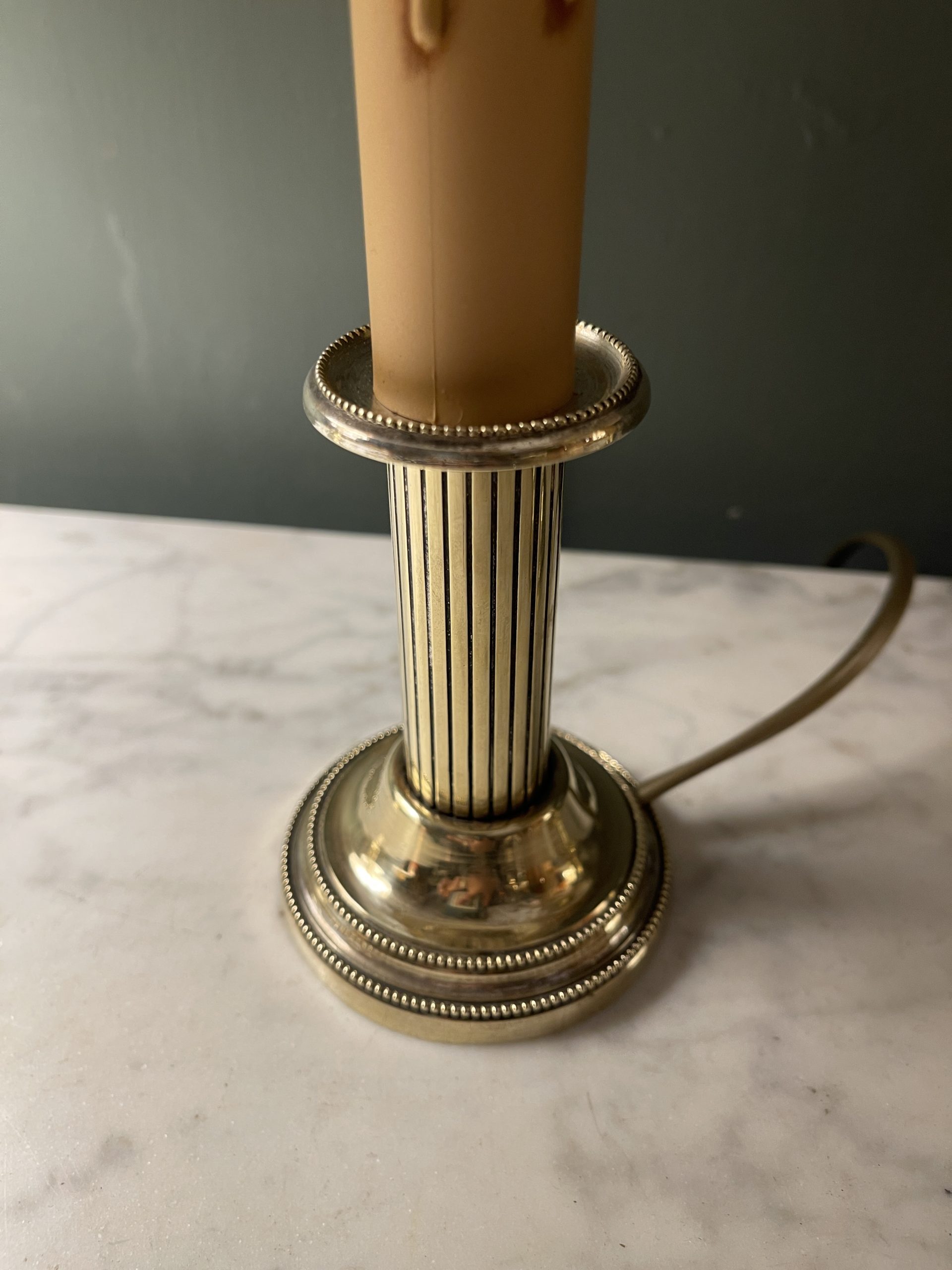 Paire de bougeoirs de table en laiton montés en lampes de style Louis XVI époque XXème.