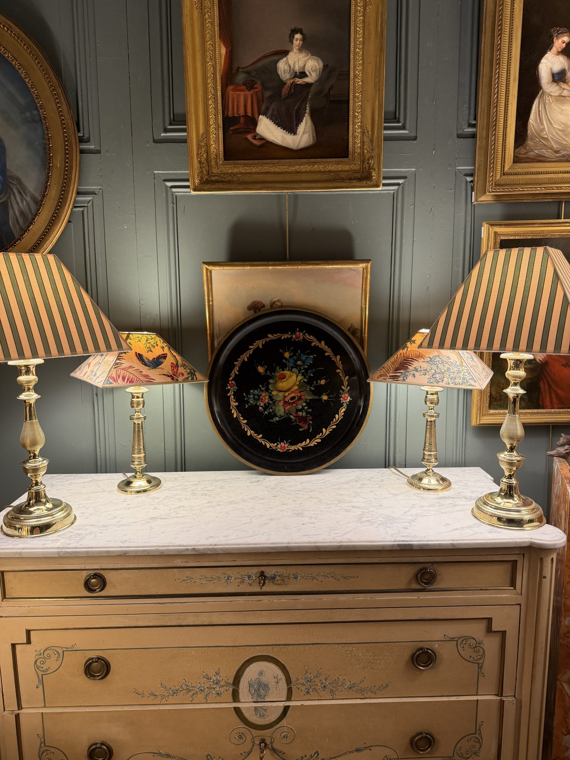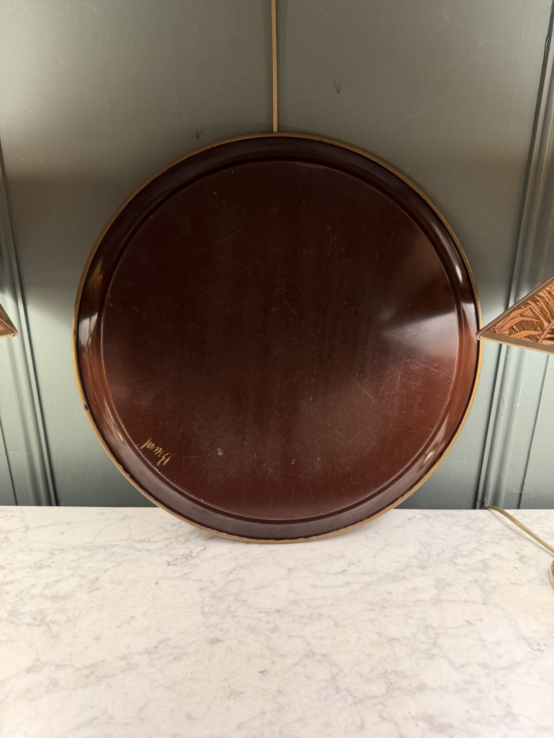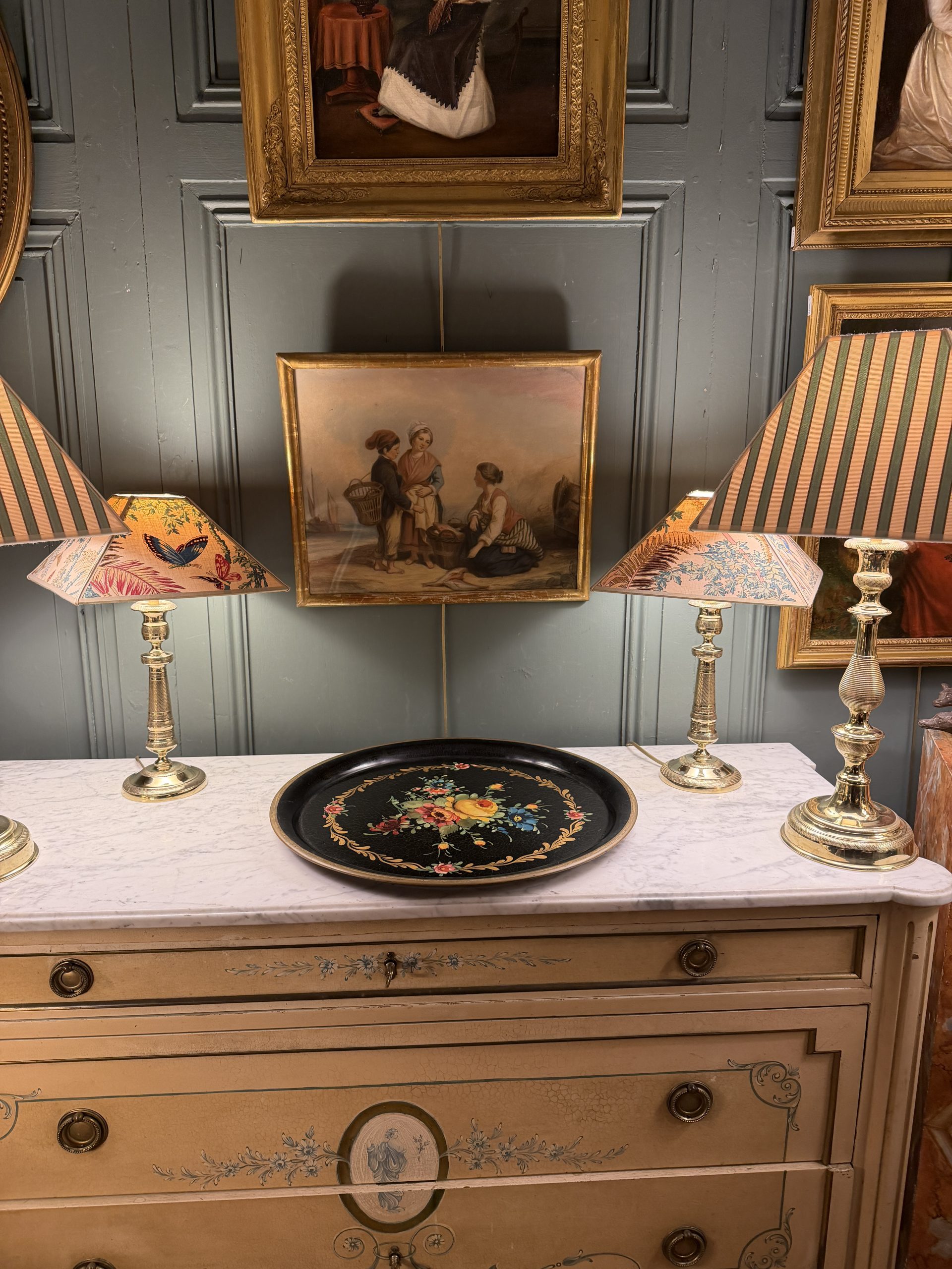 Plateau en tôle peinte à décor floral sur fond noir craquelé époque  XXème.