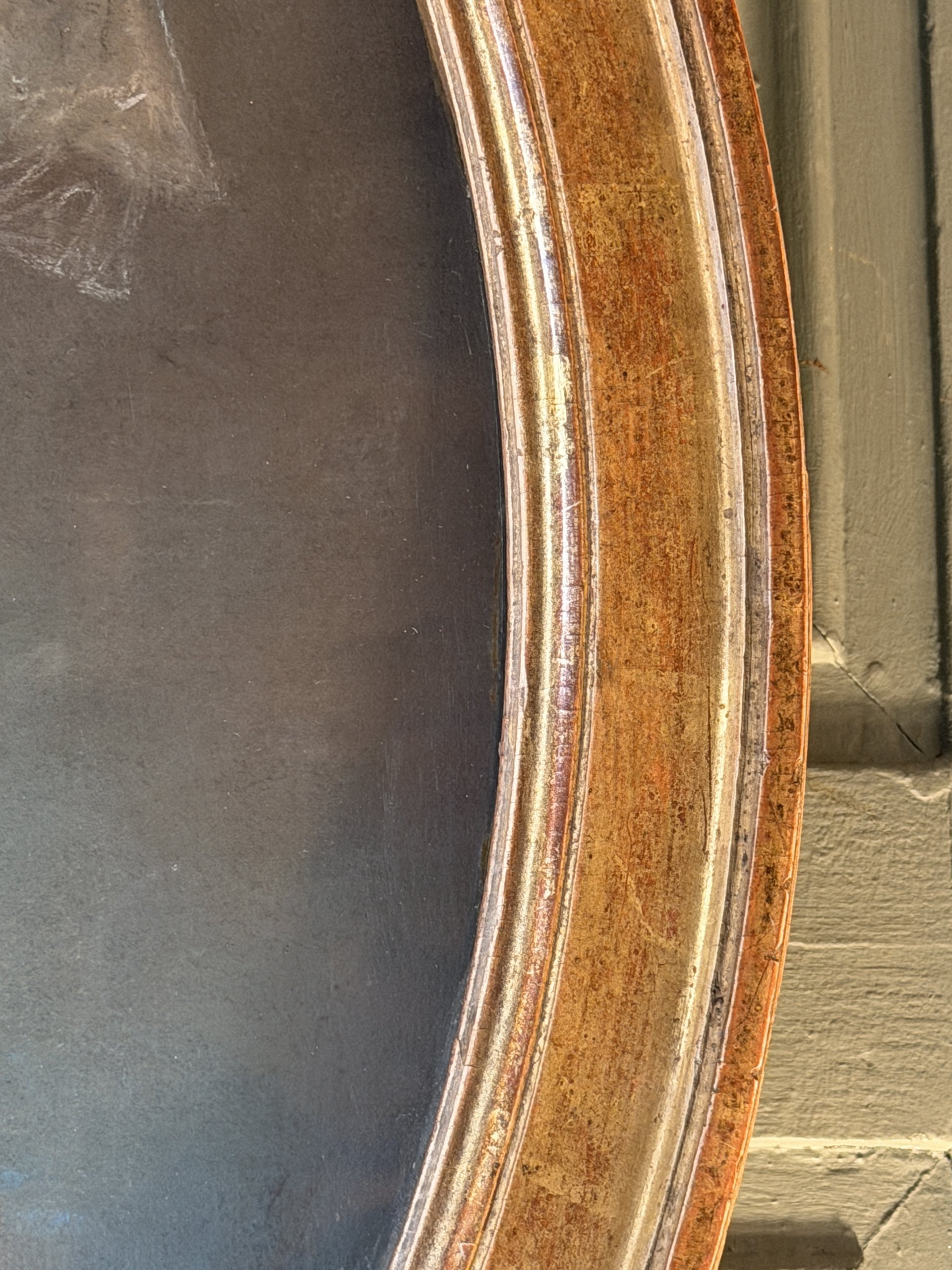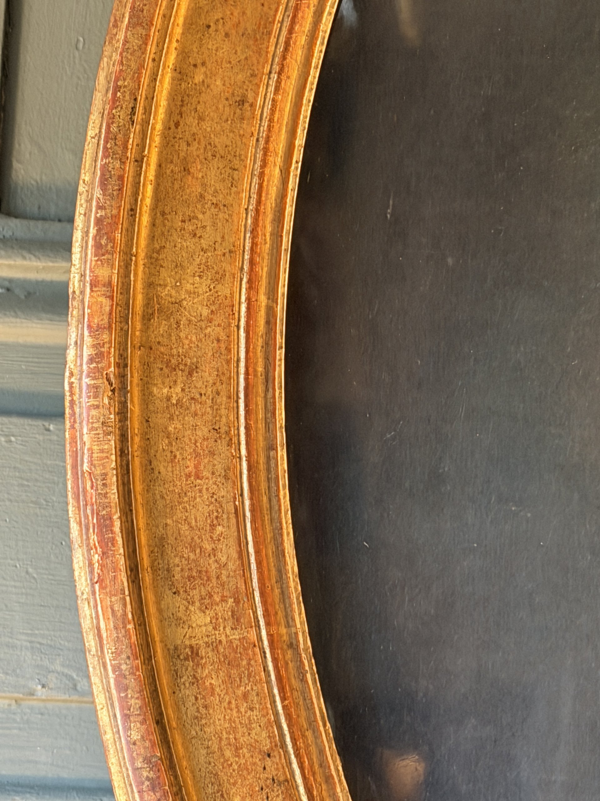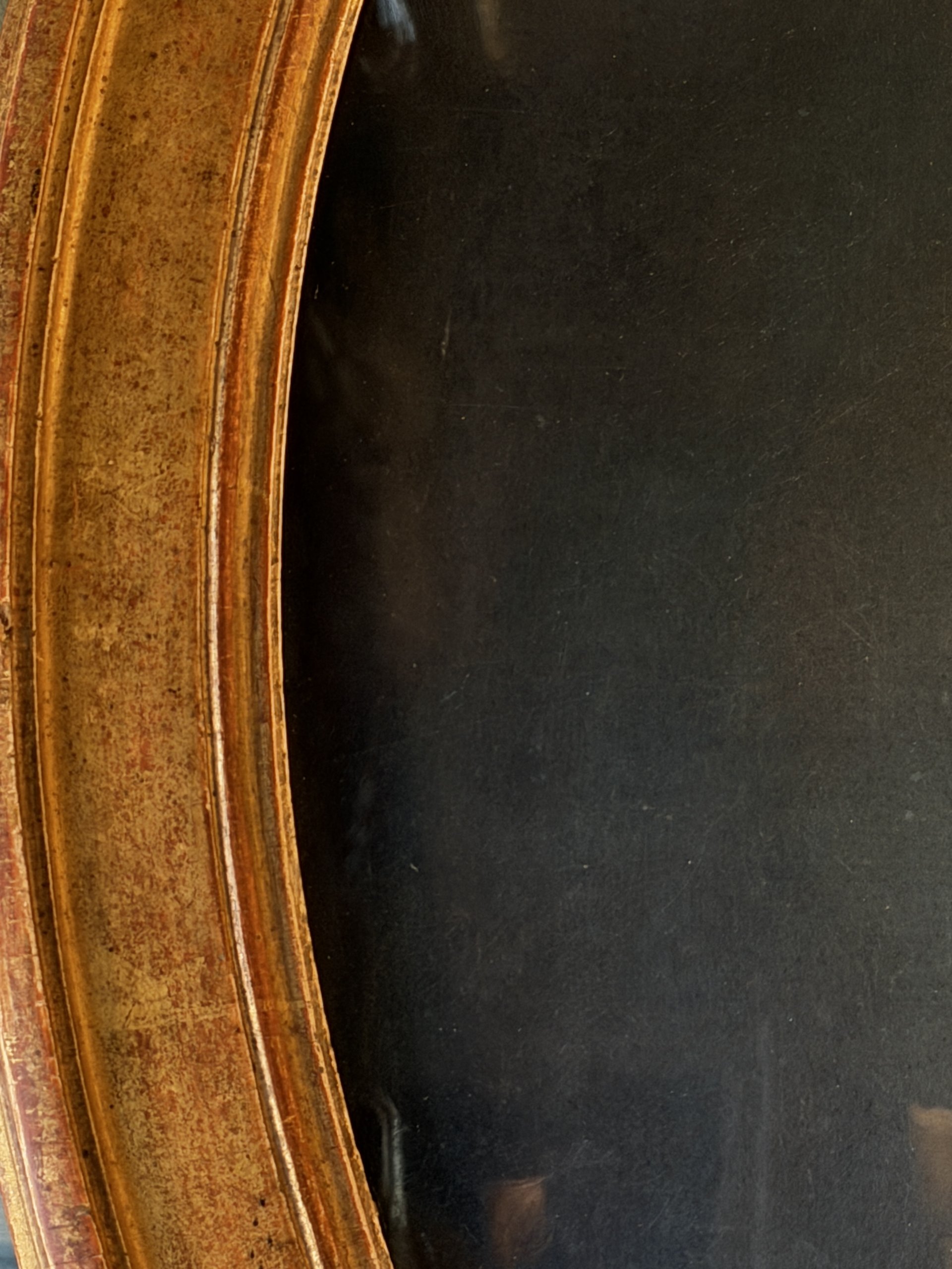 Encadrement doré à la feuille et verre bullé d’origine.