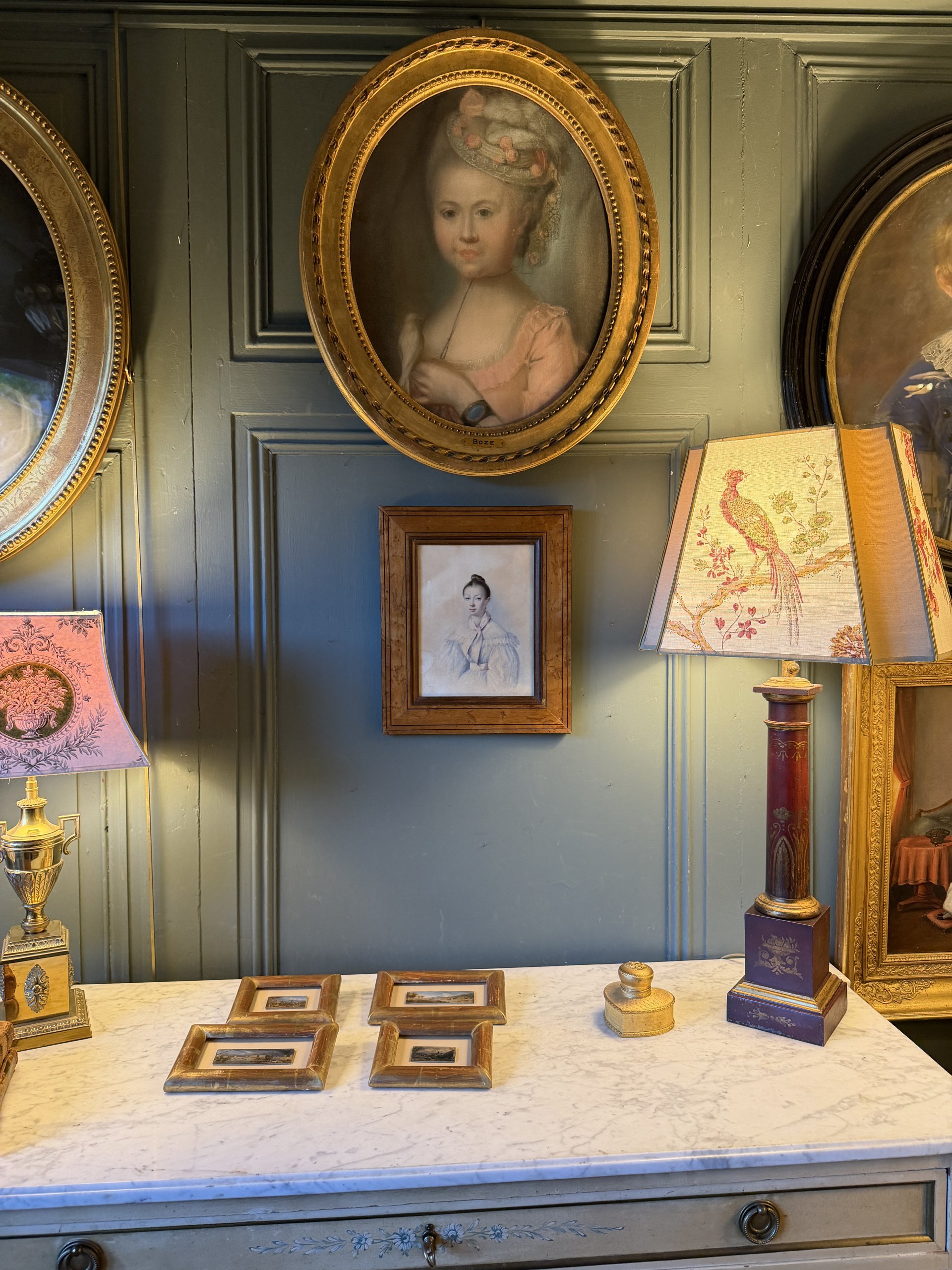 Encadrement en placage de loupe d’orme d’origine.