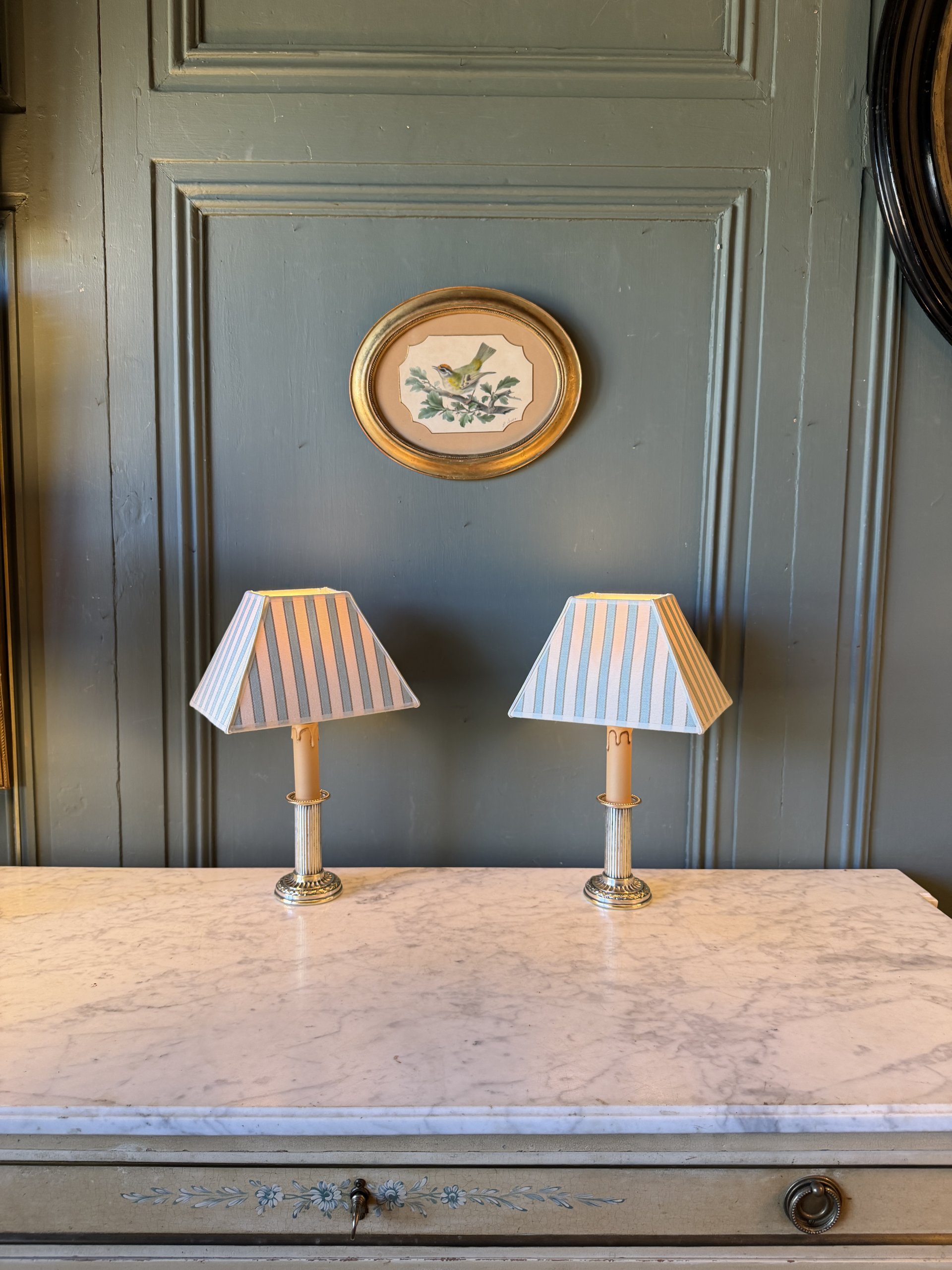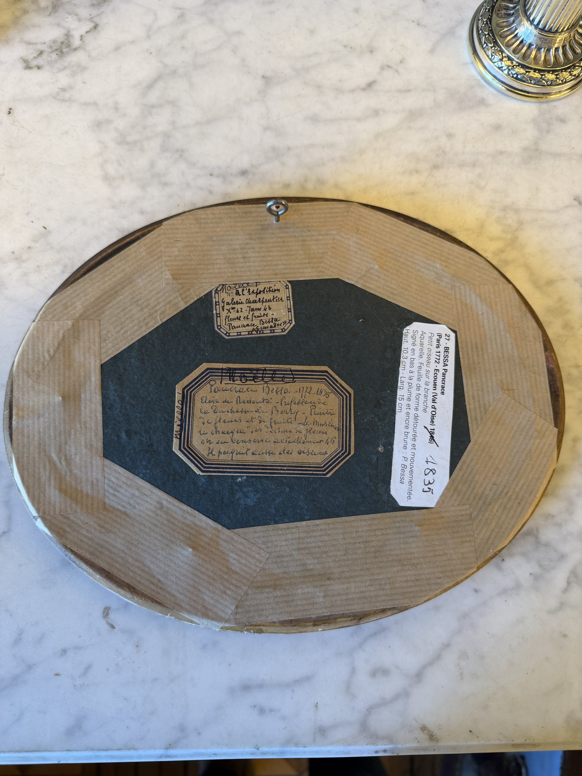 Encadrement doré à la feuille et verre bullé d’origine.