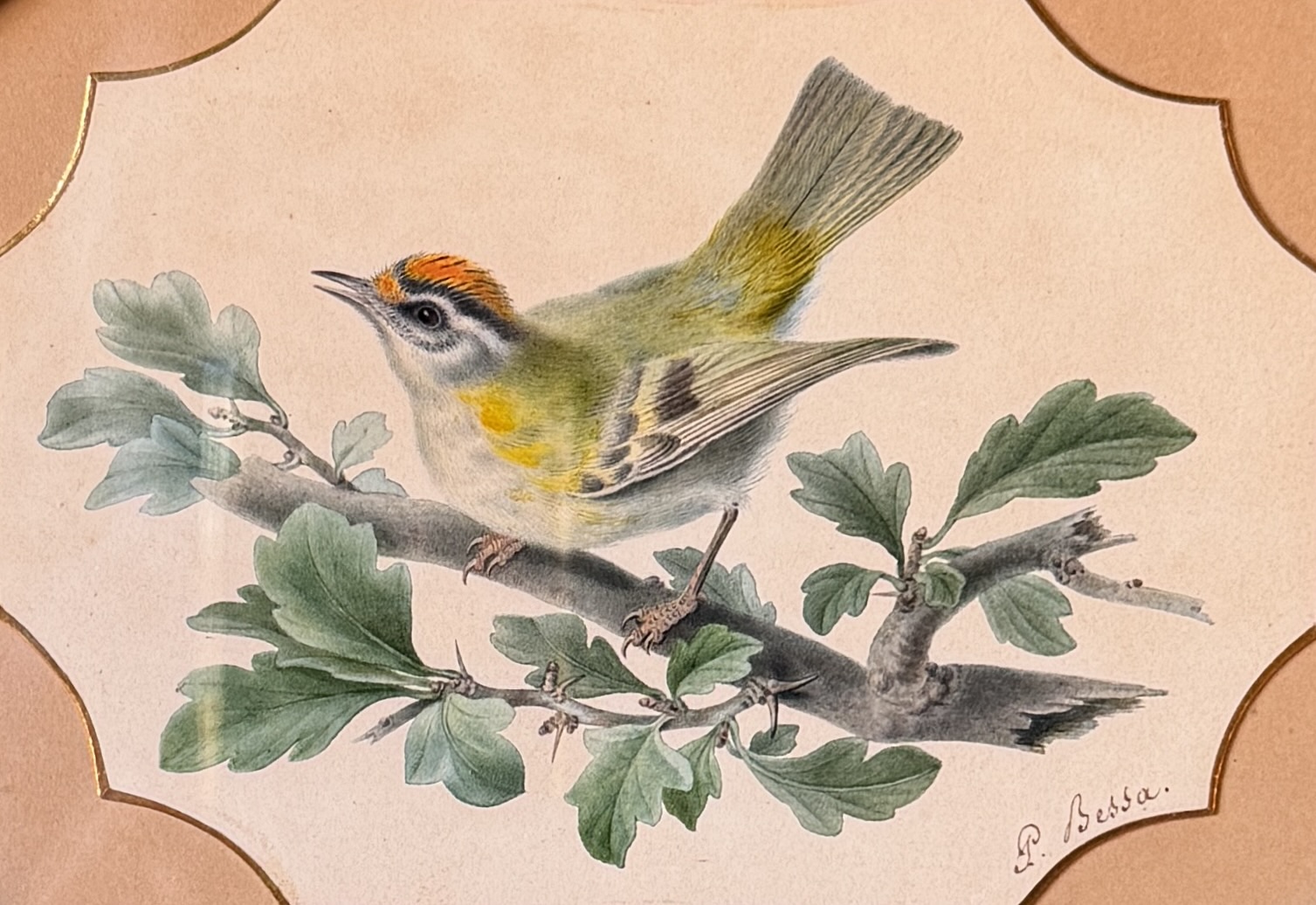 Roitelet de Madère de Pancrace Bessa, Aquarelle d'oiseau XIXème
