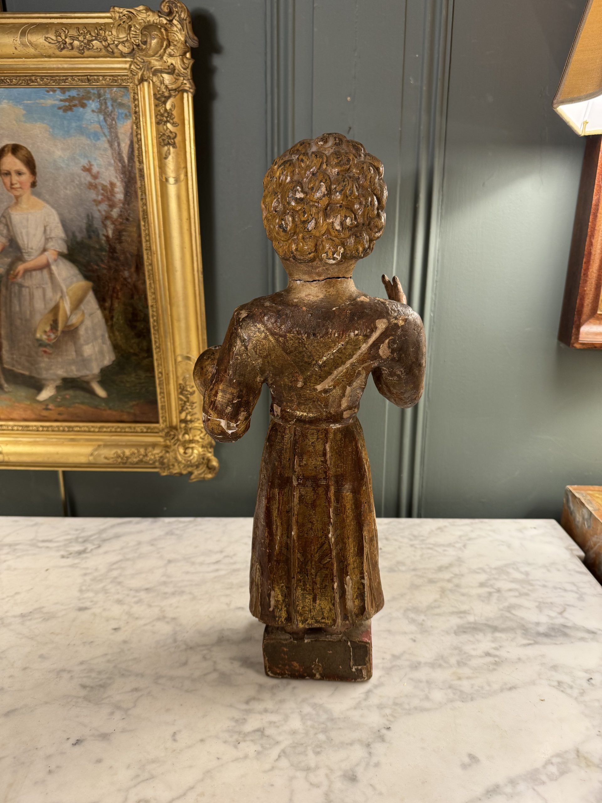 Saint Jean Baptiste jeune en bois sculpté en ronde-bosse polychrome et doré époque XVIIIème.