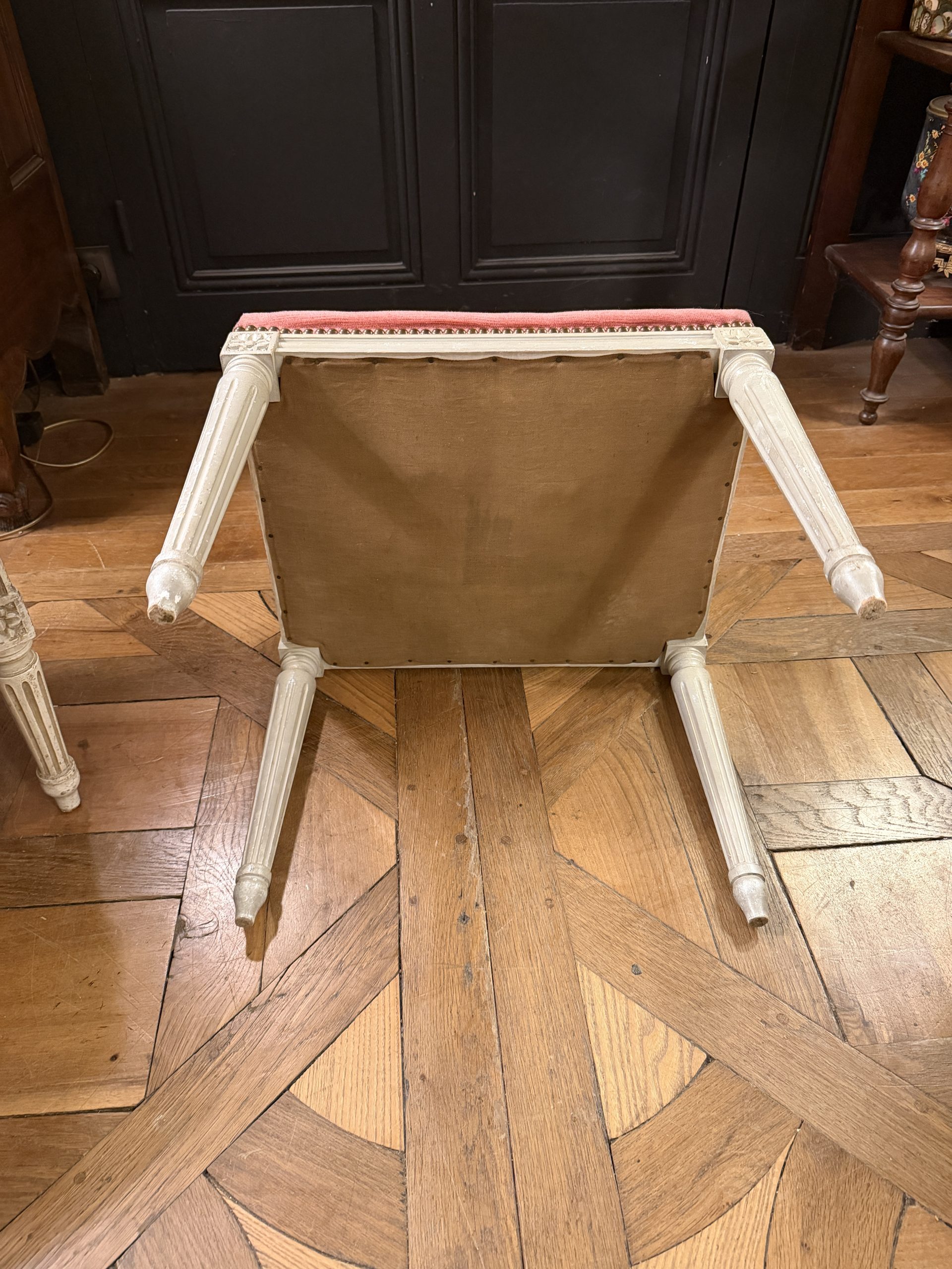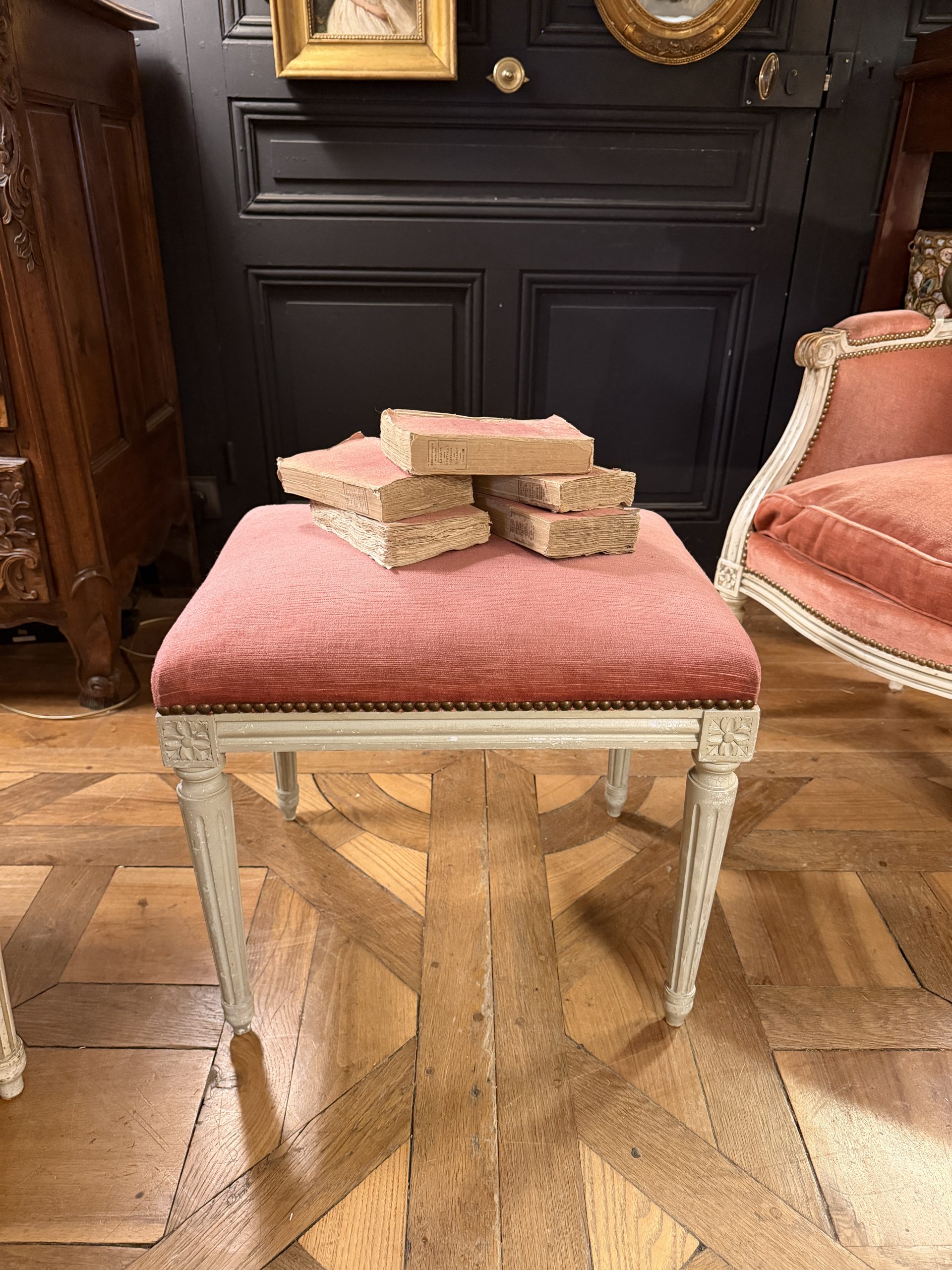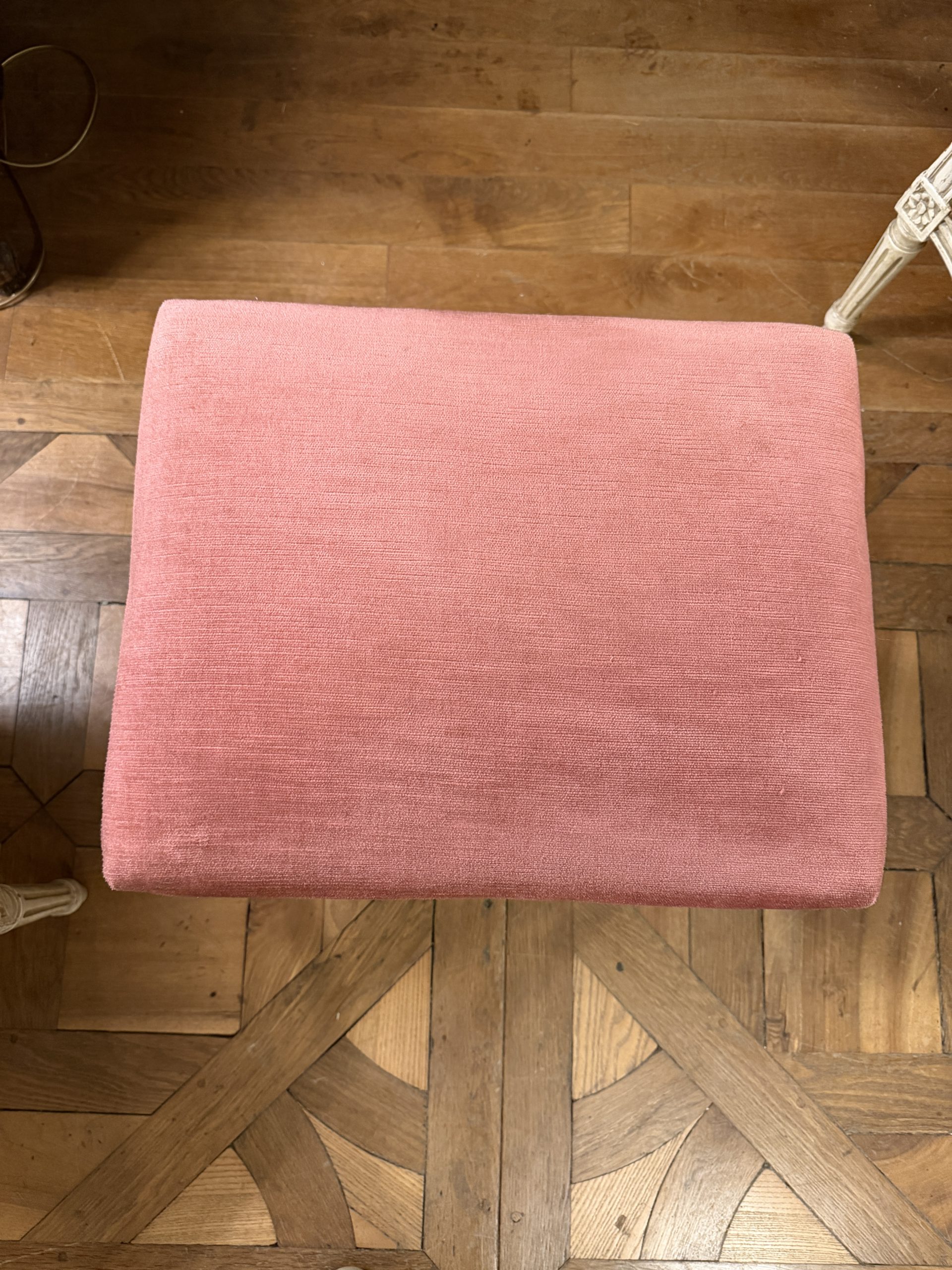 Il est recouvert d’un velours de couleur rose.