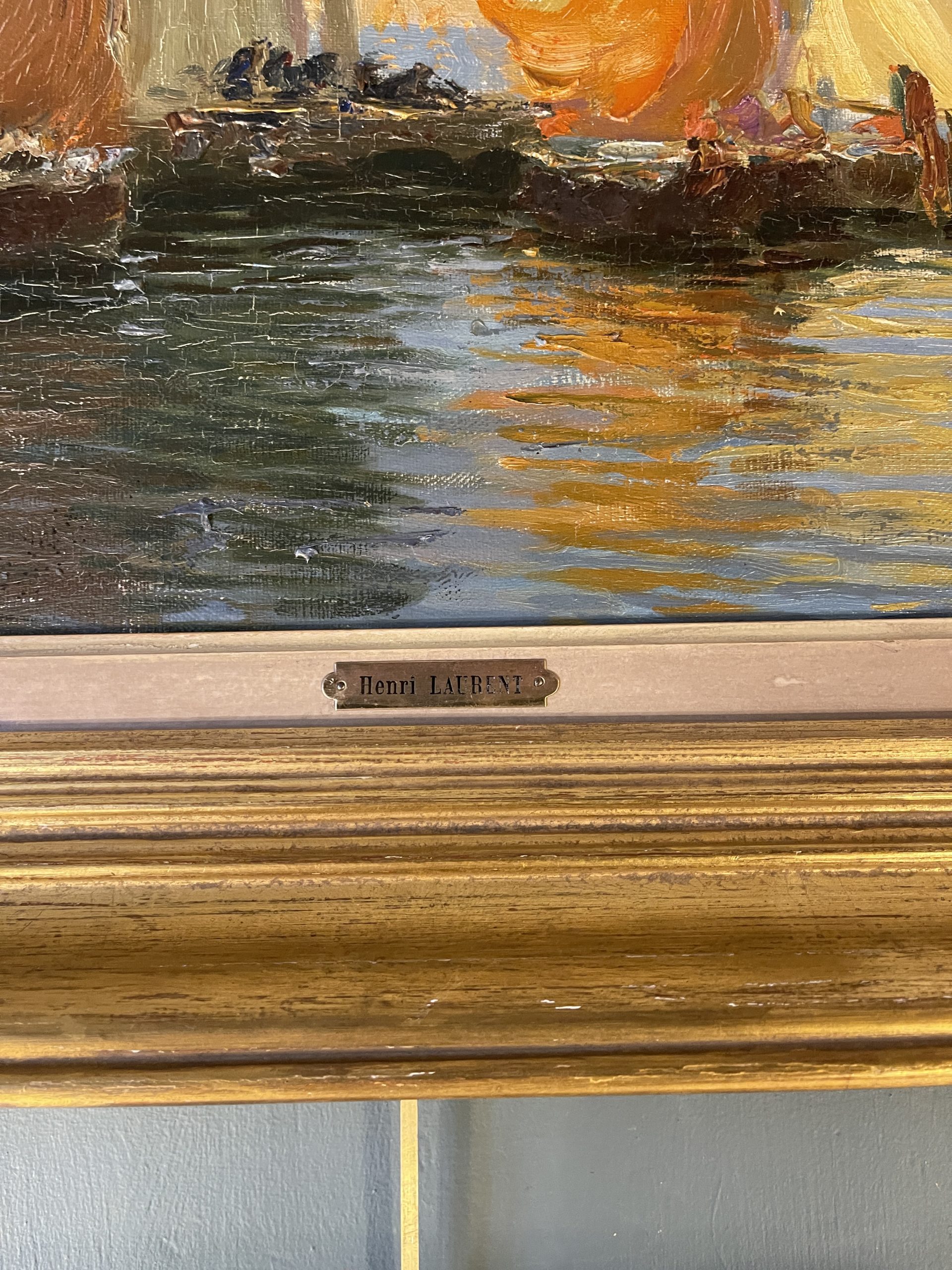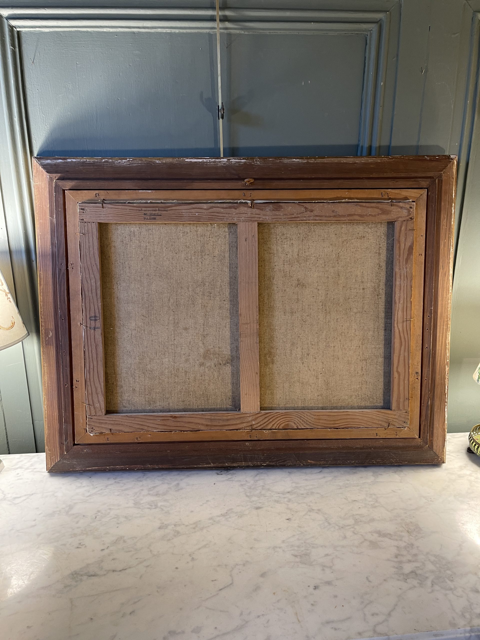 Plaque du peintre sur le cadre et tampon « Les artistes réunis » sur le chassis.