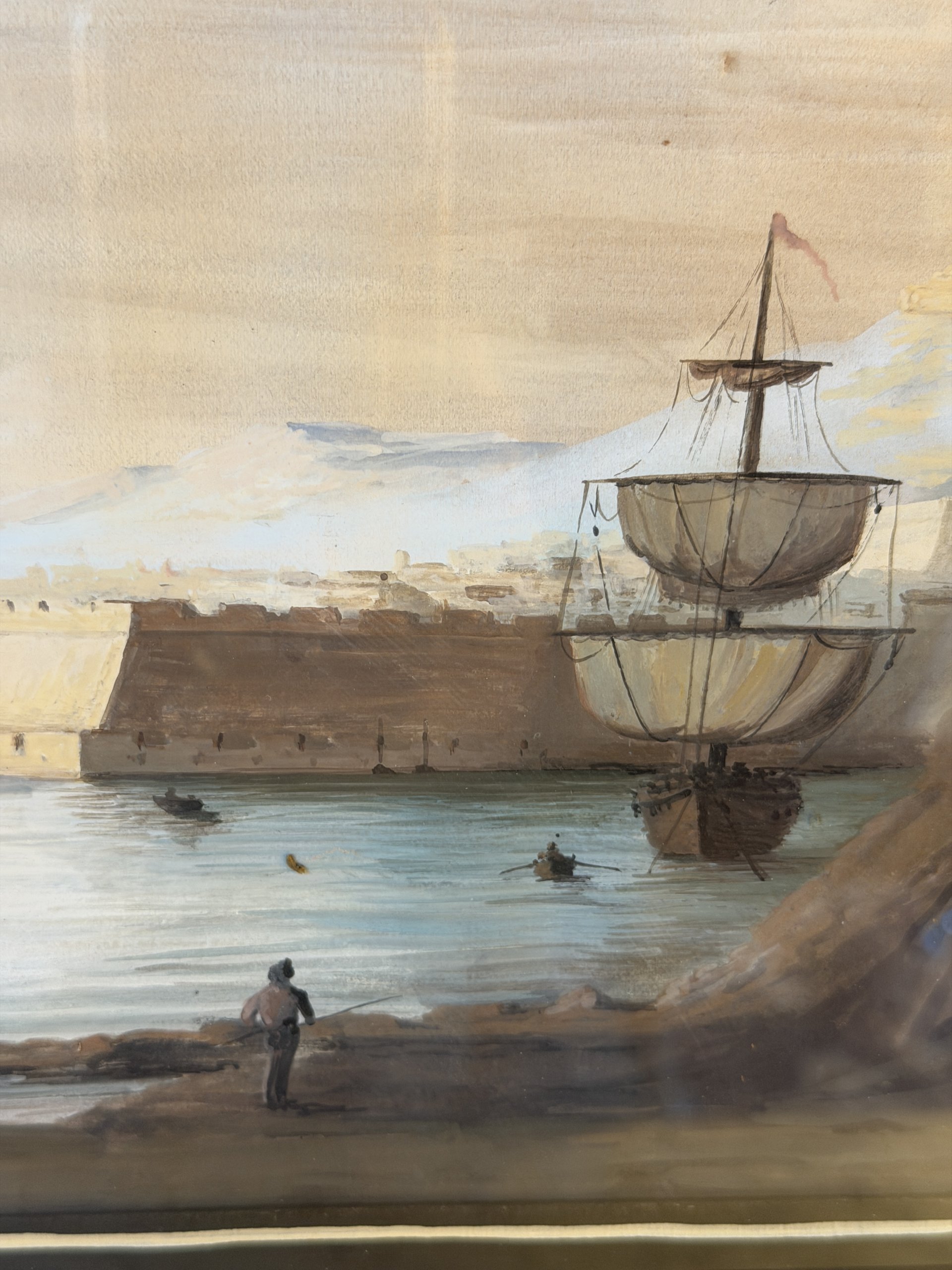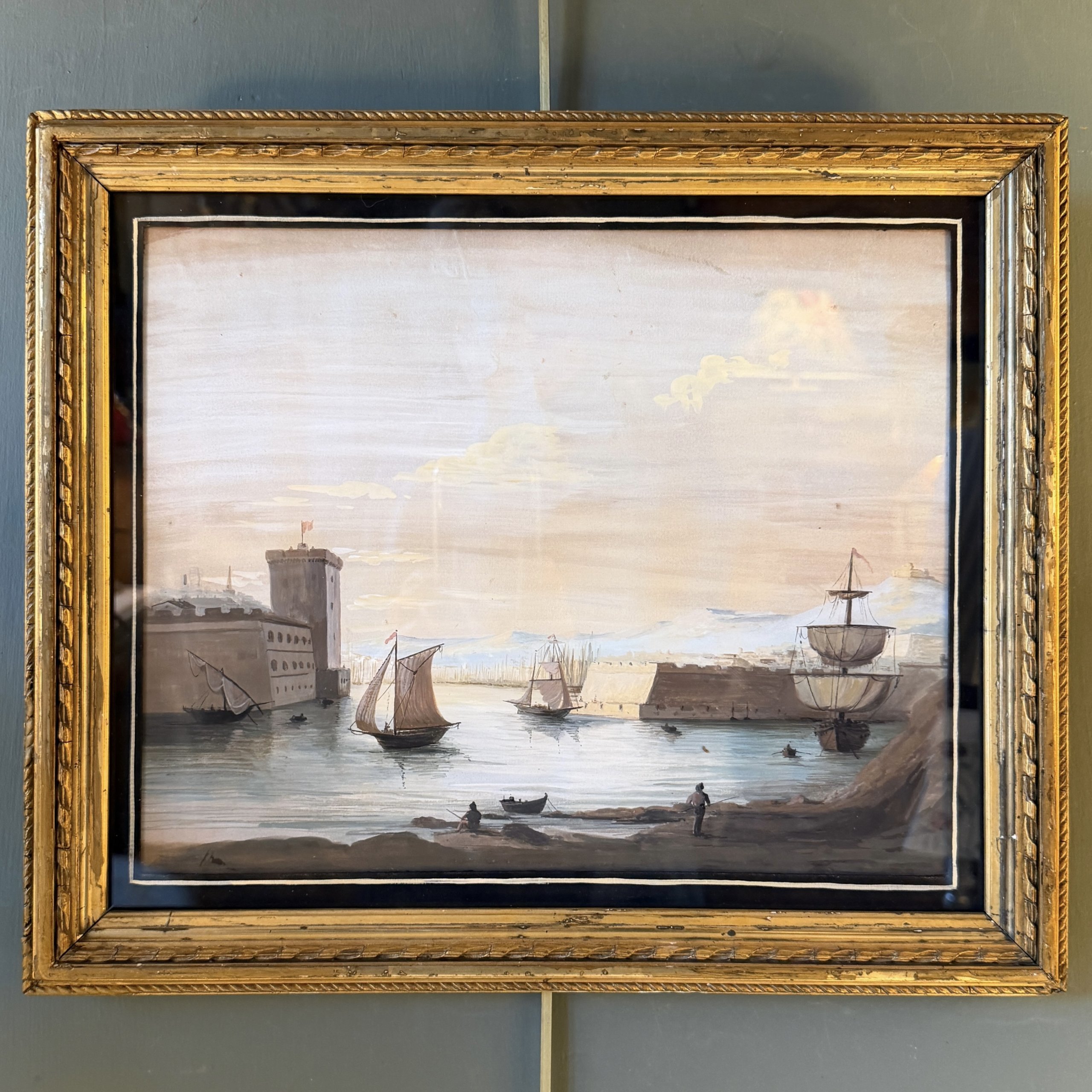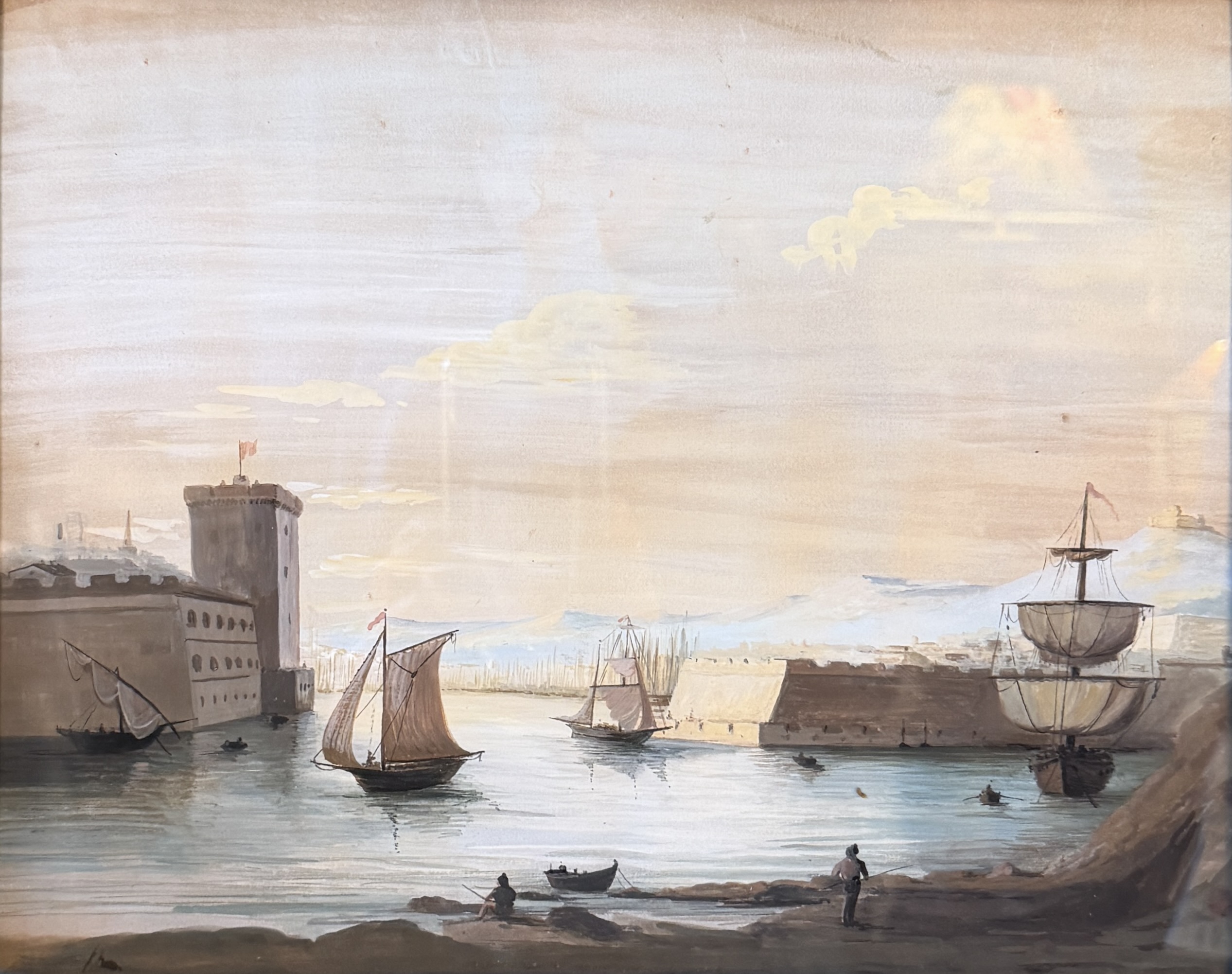 Vue du port de Marseille, Gouache XIXème